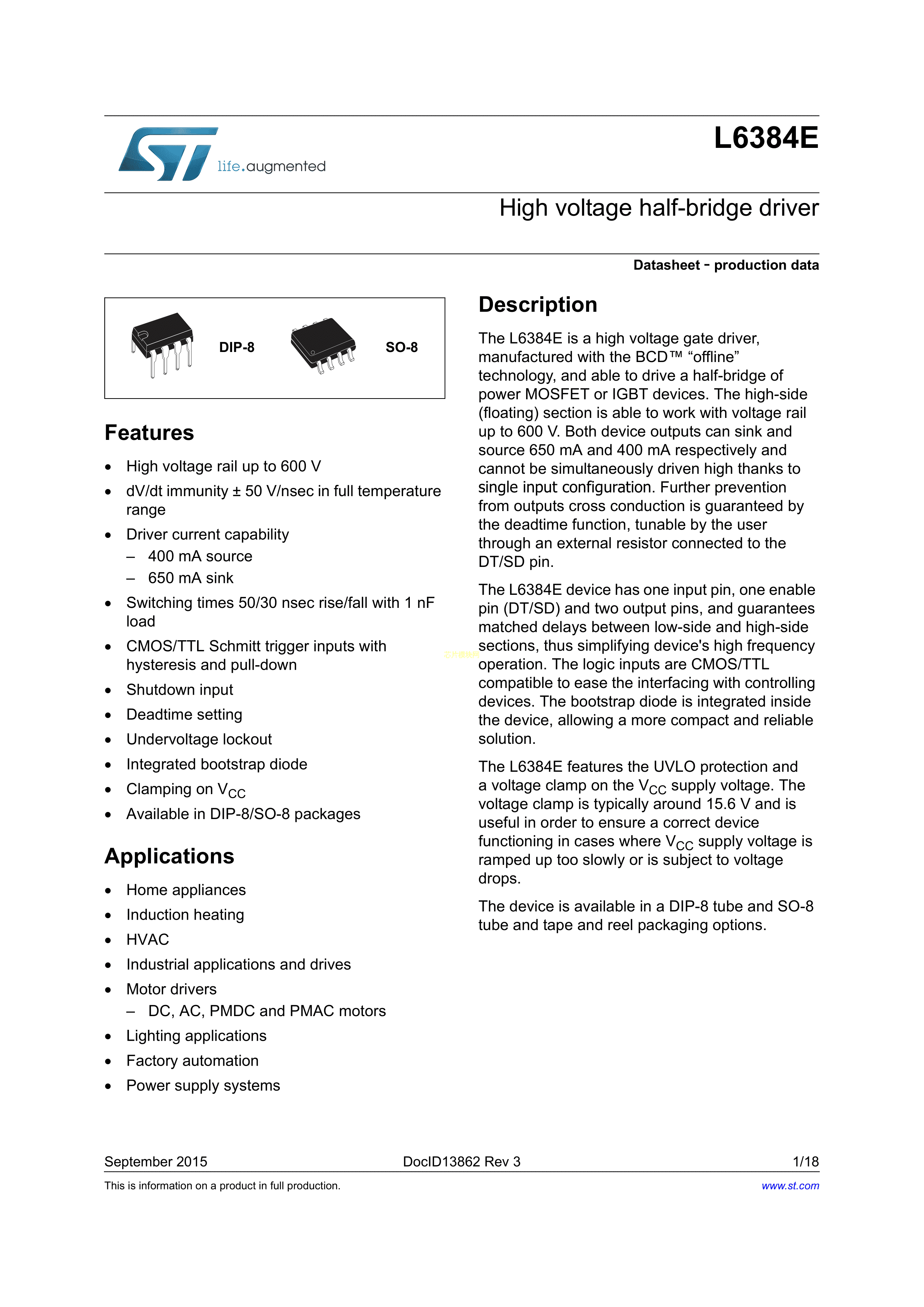 L6384ED数据手册SO-8封装ST(意法半导体)PDF规格书,中英文下载
