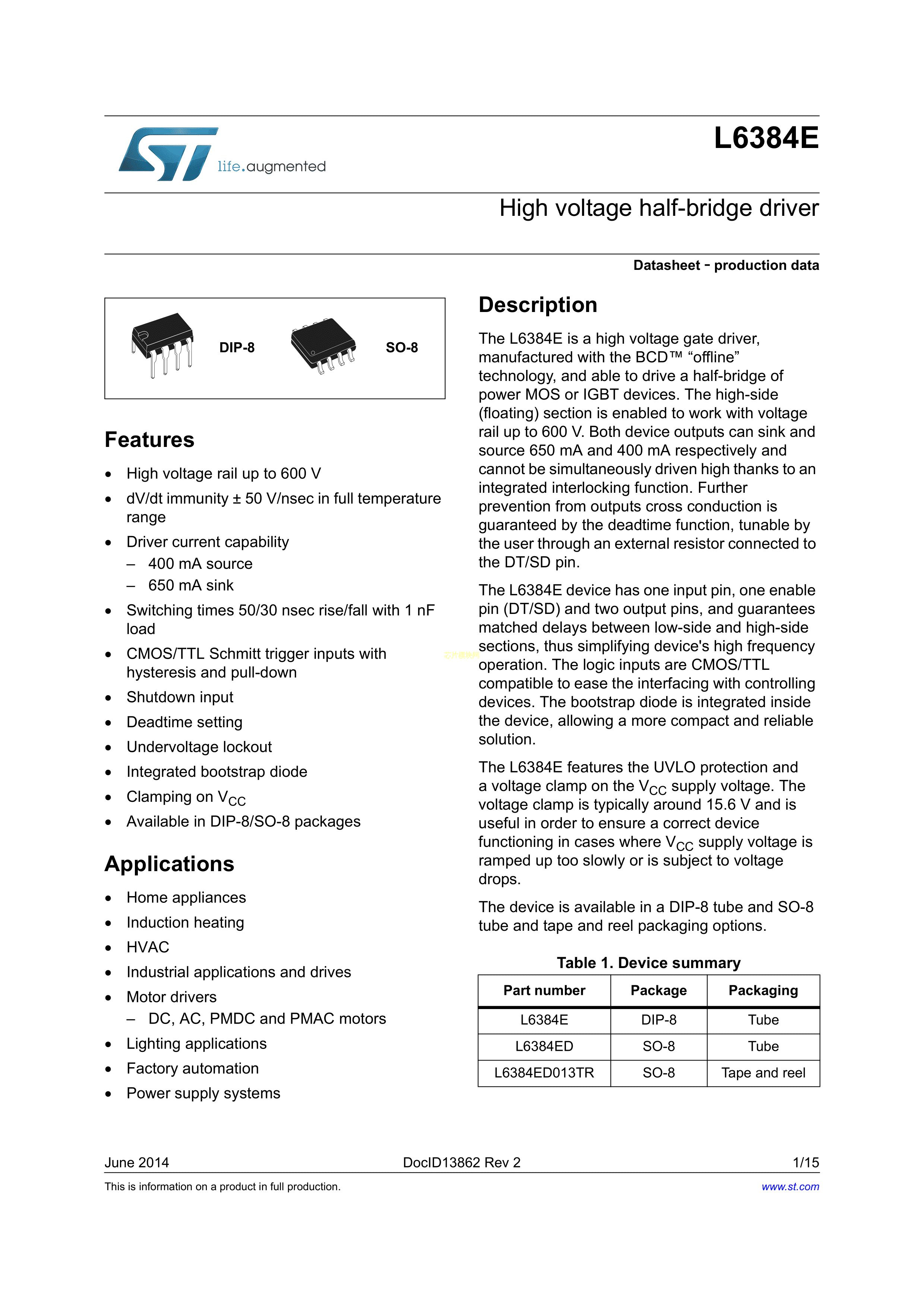 L6384ED013TR数据手册SOP-8_150mil封装ST(意法半导体)PDF规格书,中英文下