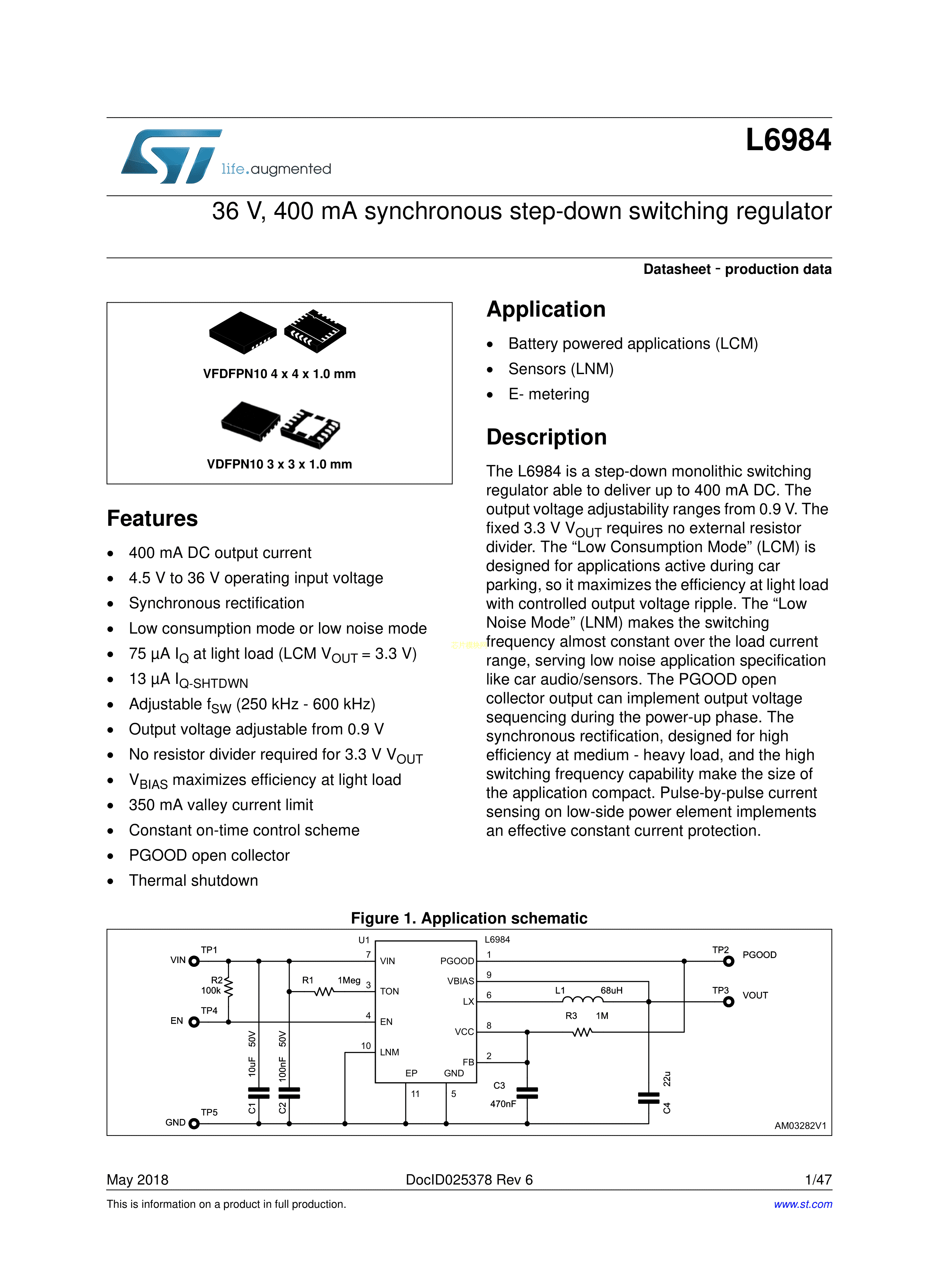 L6984TR数据手册VFDFPN10封装ST(意法半导体)PDF规格书,中英文下载