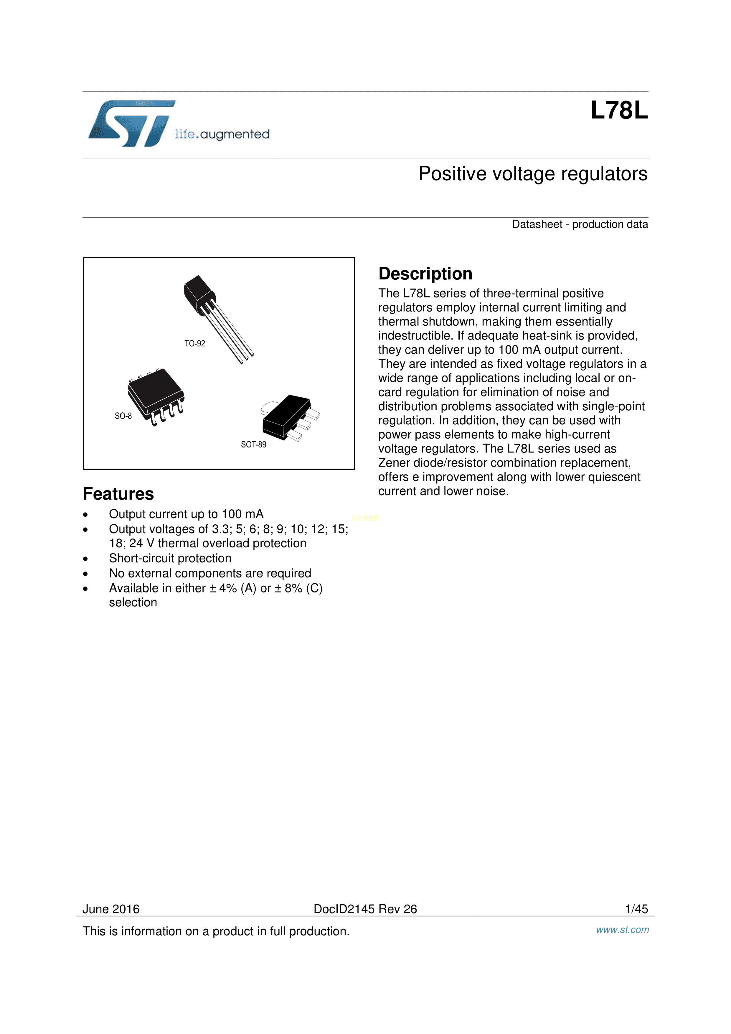 L78L06ABZ数据手册TO-92封装ST(意法半导体)PDF规格书,中英文下载