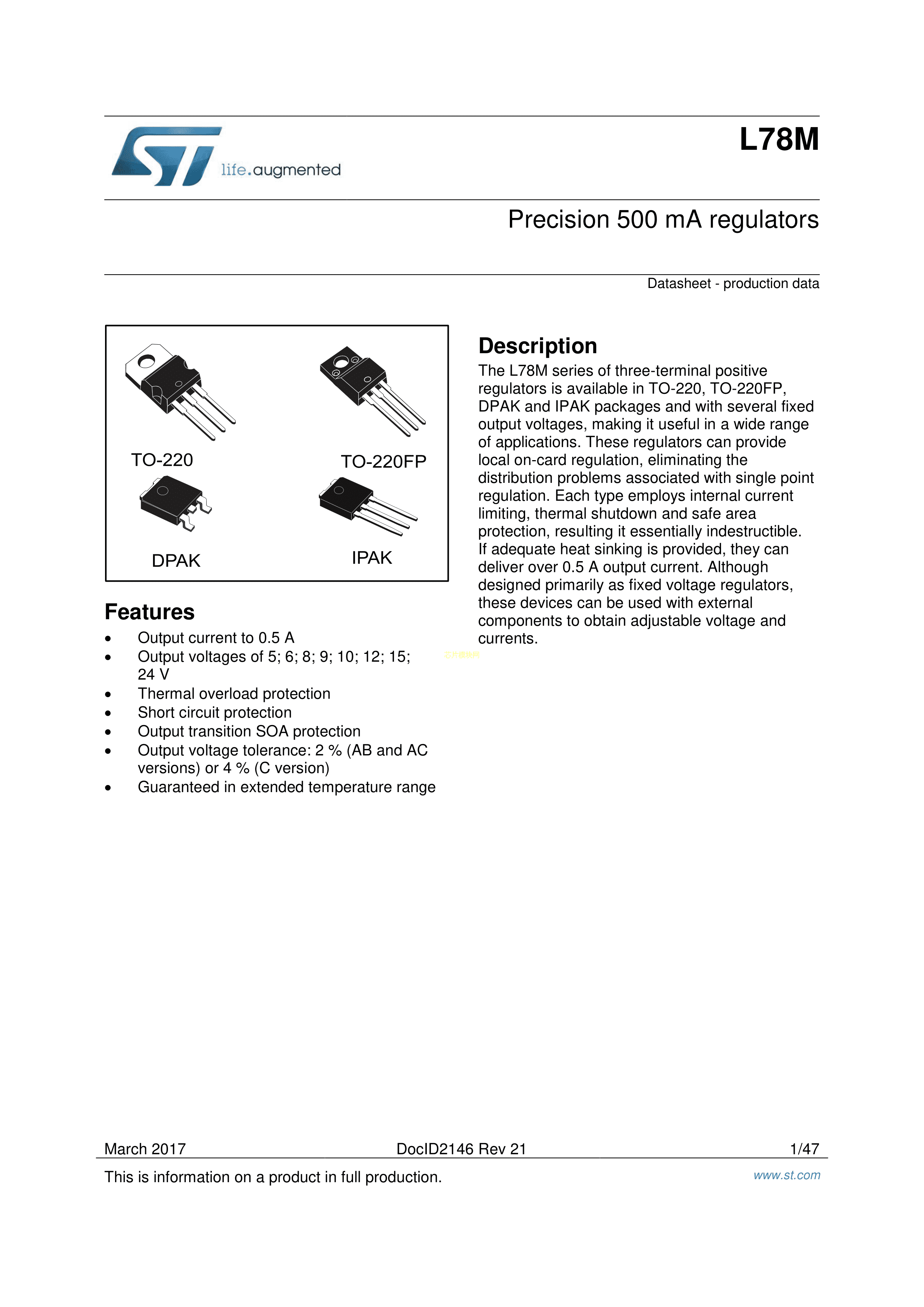 L78M24CDT-TR数据手册TO-252-2(DPAK)封装ST(意法半导体)PDF规格书,中英