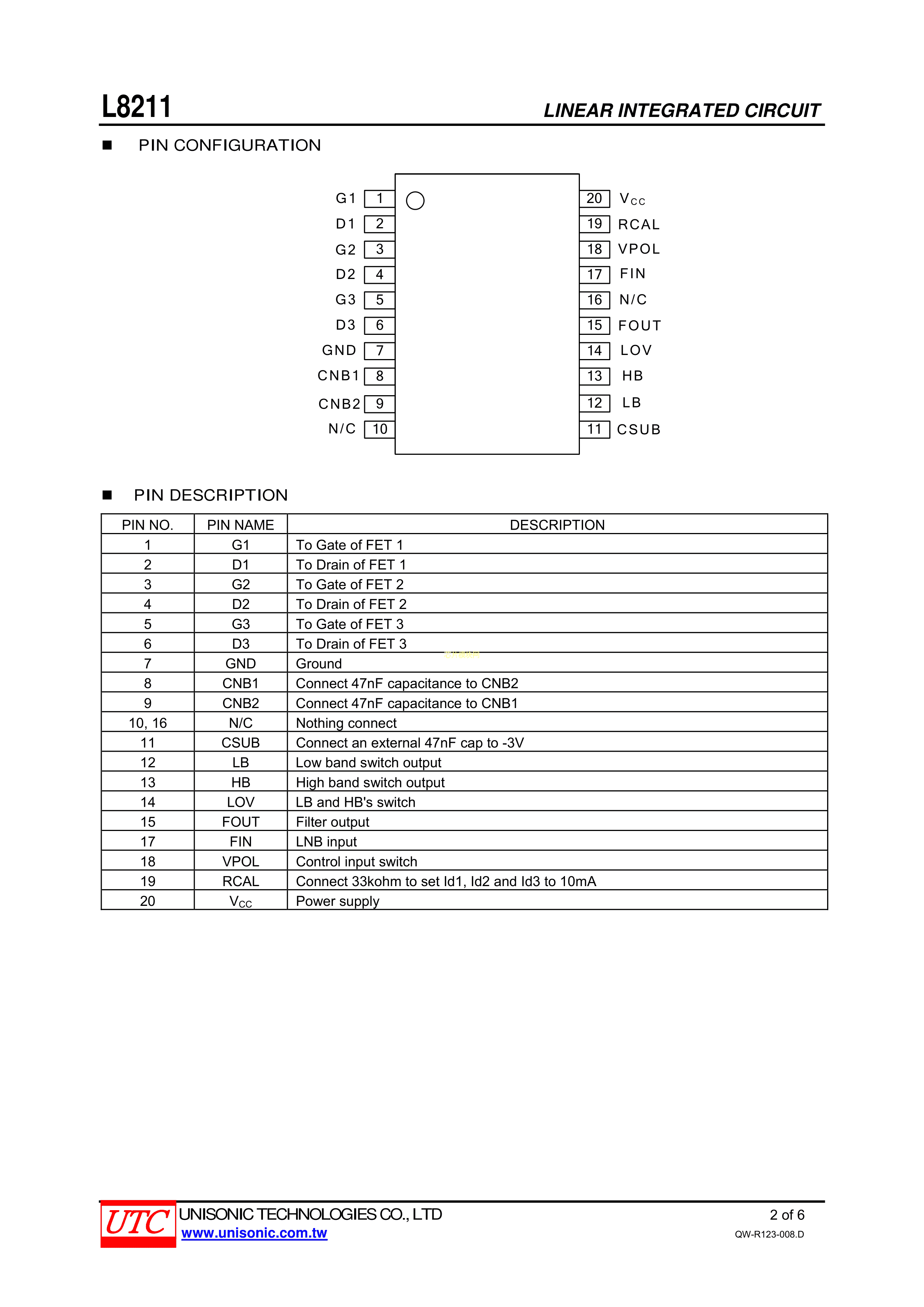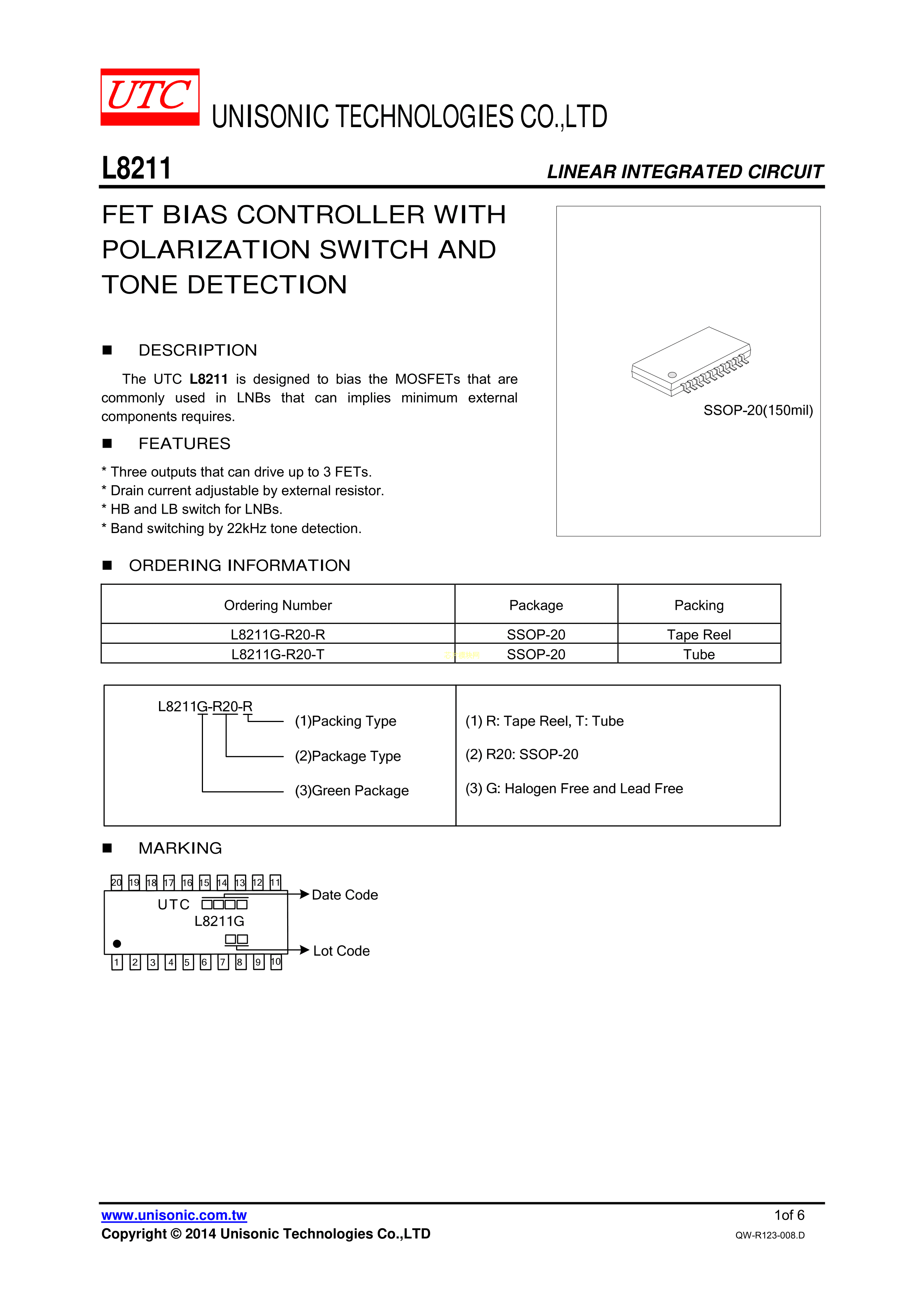 L8211G-R20-R数据手册SSOP-20_150mil封装UTC(友顺)PDF规格书,中英文下