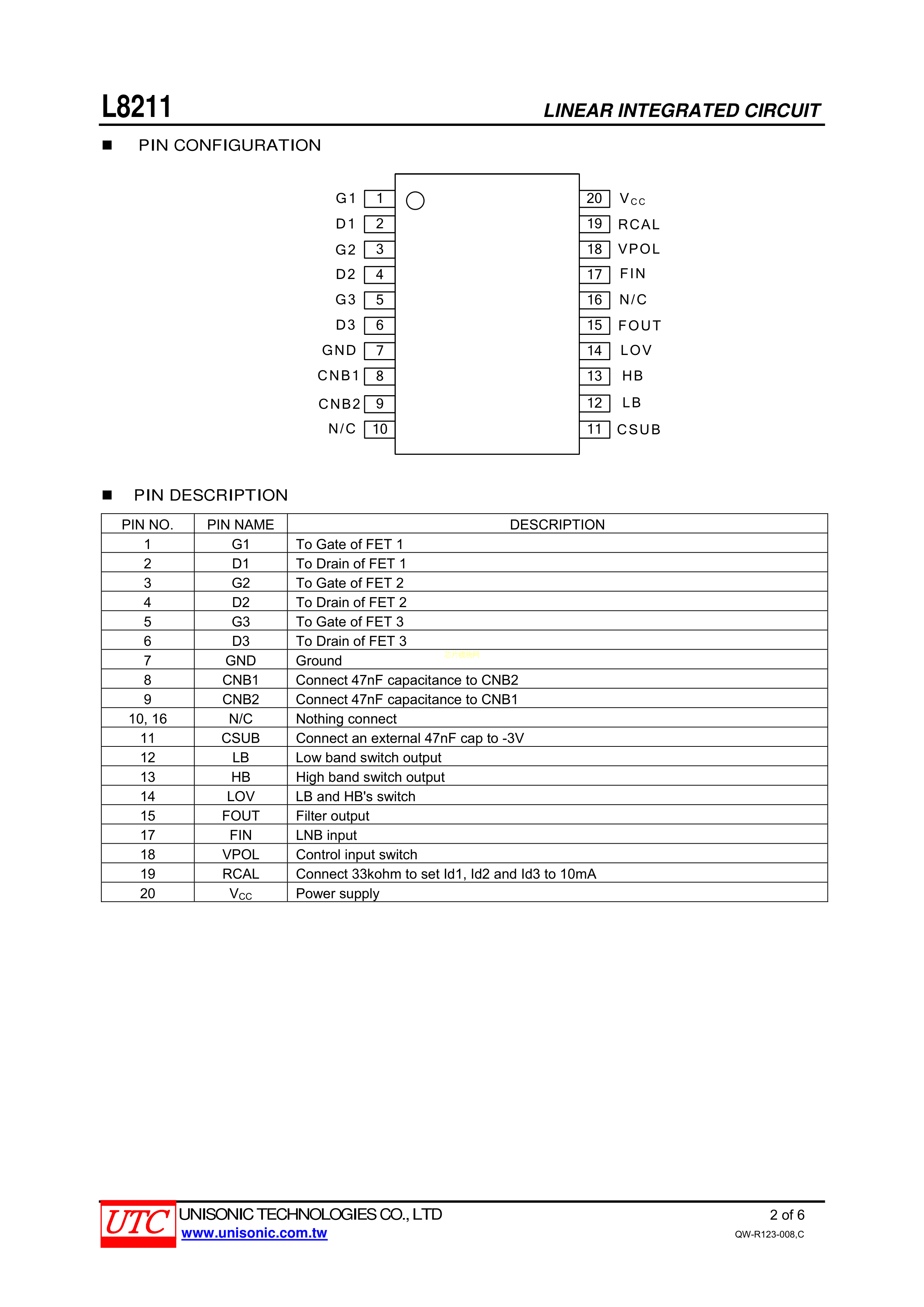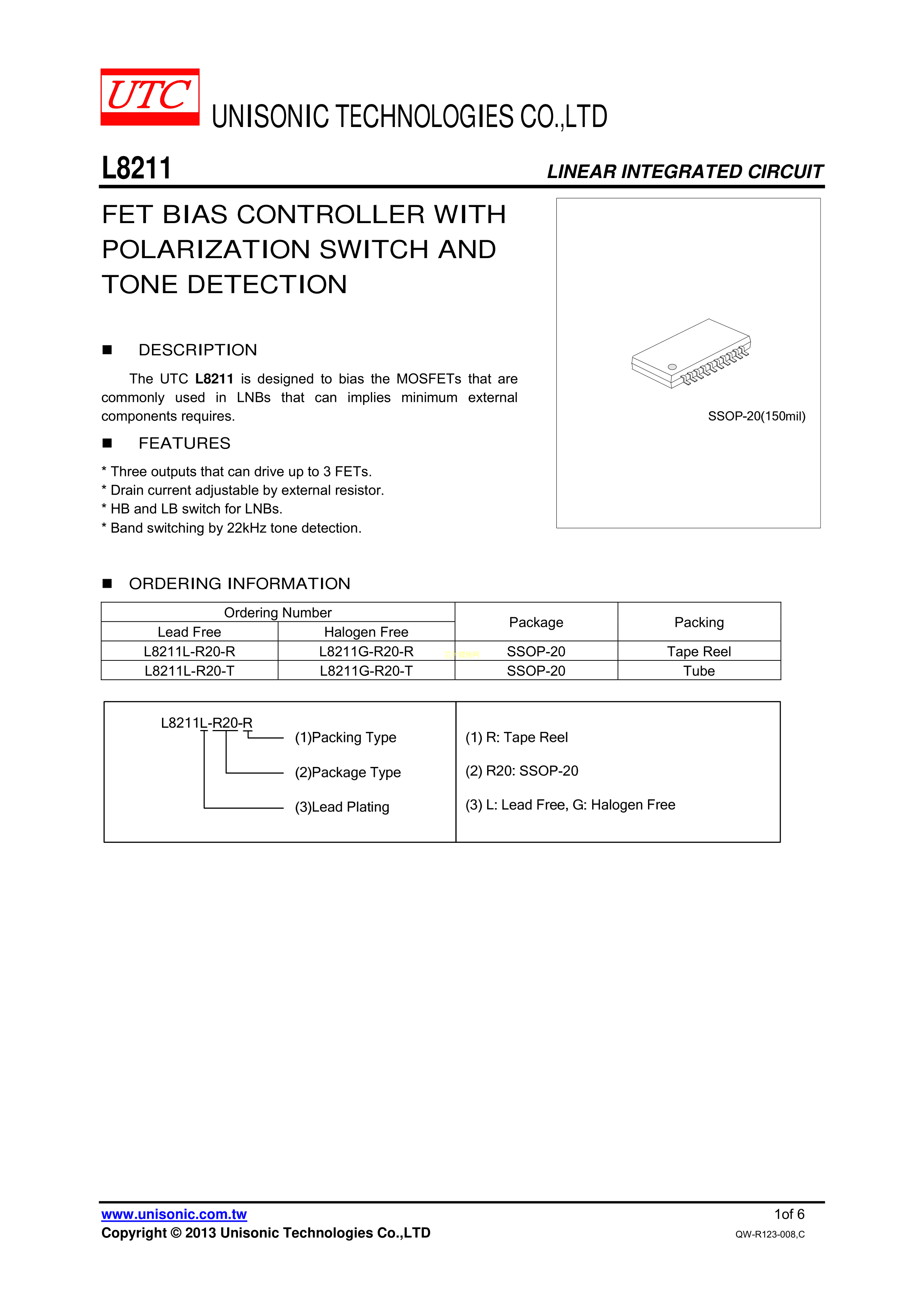 L8211L-R20-R数据手册SSOP-20_150mil封装UTC(友顺)PDF规格书,中英文下
