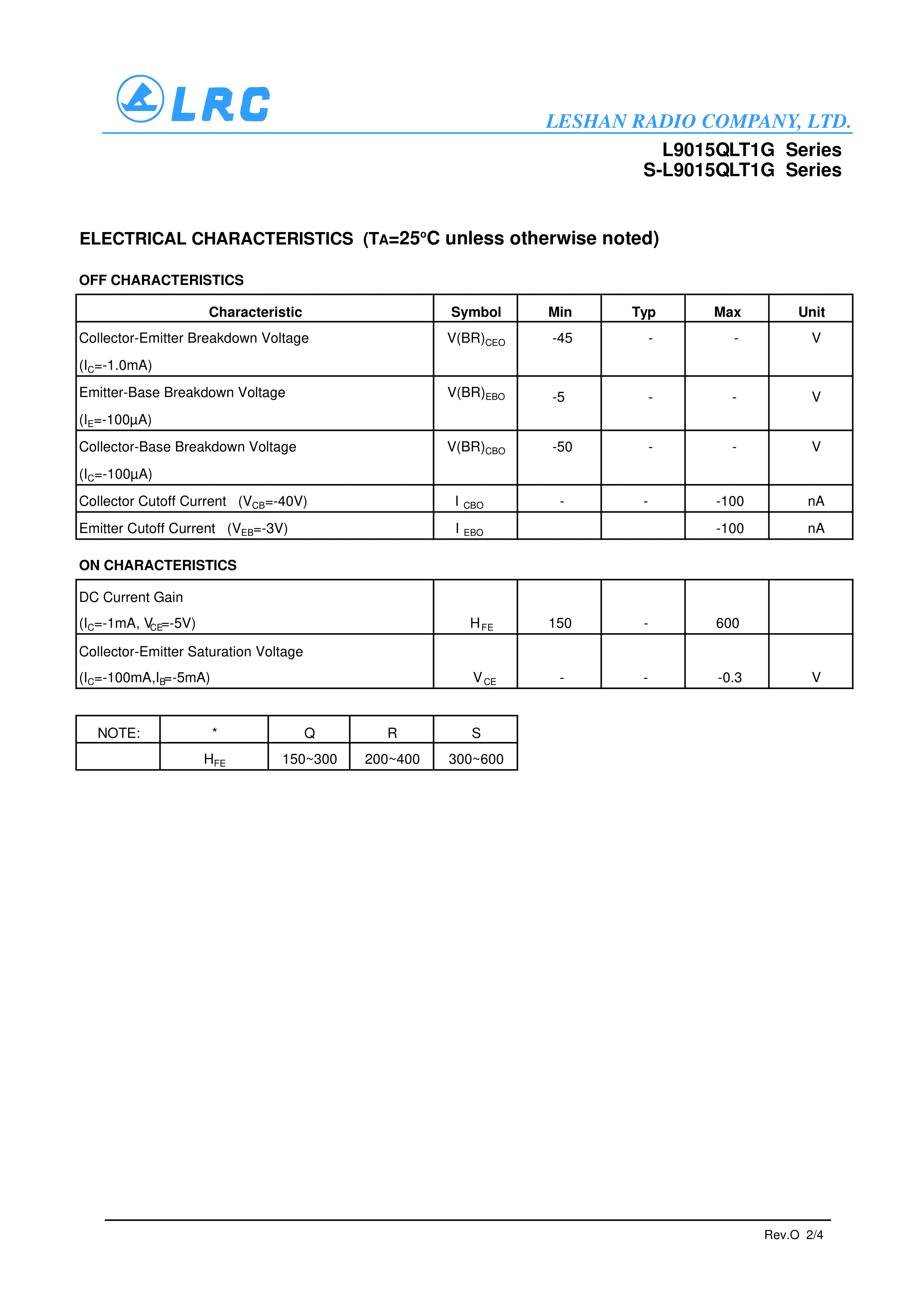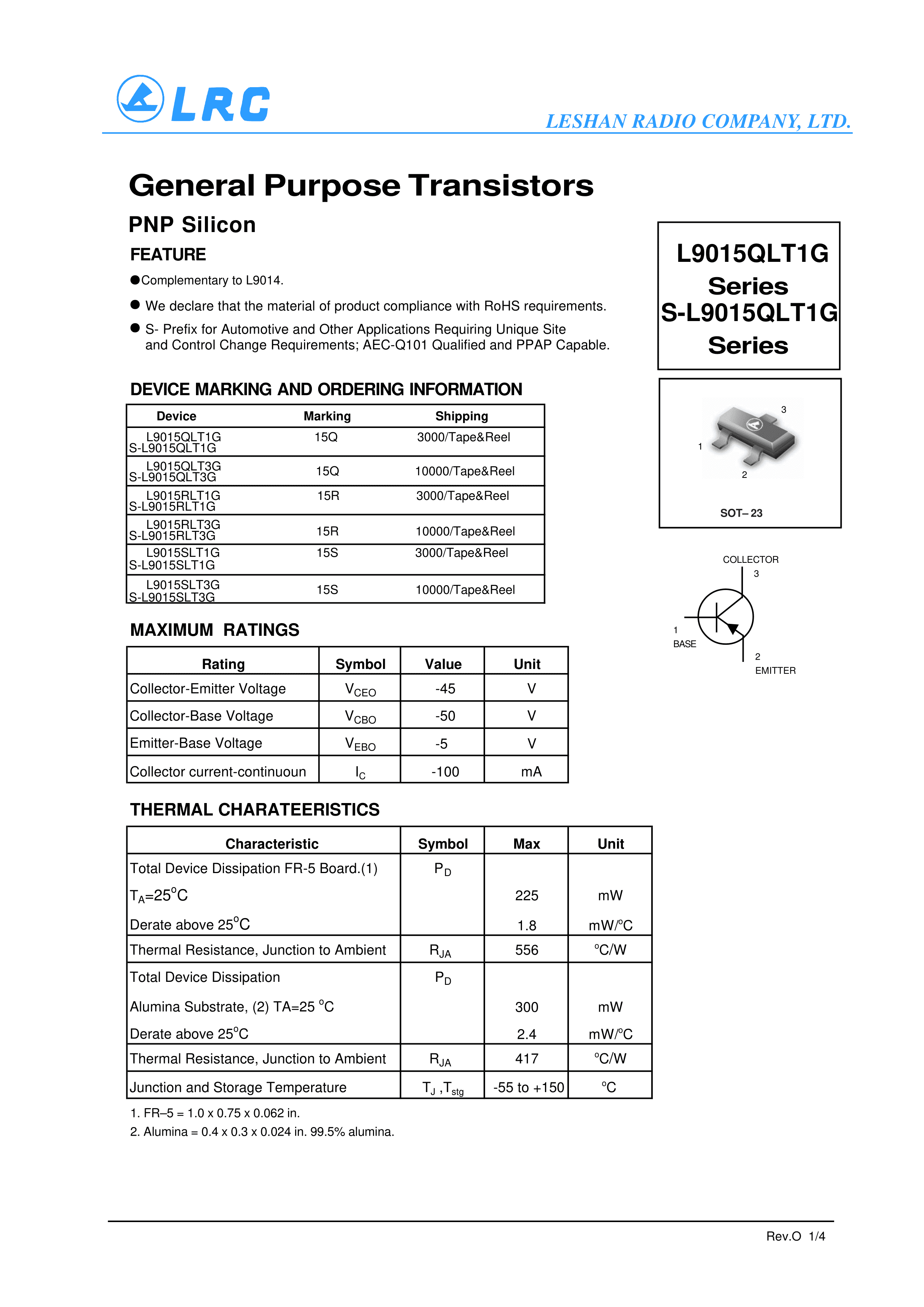 L9015QLT1G数据手册SOT-23(SOT-23-3)封装LRC(乐山无线电)PDF规格书,中