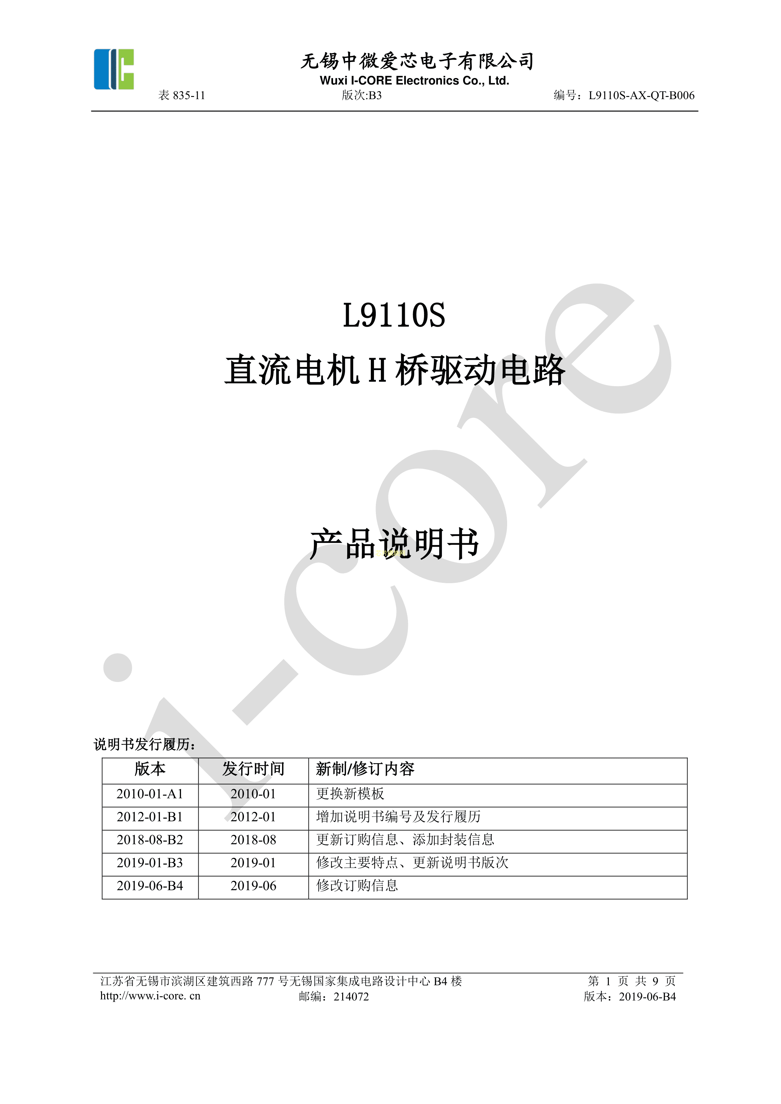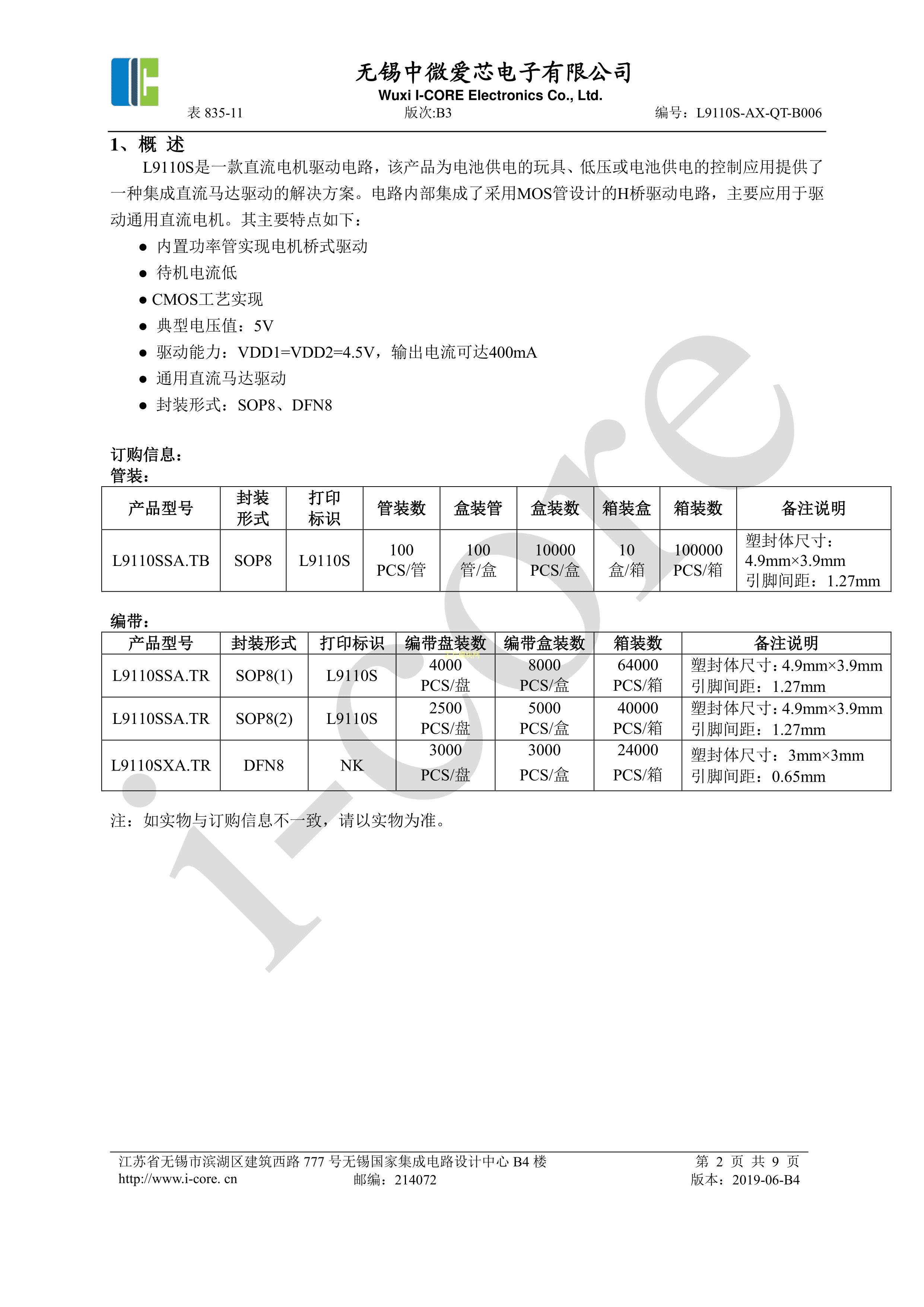 L9110SSA.TR数据手册SOP8封装I-CORE(中微爱芯)PDF规格书,中英文下载
