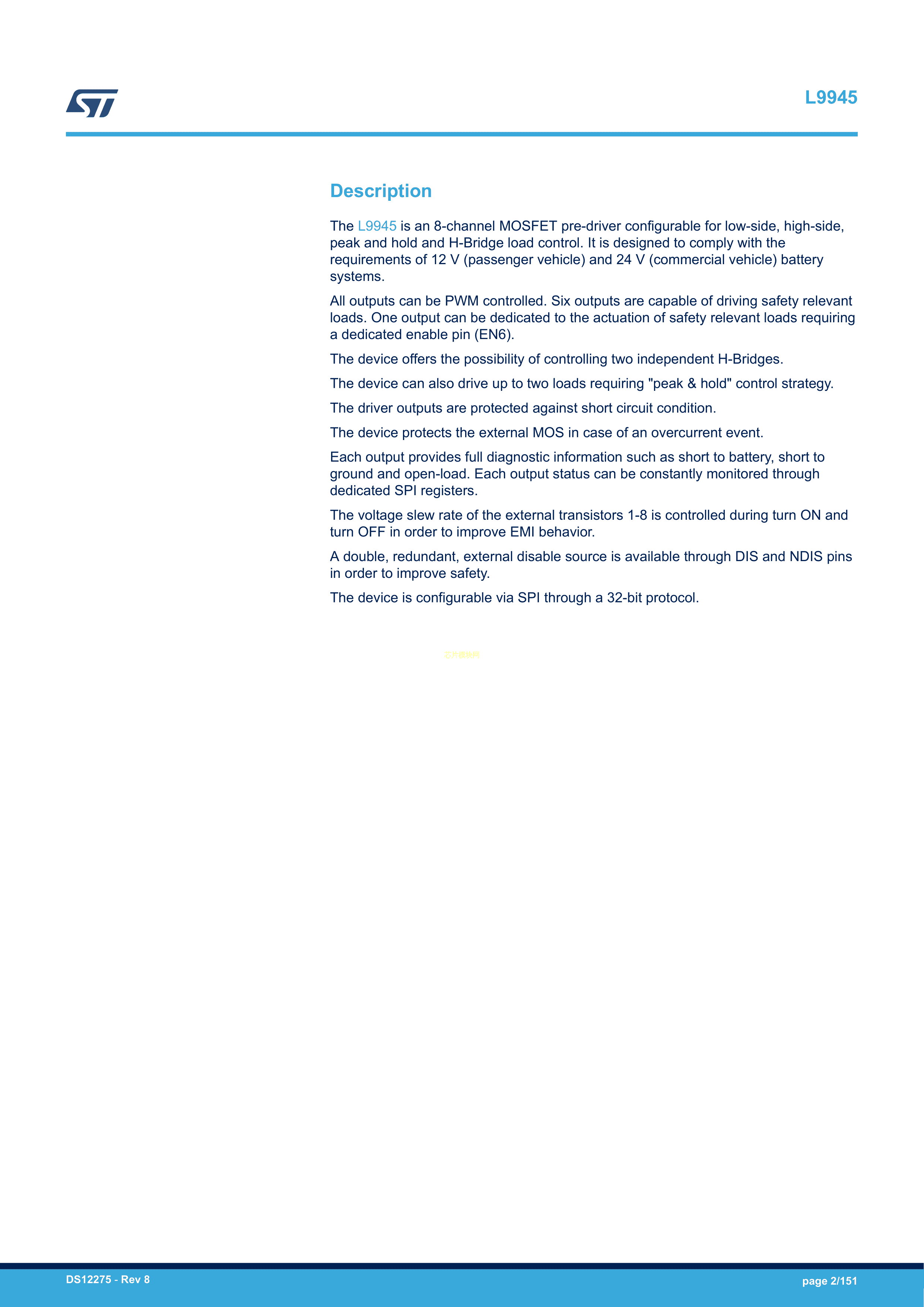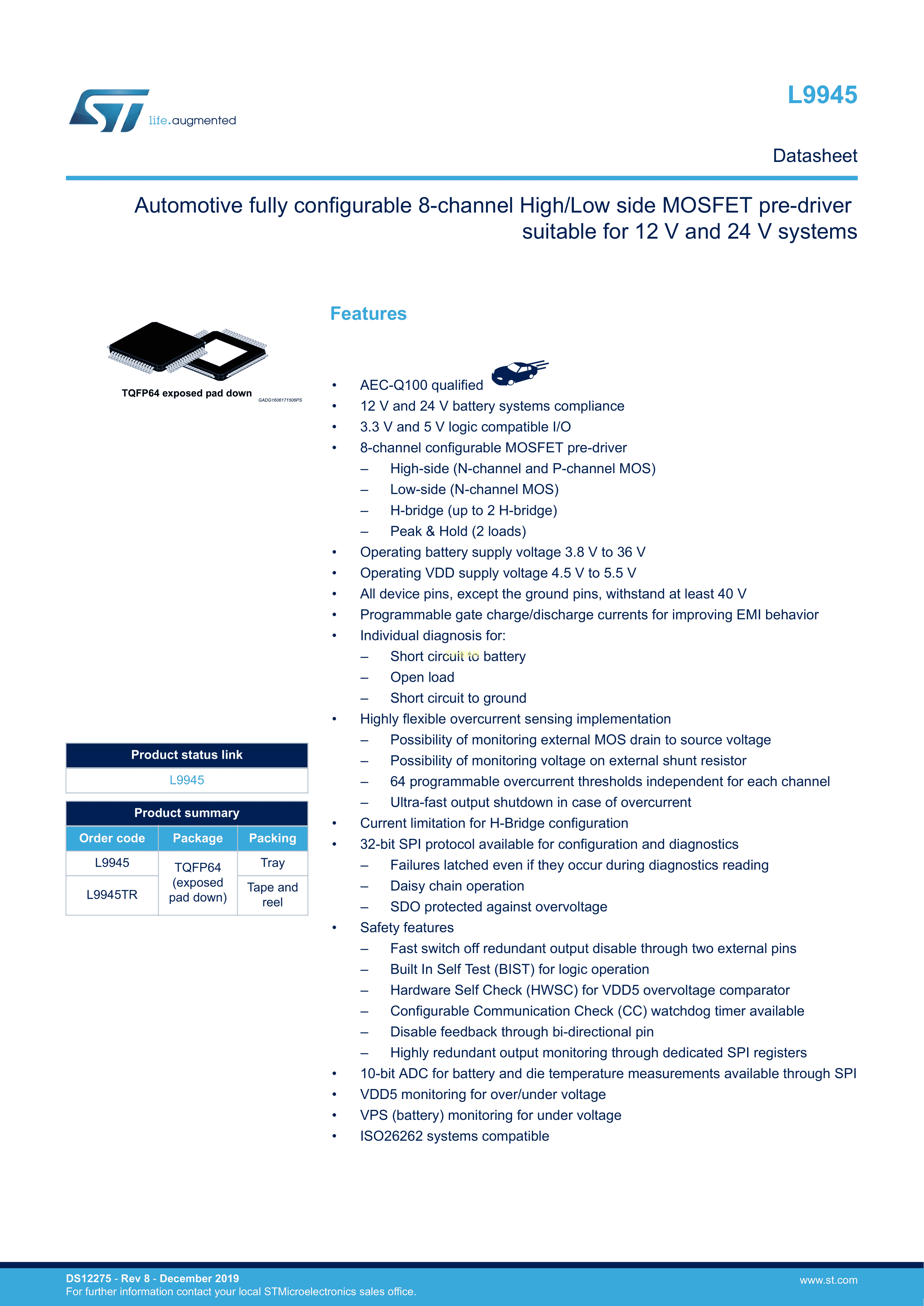 L9945TR数据手册TQFP-64_EP(10x10)封装ST(意法半导体)PDF规格书,中英文下载