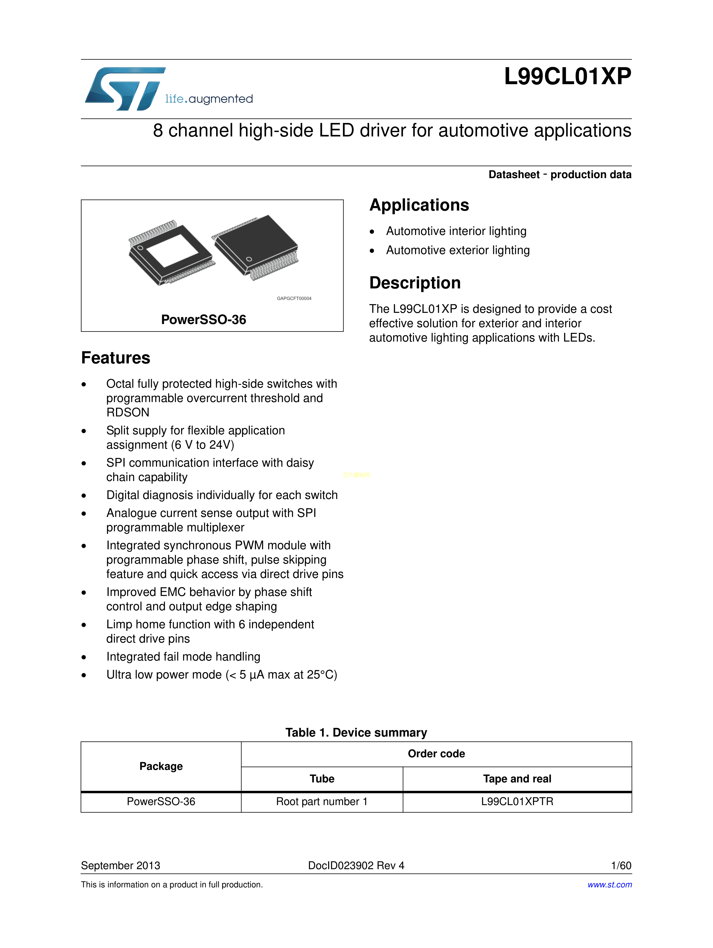 L99CL01XP数据手册PowerSSO-36封装ST(意法半导体)PDF规格书,中英文下载