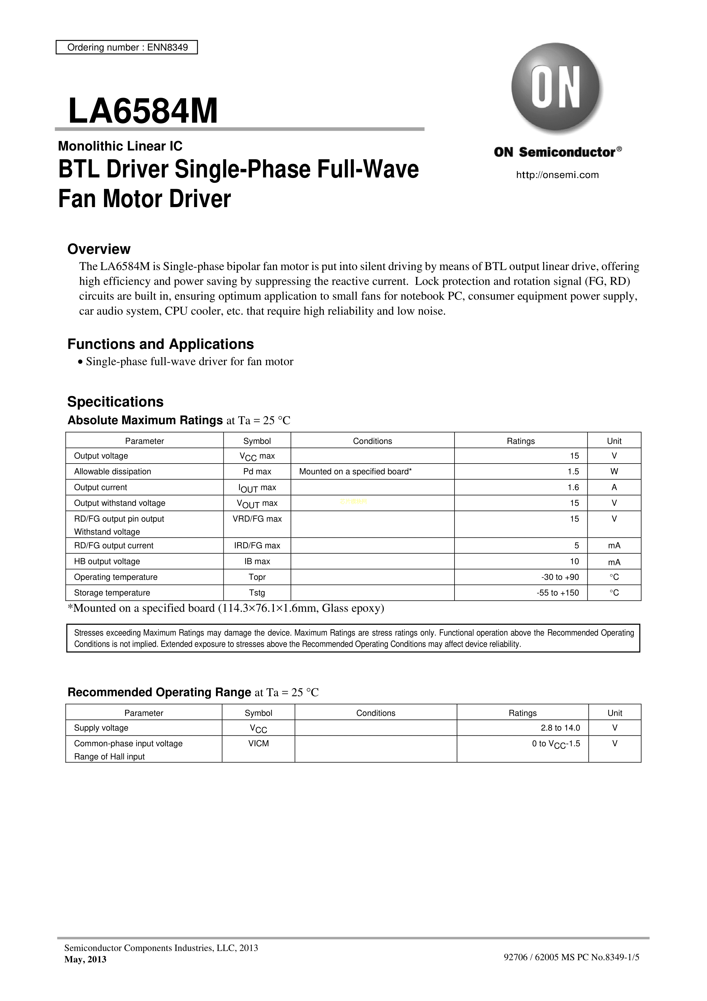 LA6584M-TLM-E数据手册MFP-16FS封装onsemi(安森美)PDF规格书,中英文下载