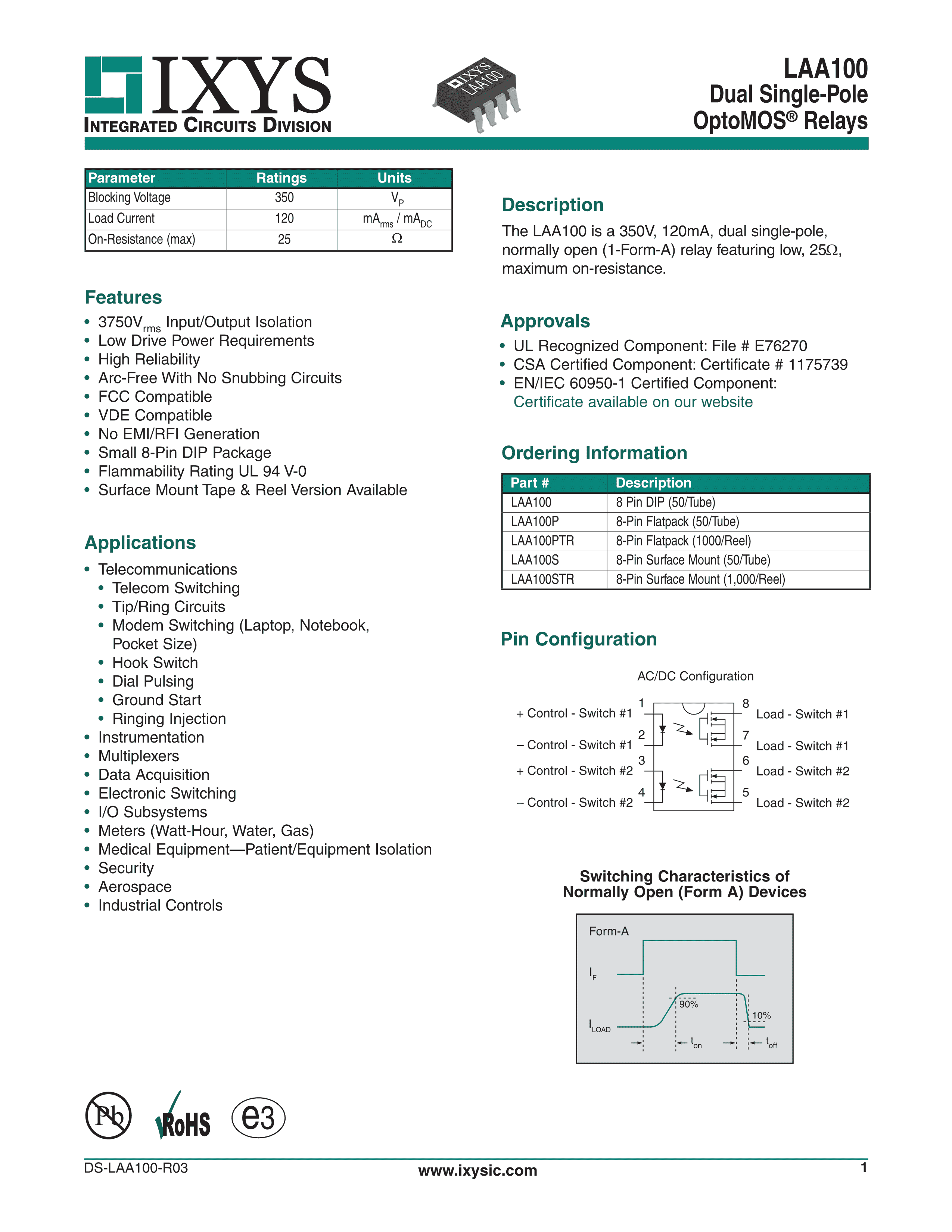 LAA100PTR数据手册Flatpack-8封装IXYSPDF规格书,中英文下载