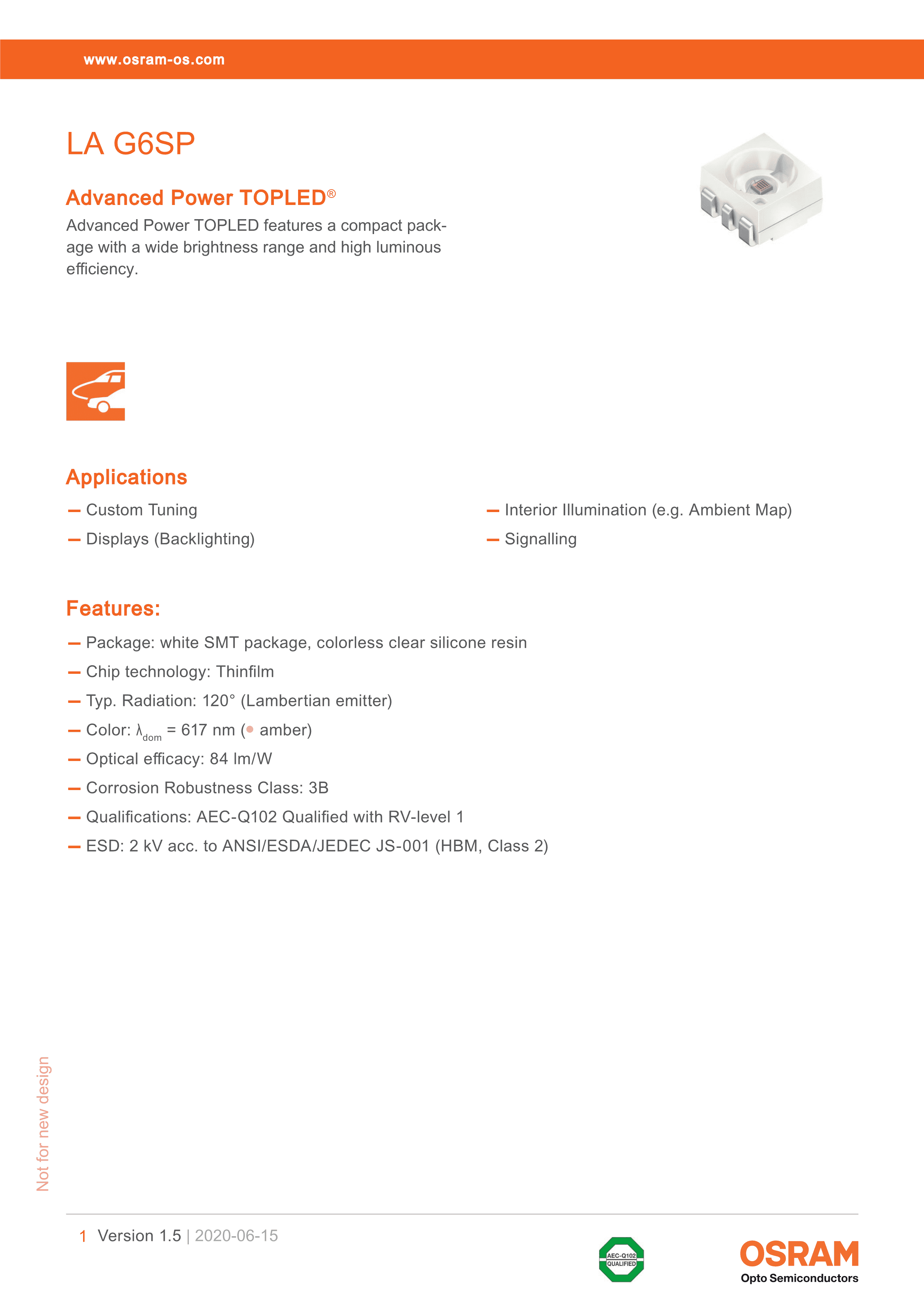 LA G6SP-T2U2-1-1+DBFA-24-1-A-R18-Z数据手册1210封装OSRAMP
