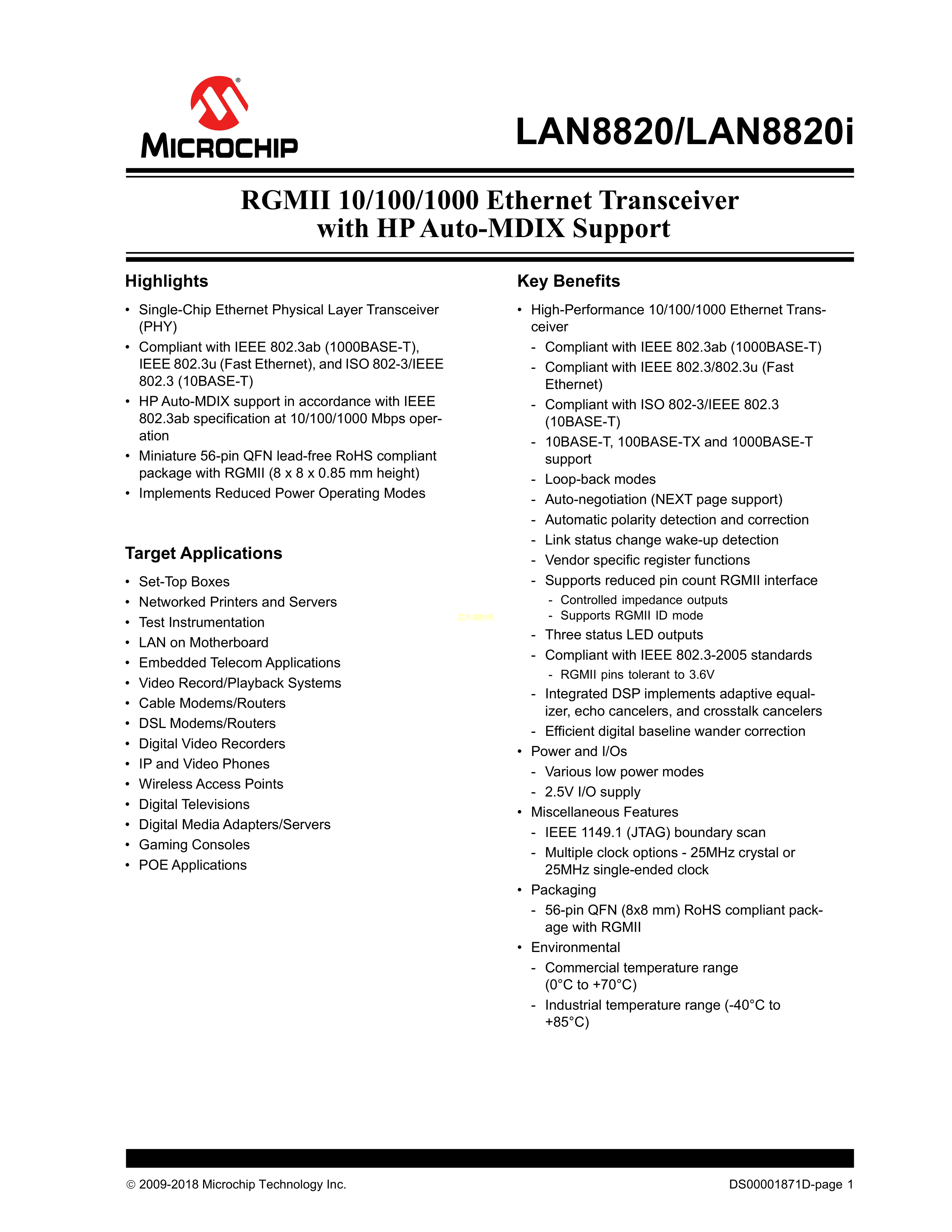 LAN8820-ABZJ数据手册QFN-56封装MICROCHIP(美国微芯)PDF规格书,中英文下