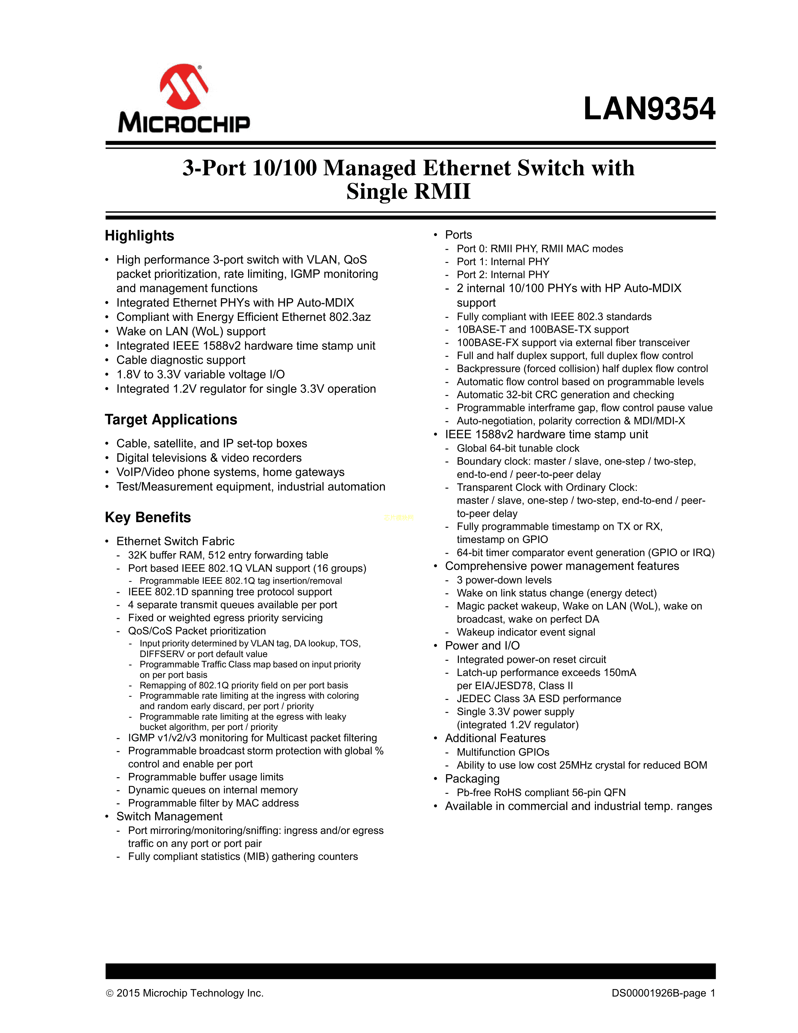 LAN9354I-ML数据手册QFN-56封装MICROCHIP(美国微芯)PDF规格书,中英文下载