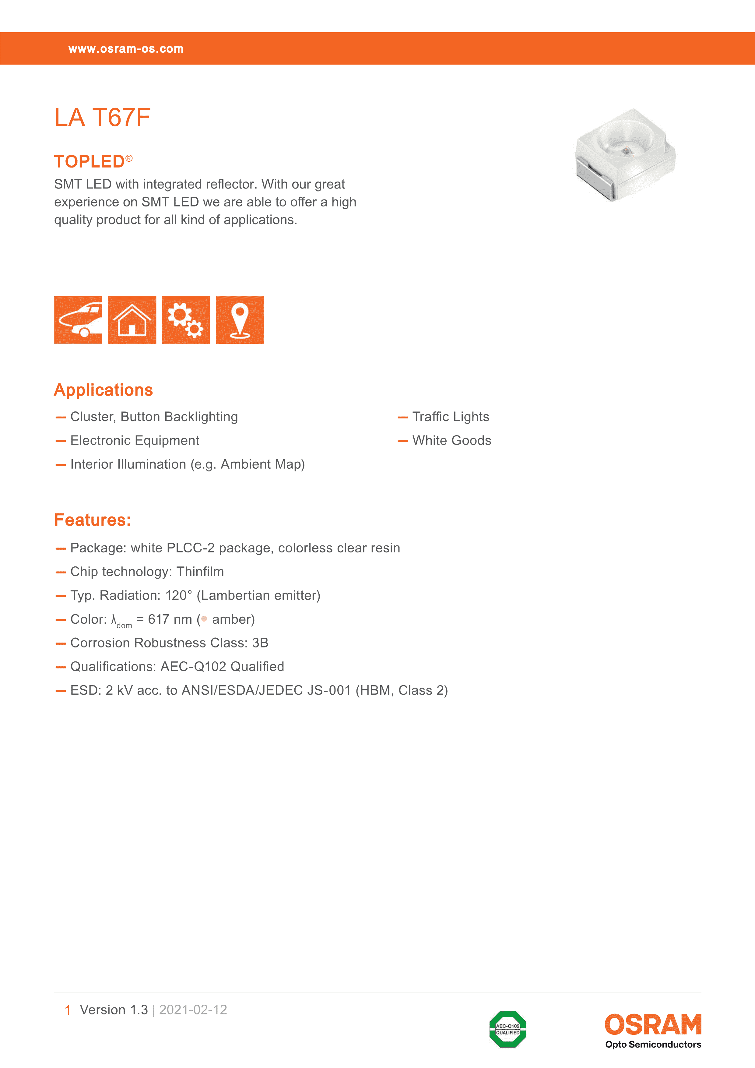 LA T67F-V1BA-24-1-20-R18-Z数据手册SMD封装OSRAMPDF规格书,中英文