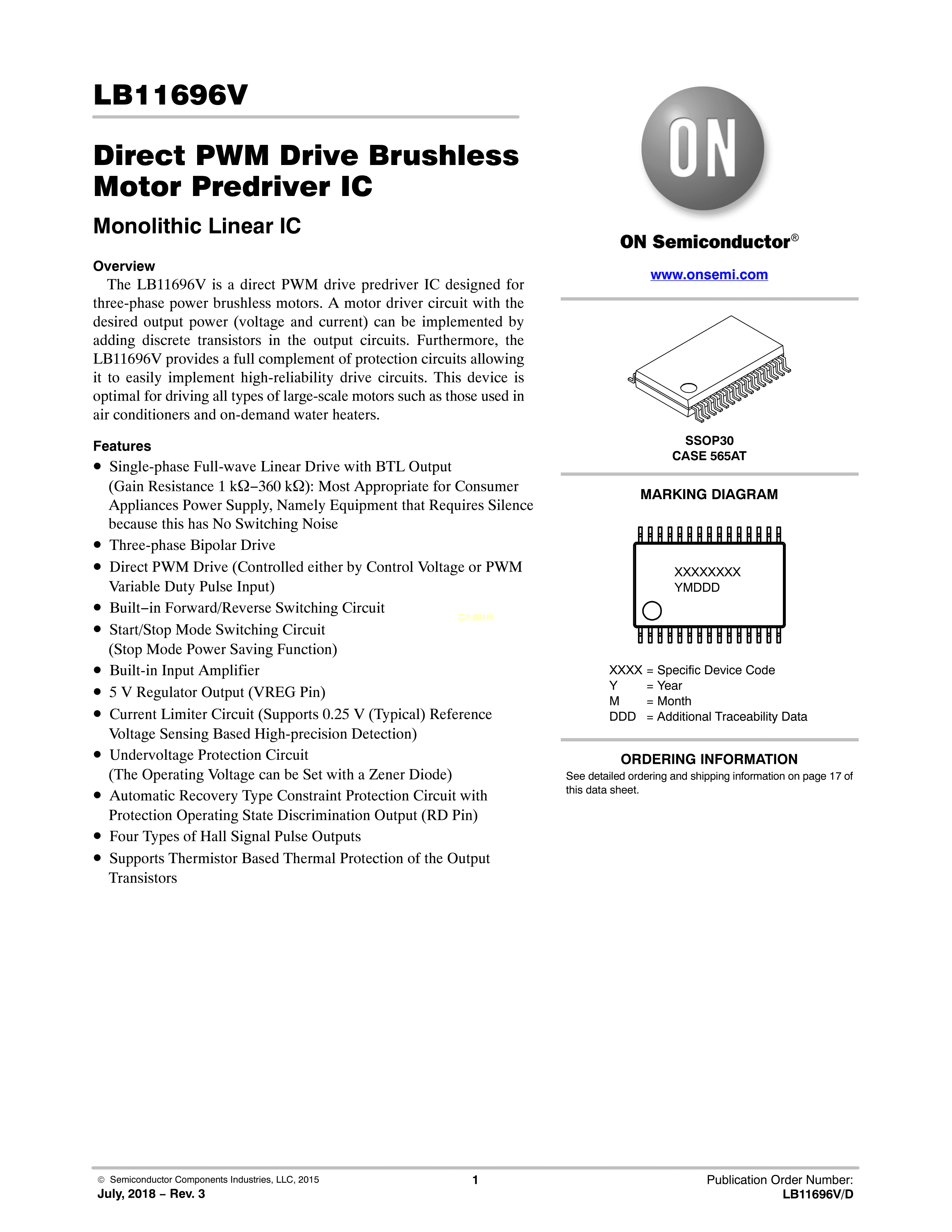 LB11696V-TLM-E数据手册SSOP-30封装onsemi(安森美)PDF规格书,中英文下载
