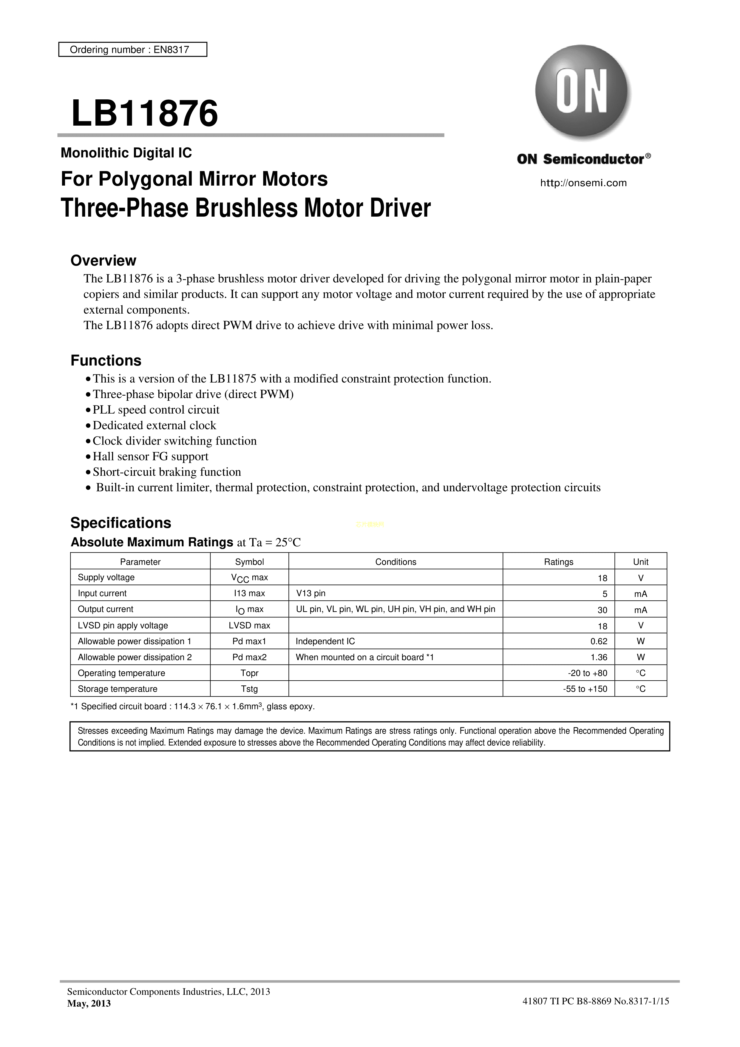 LB11876-TLM-E数据手册SSOP-36封装onsemi(安森美)PDF规格书,中英文下载