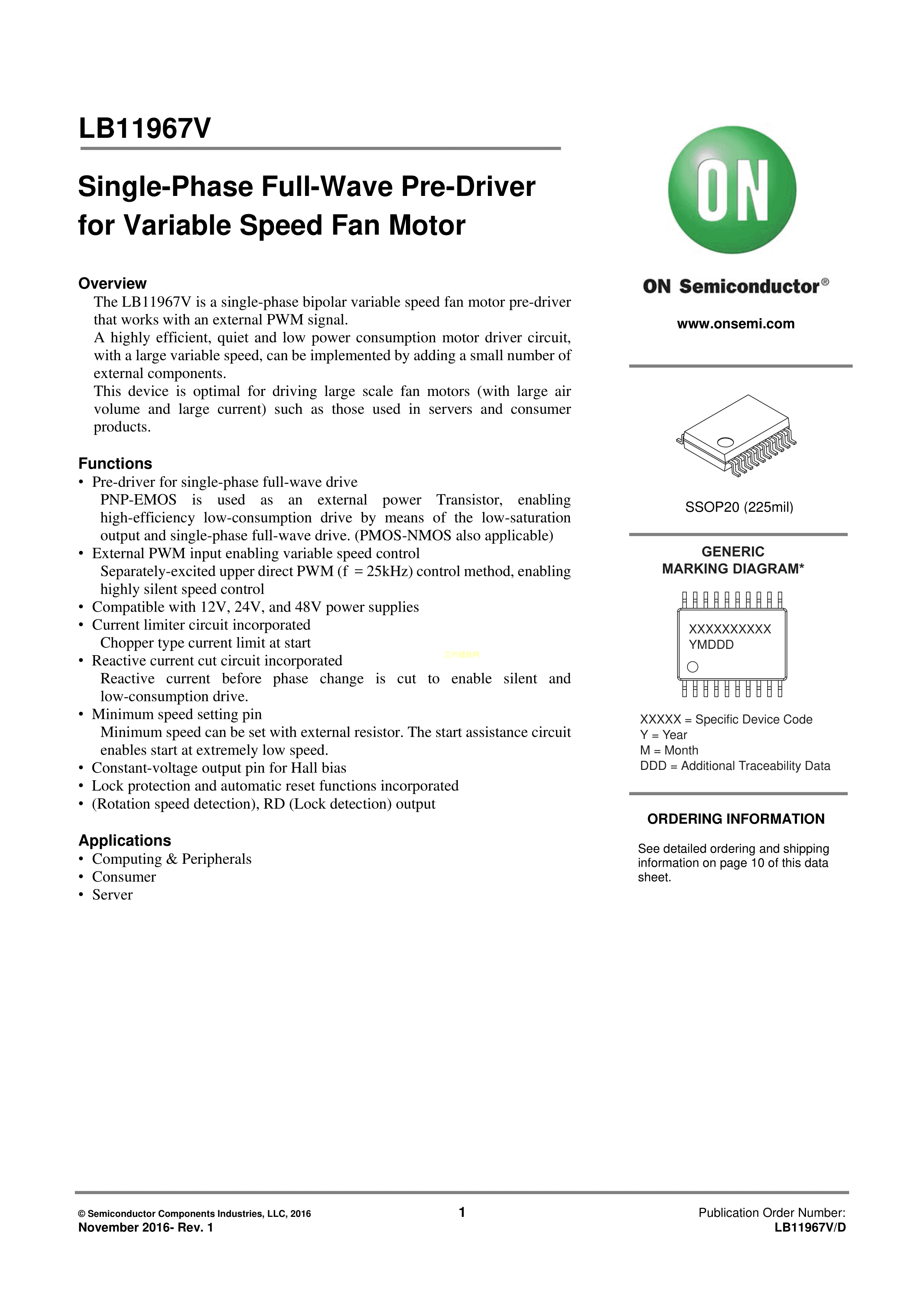 LB11967V-TLM-E数据手册SSOP-20封装onsemi(安森美)PDF规格书,中英文下载