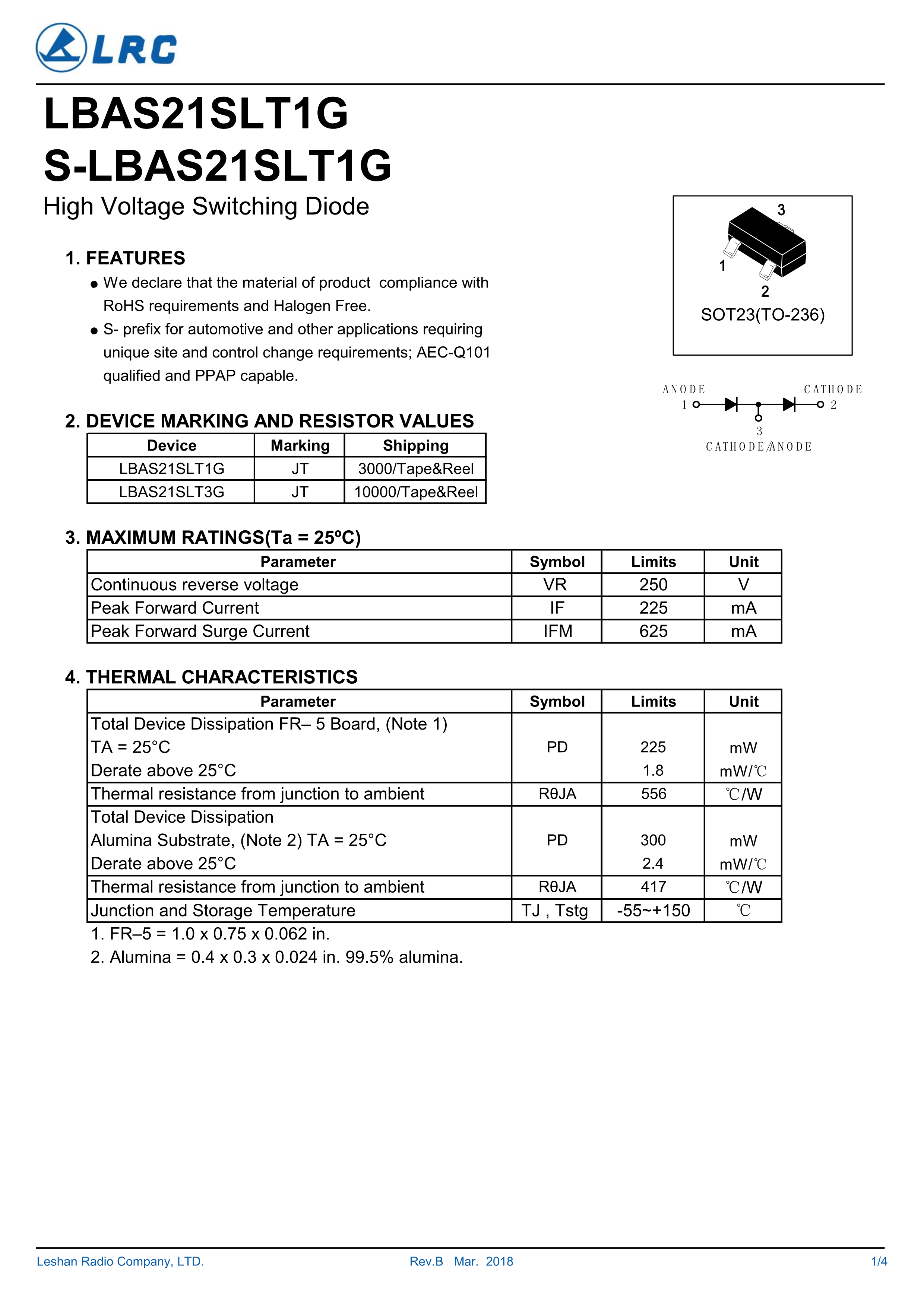 LBAS21SLT1G数据手册SOT-23封装LRC(乐山无线电)PDF规格书,中英文下载