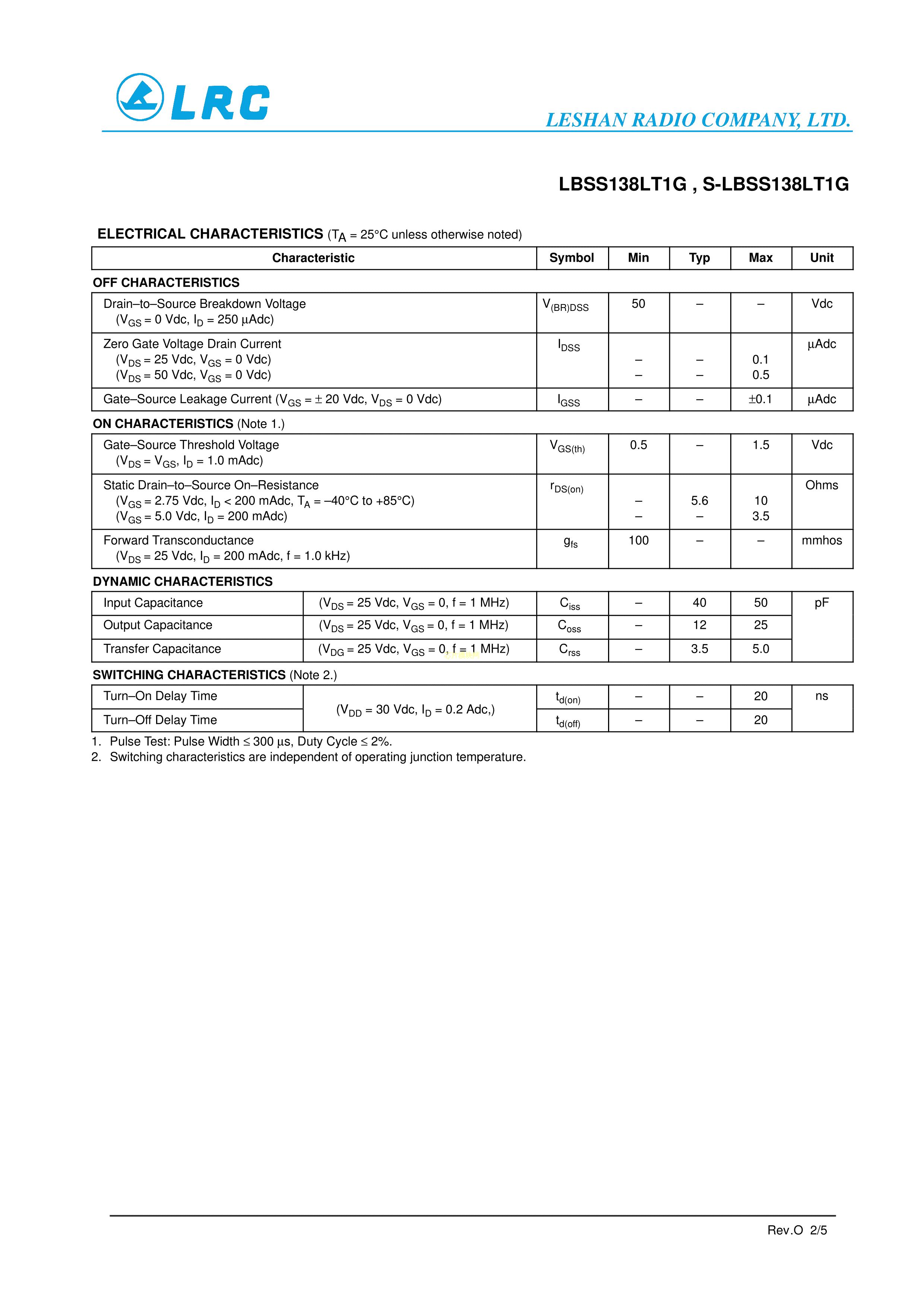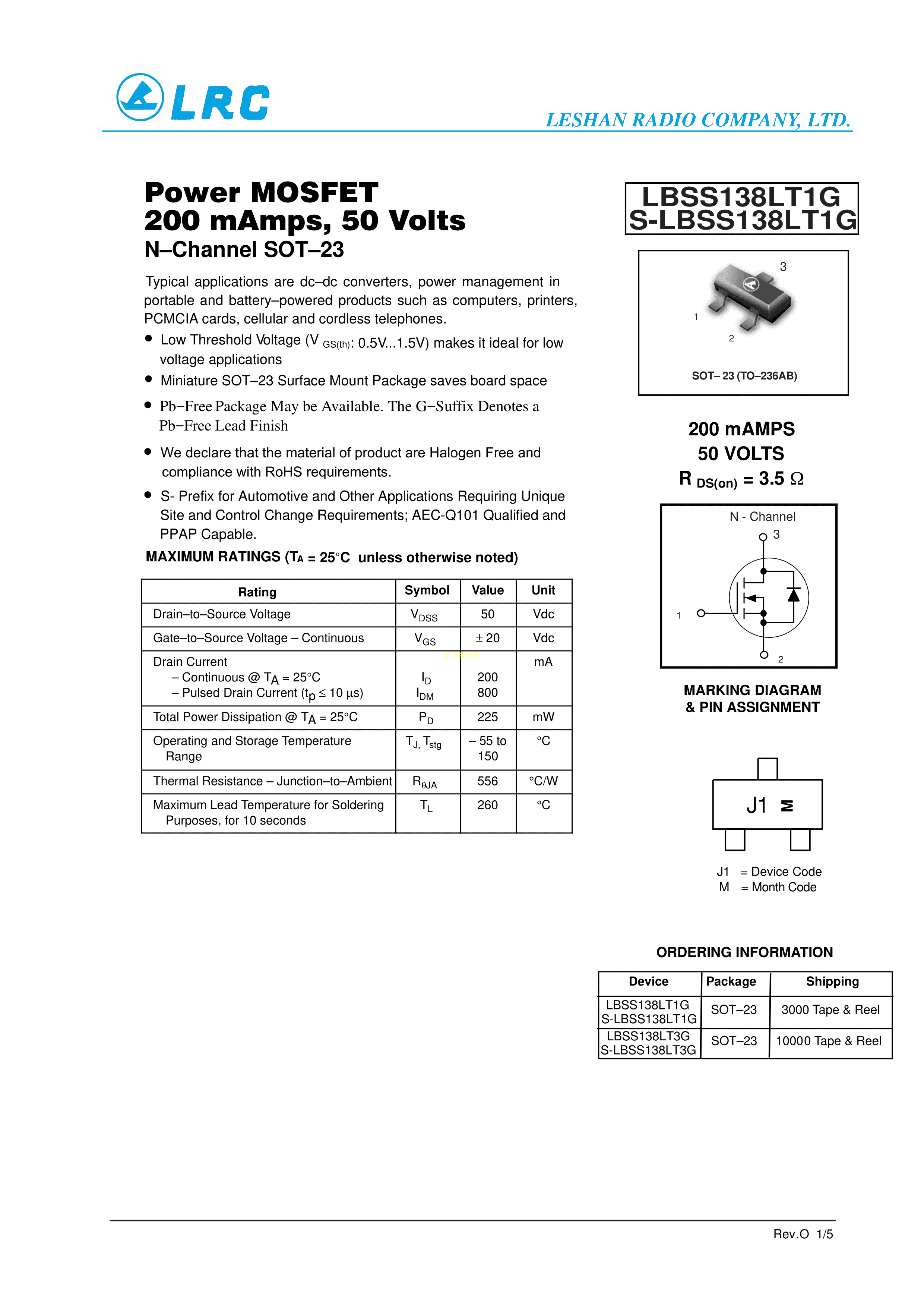 LBSS138LT1G数据手册SOT-23(SOT-23-3)封装LRC(乐山无线电)PDF规格书,
