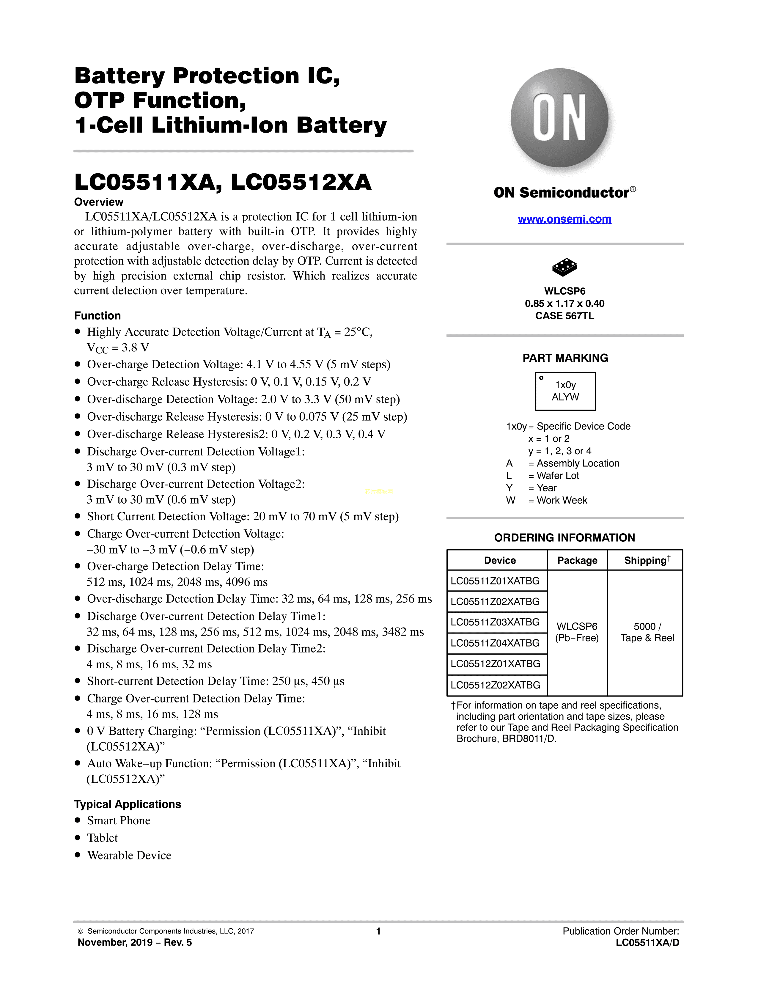 LC05512Z01XATBG数据手册WLCSP-6封装onsemi(安森美)PDF规格书,中英文下