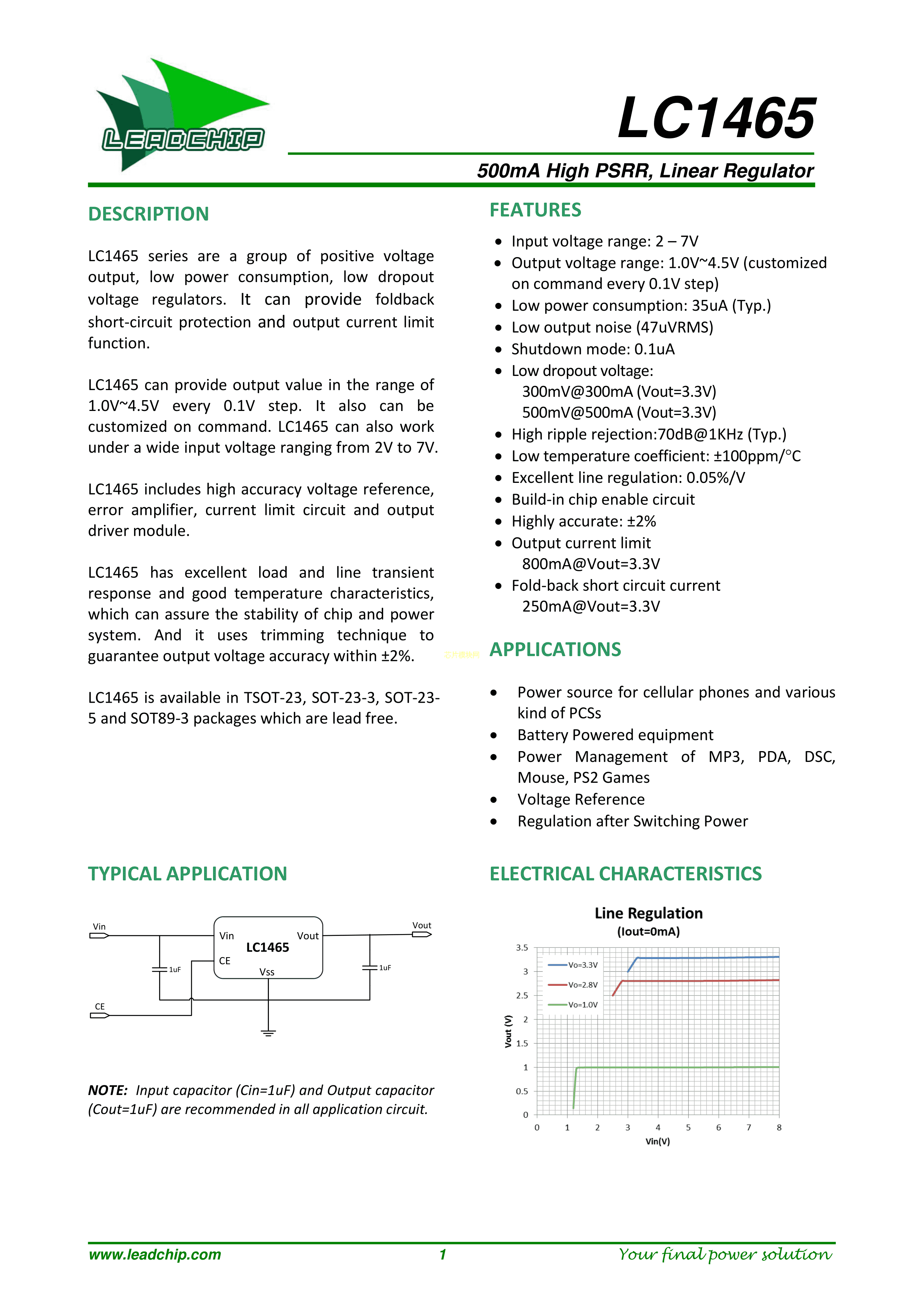LC1465CB5ATR18数据手册SOT-23-5(A)封装LEADCHIP(岭芯微)PDF规格书