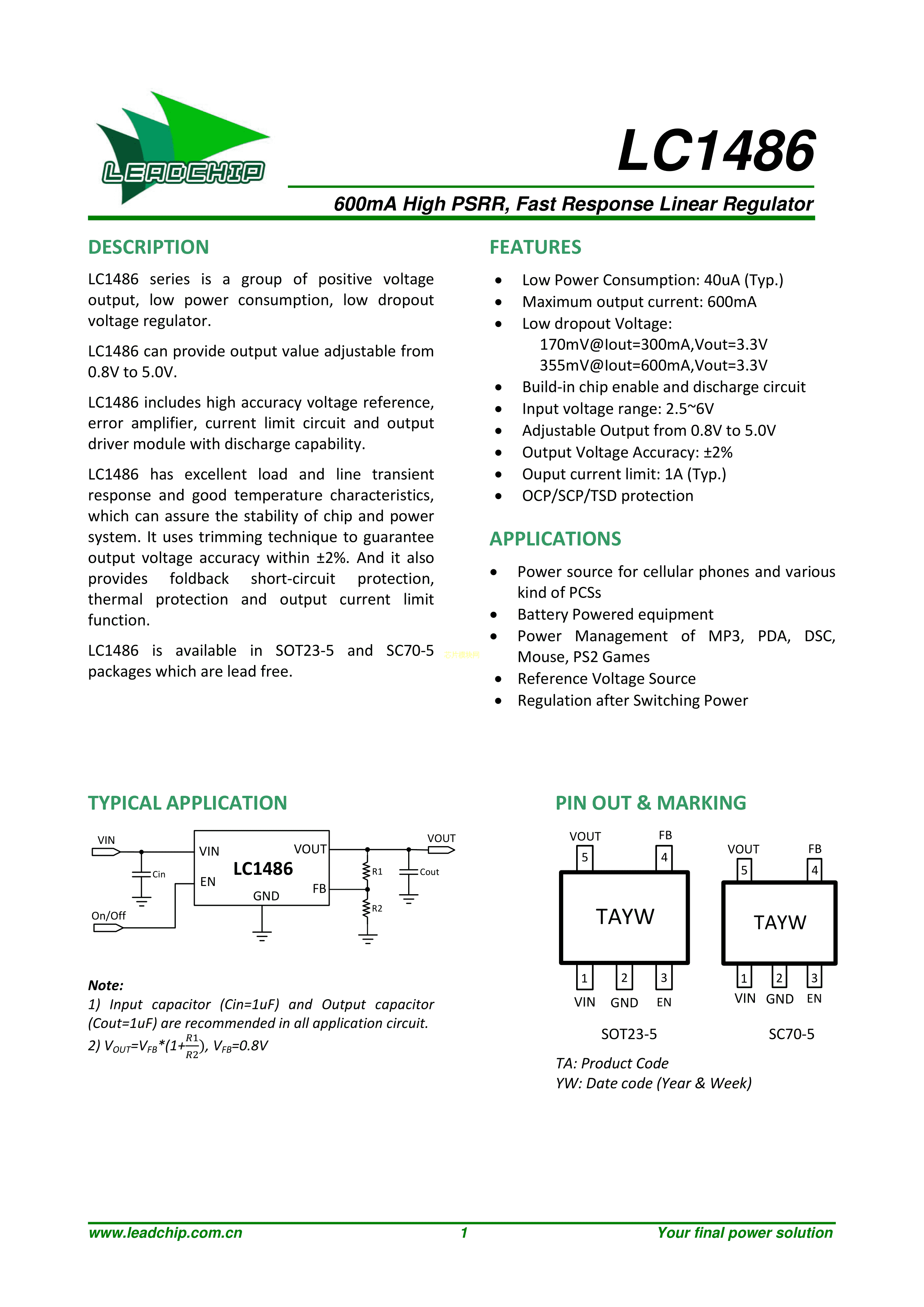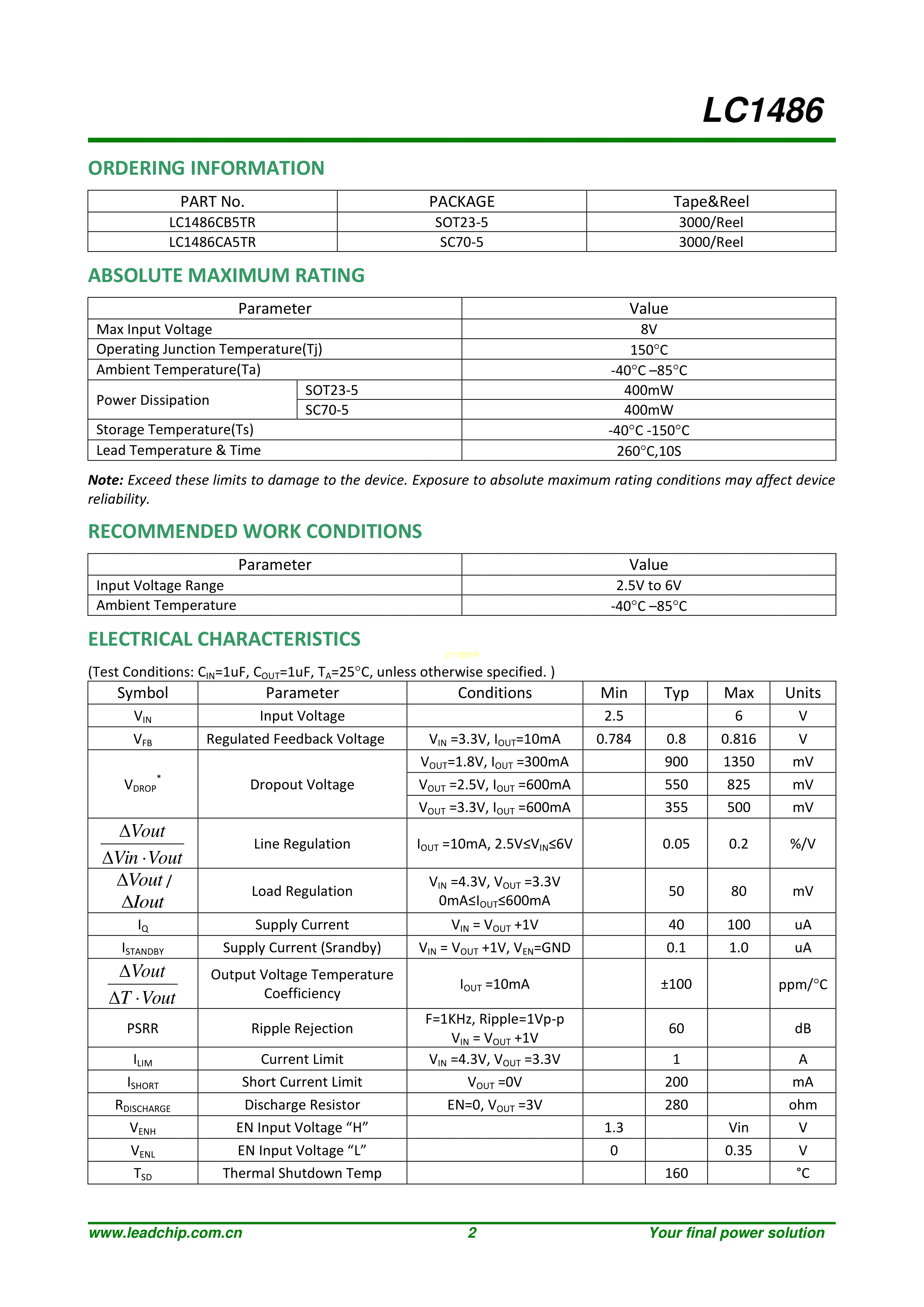 LC1486CB5TR数据手册SOT-23-5封装LEADCHIP(岭芯微)PDF规格书,中英文下载