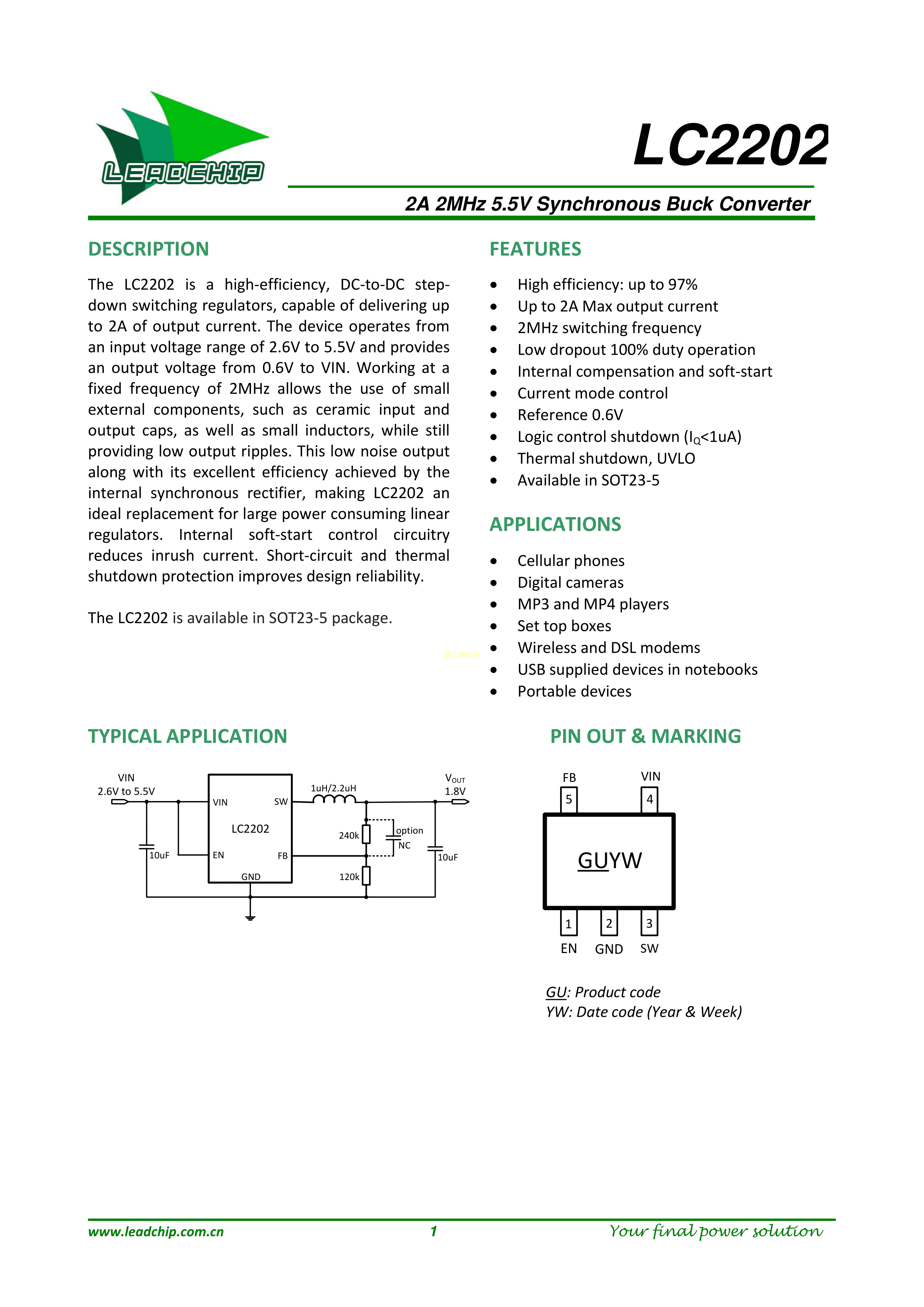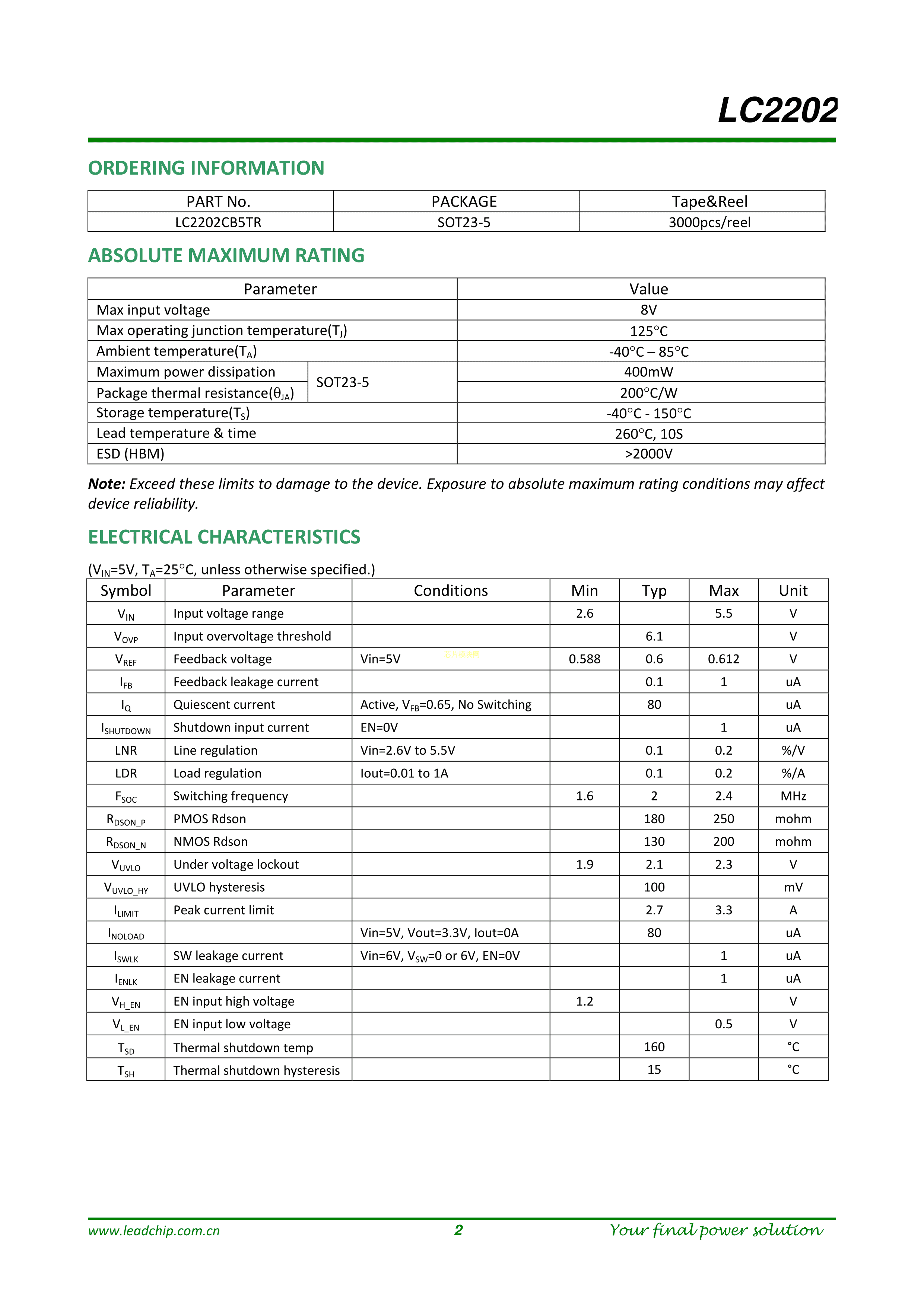 LC2202CB5TR数据手册SOT-23-5封装LEADCHIP(岭芯微)PDF规格书,中英文下载