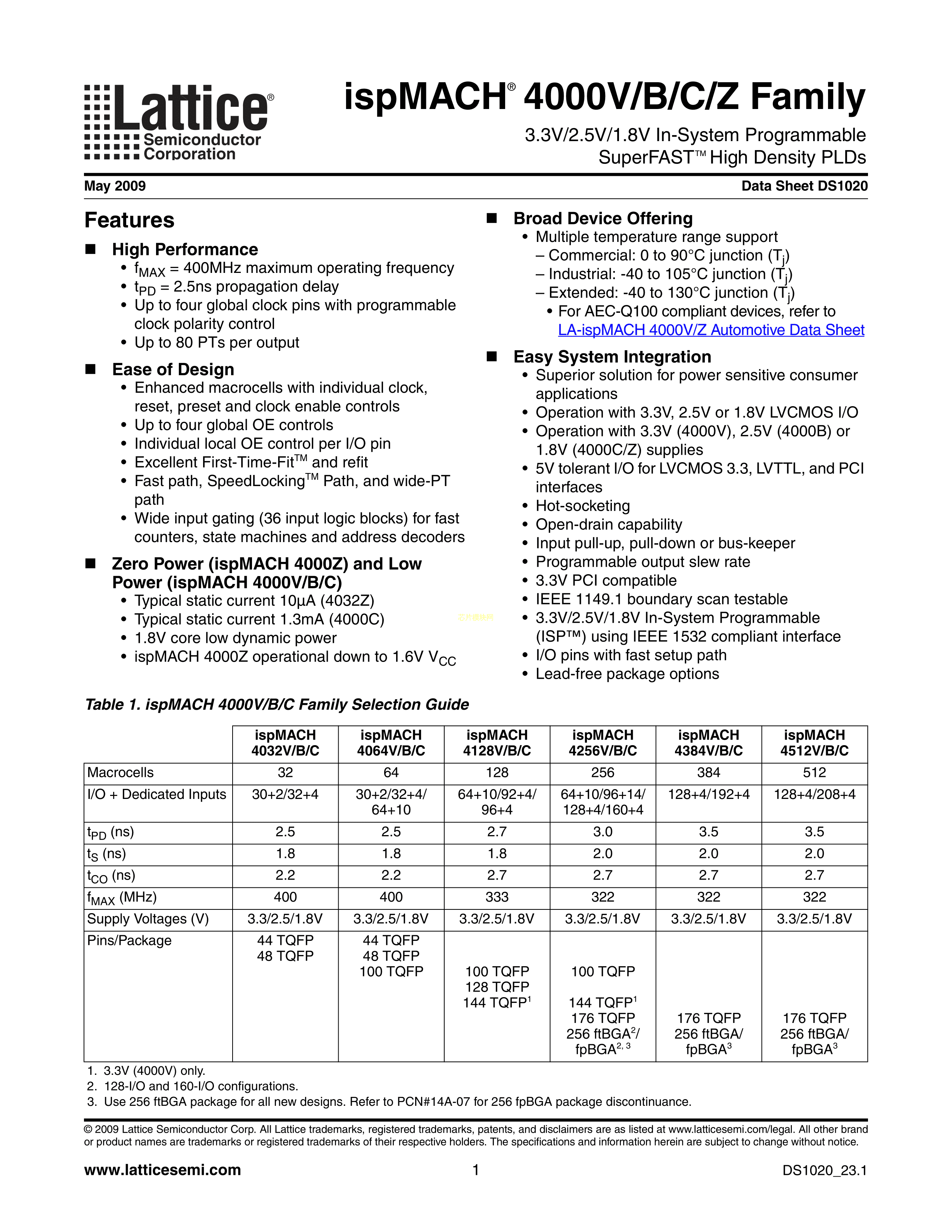 LC4032V-5TN44C数据手册TQFP-44(10x10)封装LATTICE(莱迪思)PDF规