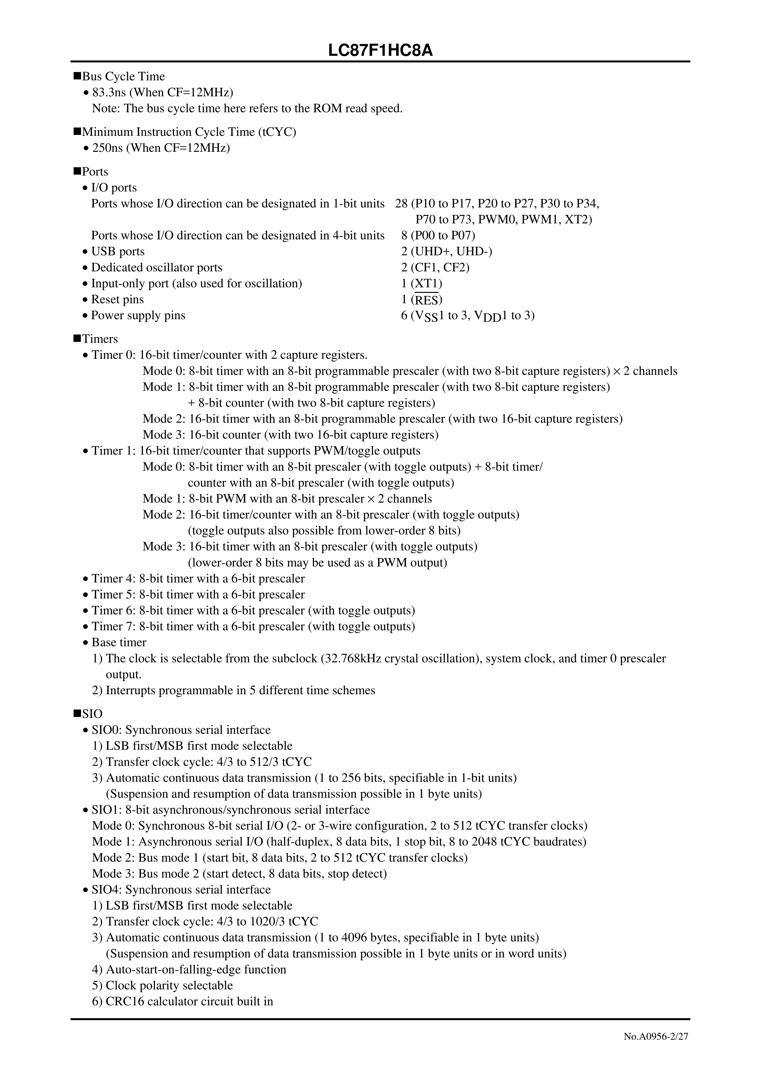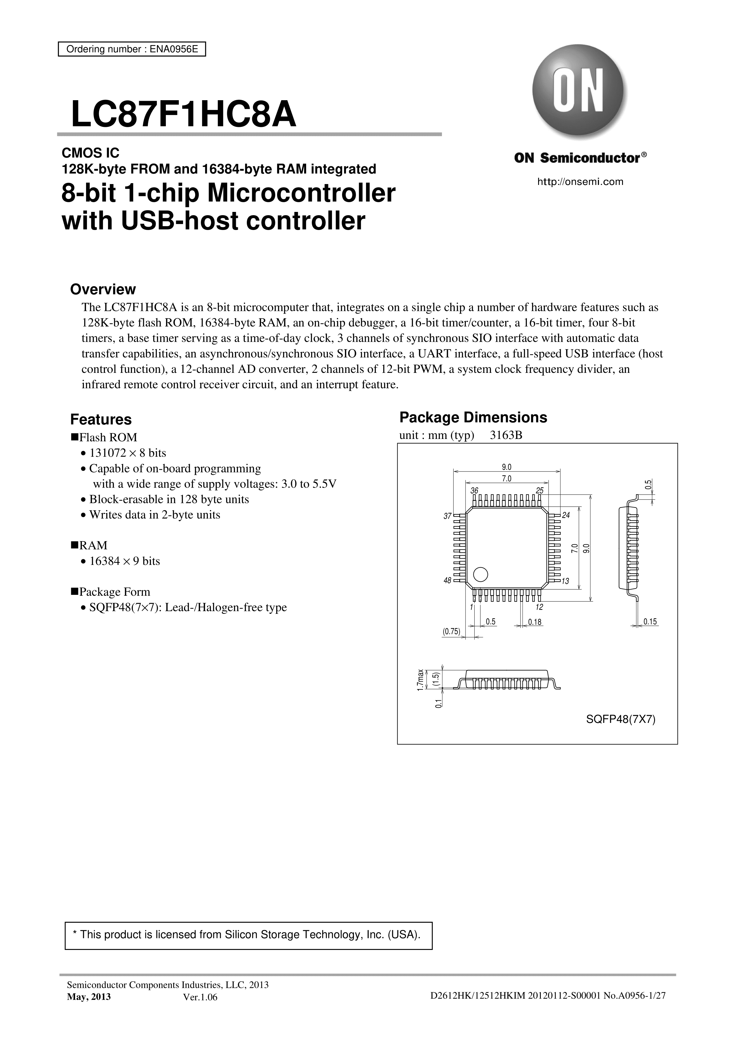 LC87F1HC8AUWA-2H数据手册SQFP-48封装onsemi(安森美)PDF规格书,中英文