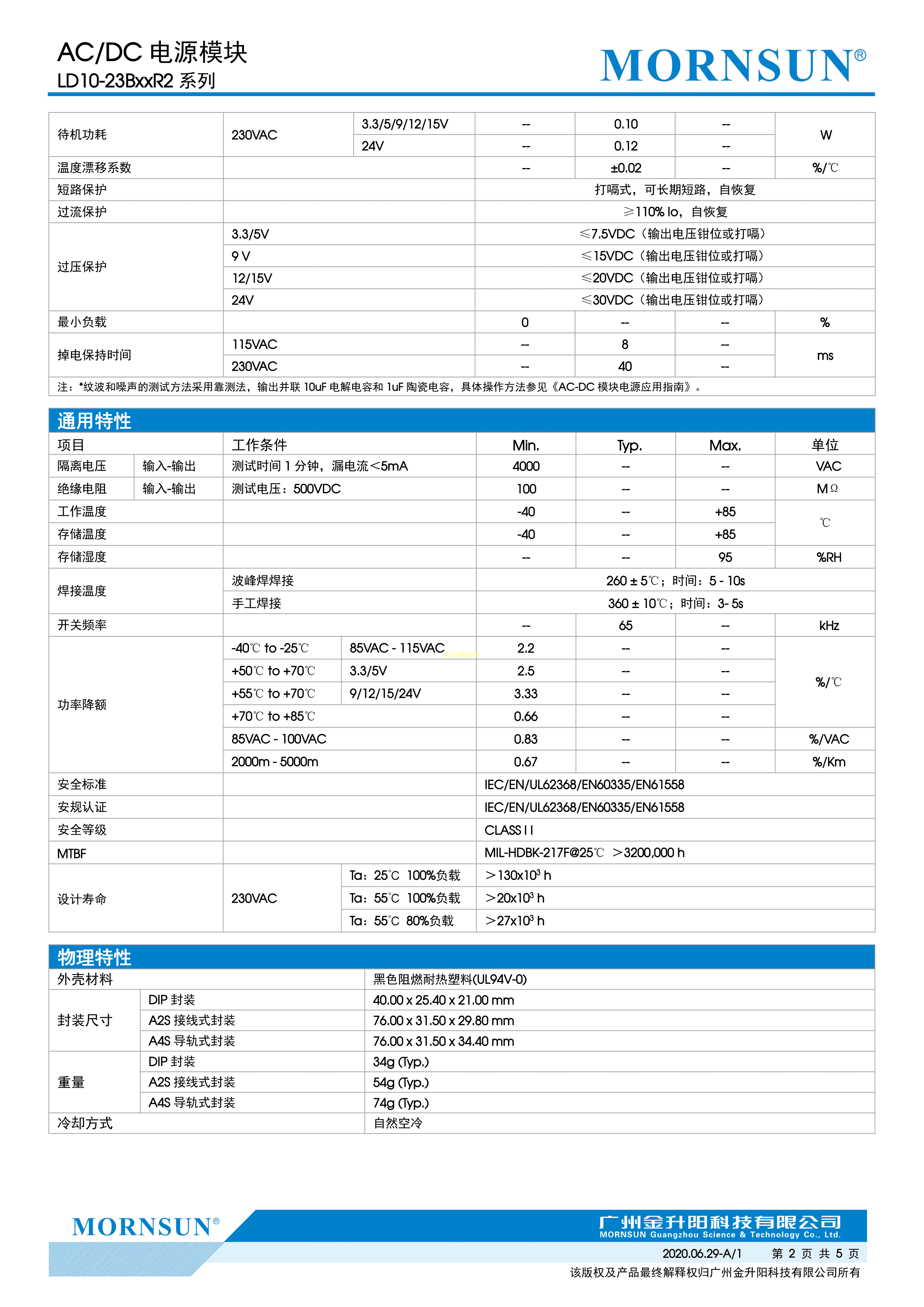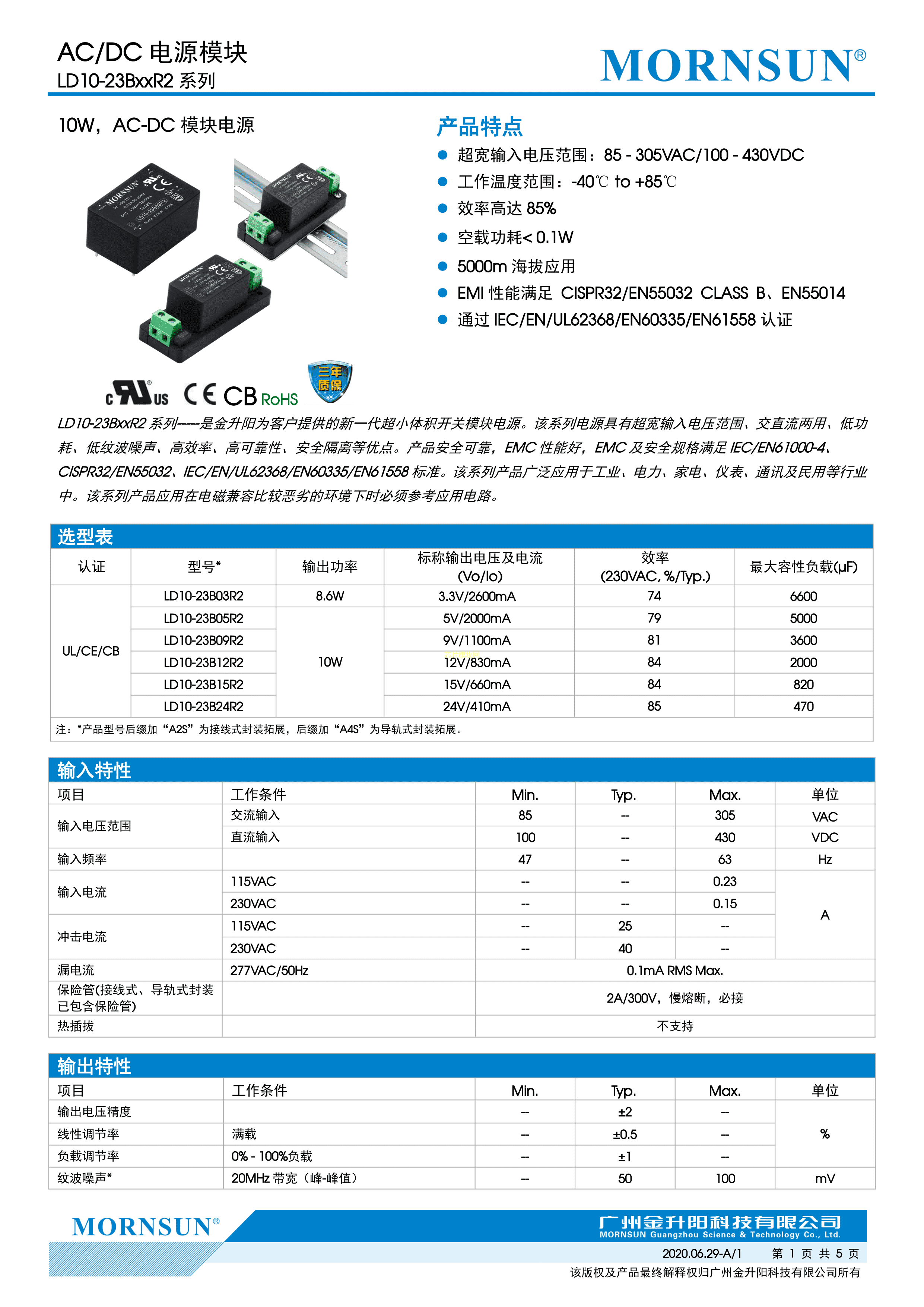 LD10-23B12R2数据手册插件封装MORNSUN(金升阳)PDF规格书,中英文下载