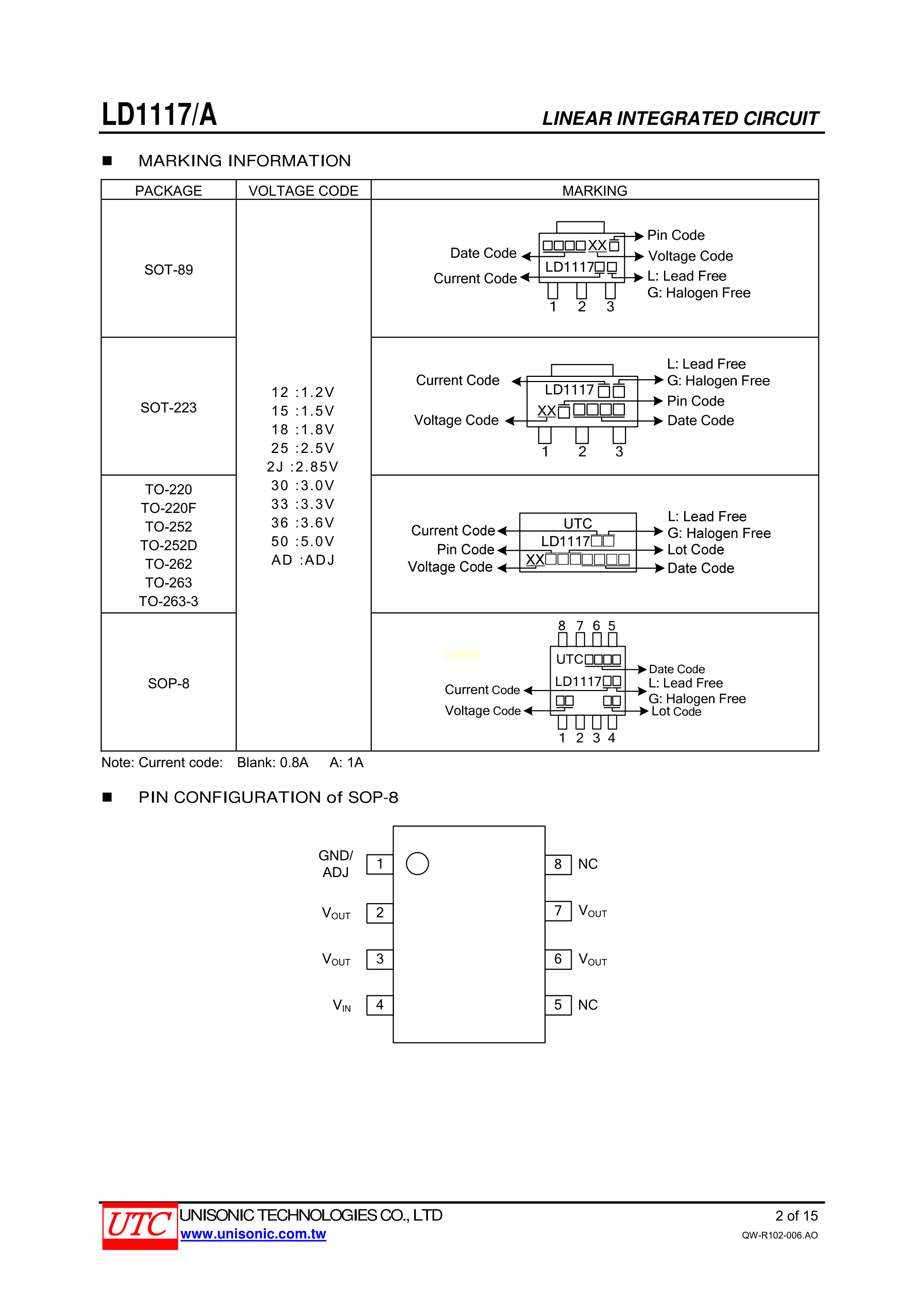 LD1117AG-3.3V-A数据手册SOT-223封装UTC(友顺)PDF规格书,中英文下载