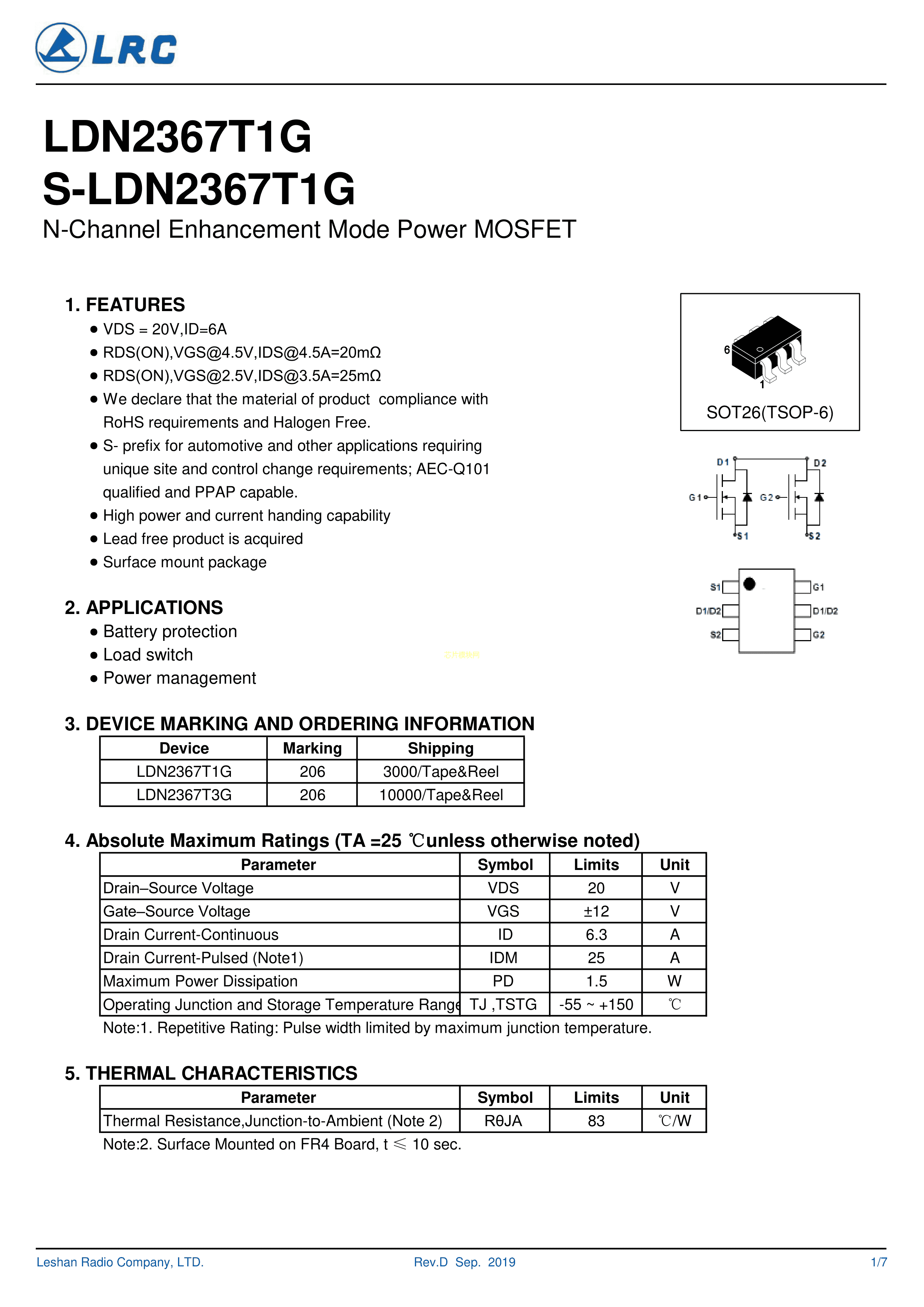LDN2367T1G数据手册SOT-26封装LRC(乐山无线电)PDF规格书,中英文下载