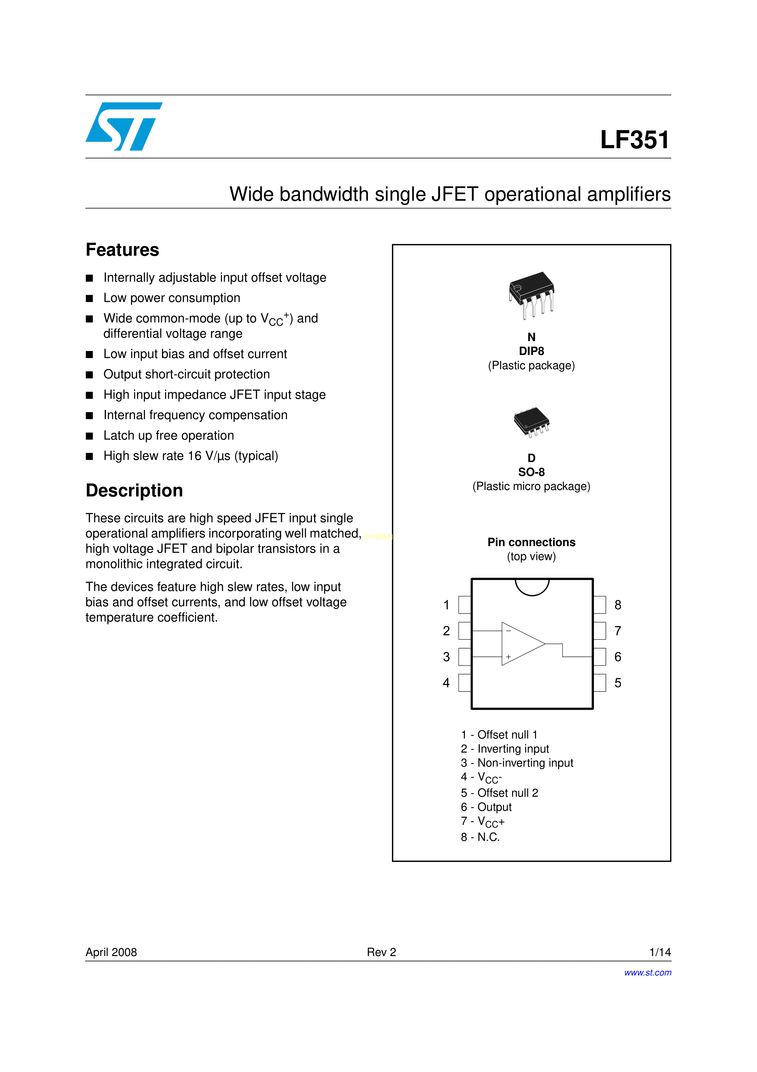 LF351D数据手册SO-8封装ST(意法半导体)PDF规格书,中英文下载