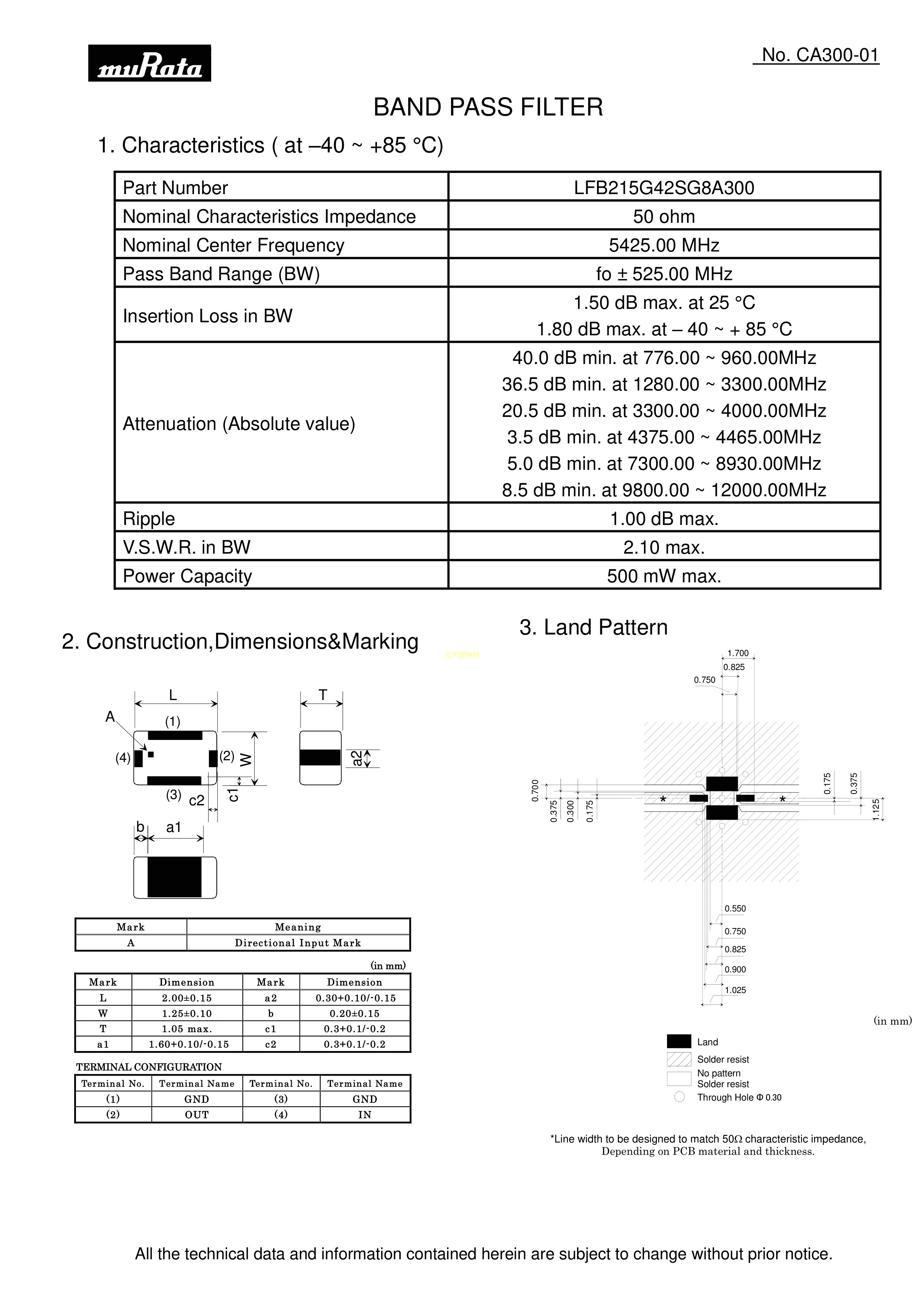 LFB215G42SG8A300数据手册0805封装muRata(村田)PDF规格书,中英文下载