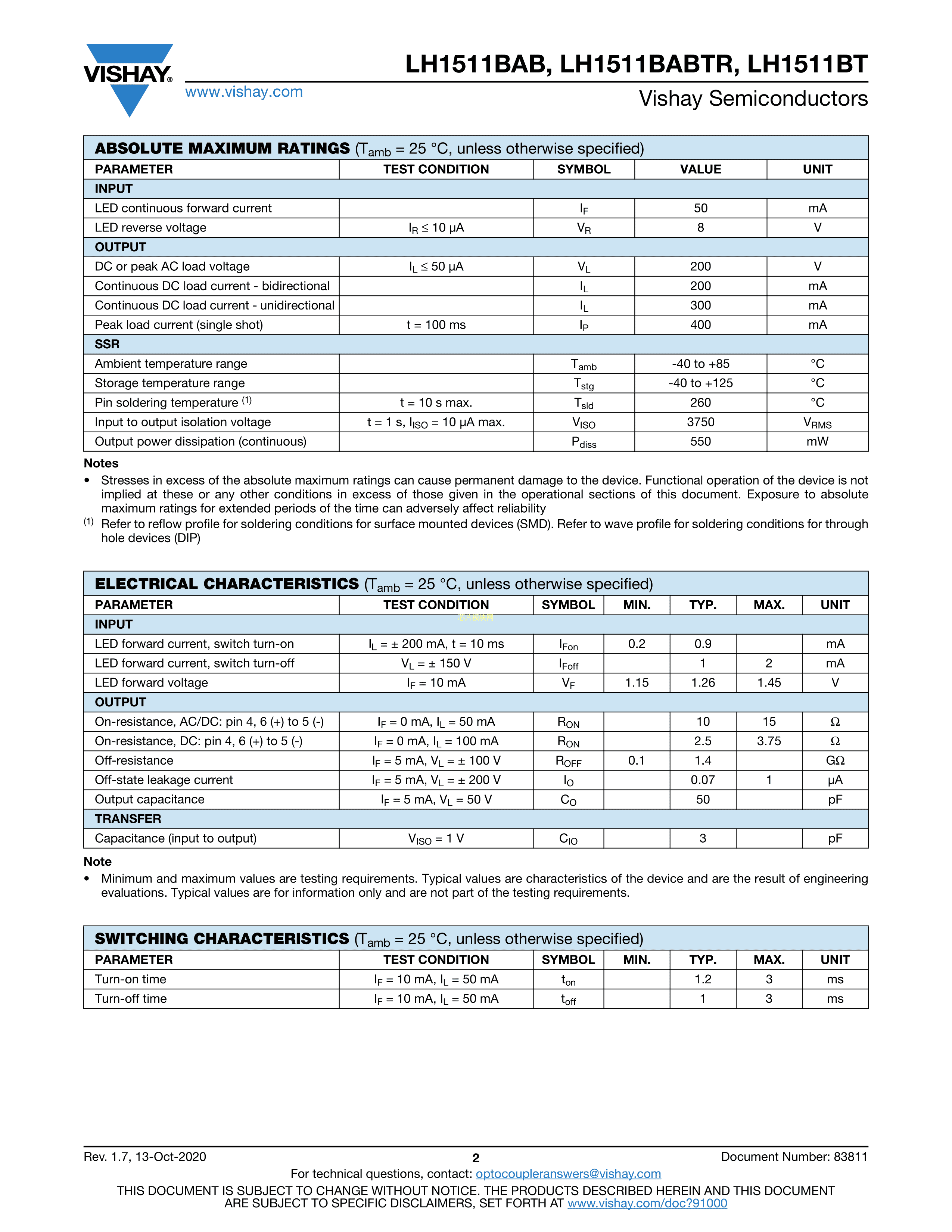 LH1511BABTR数据手册SMD-6封装VISHAY(威世)PDF规格书,中英文下载