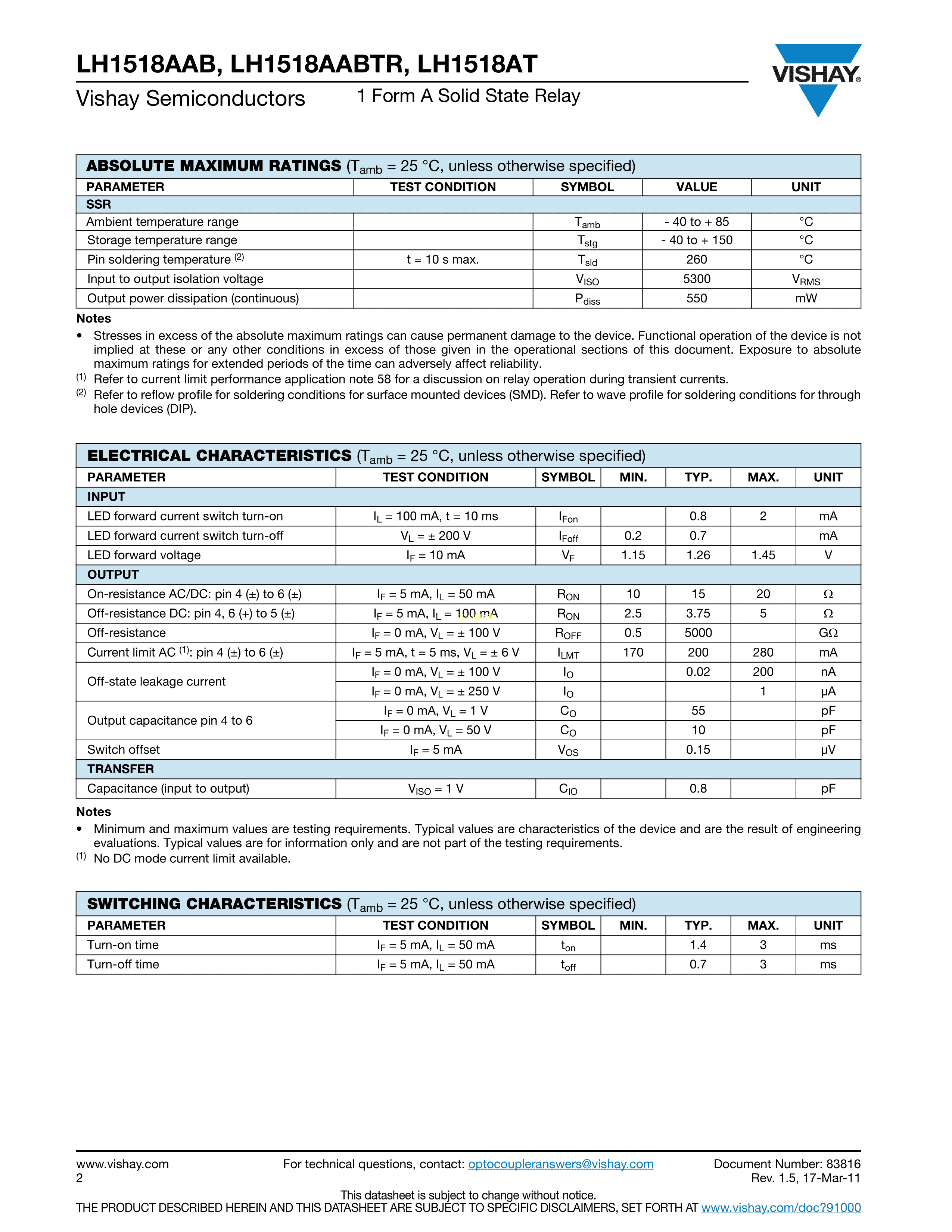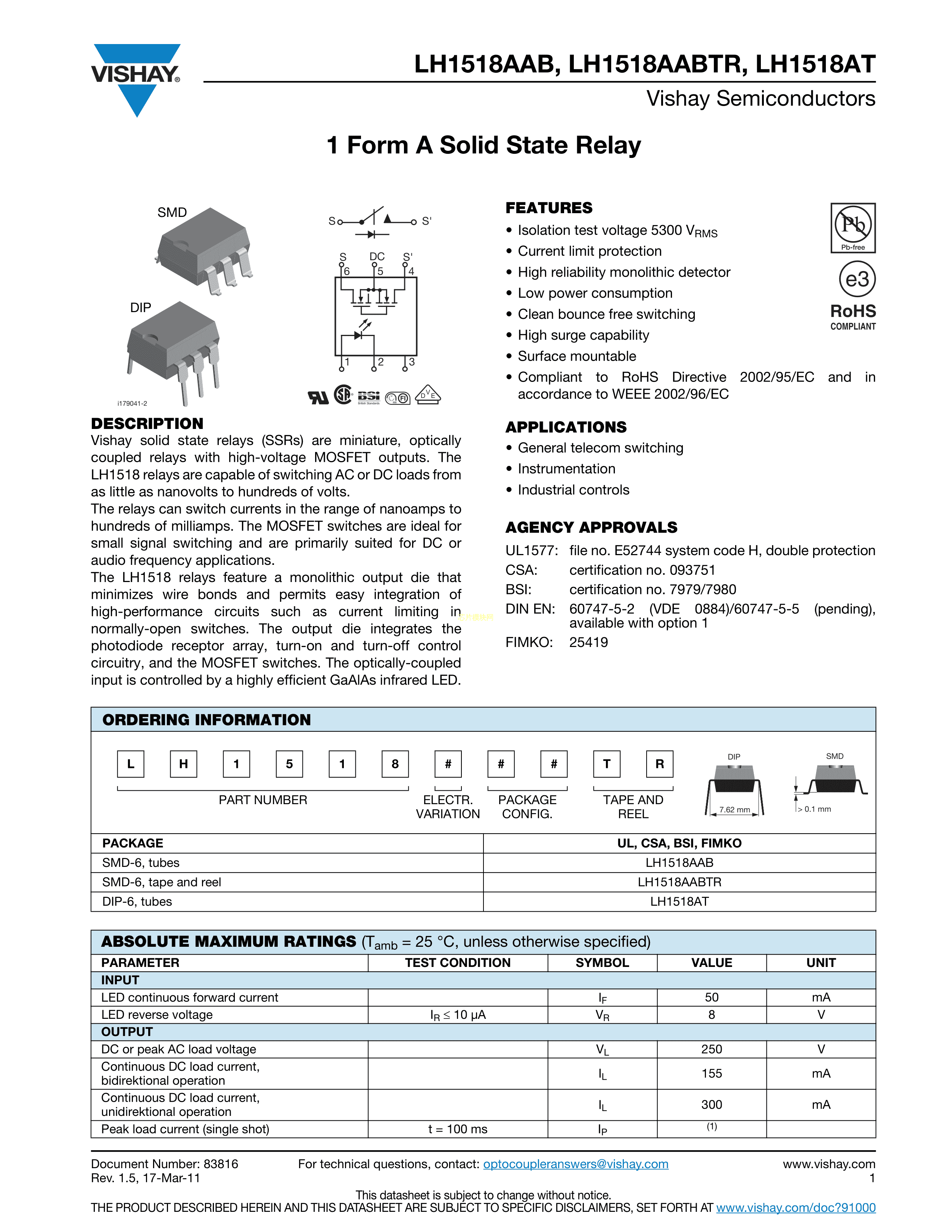 LH1518AABTR数据手册SMD-6封装VISHAY(威世)PDF规格书,中英文下载