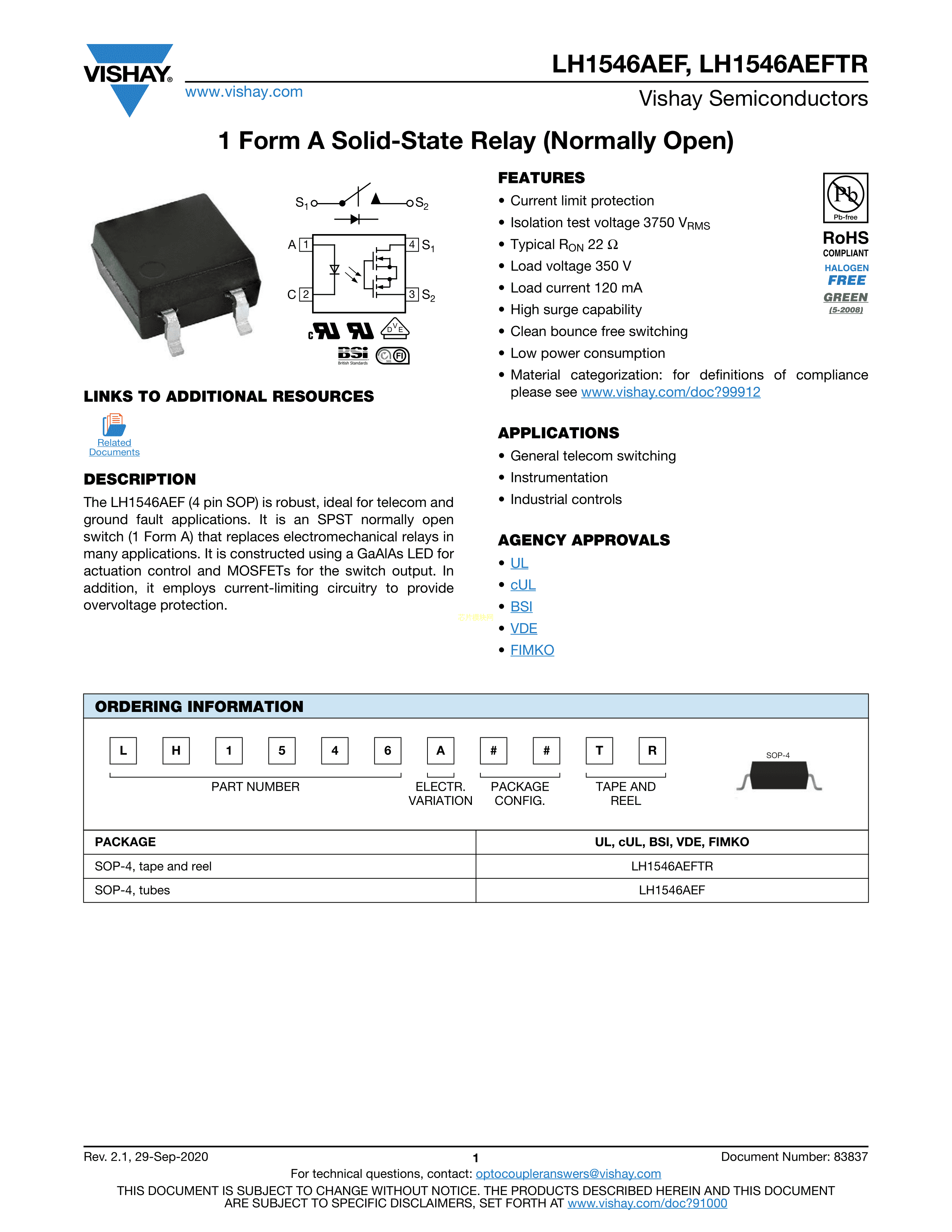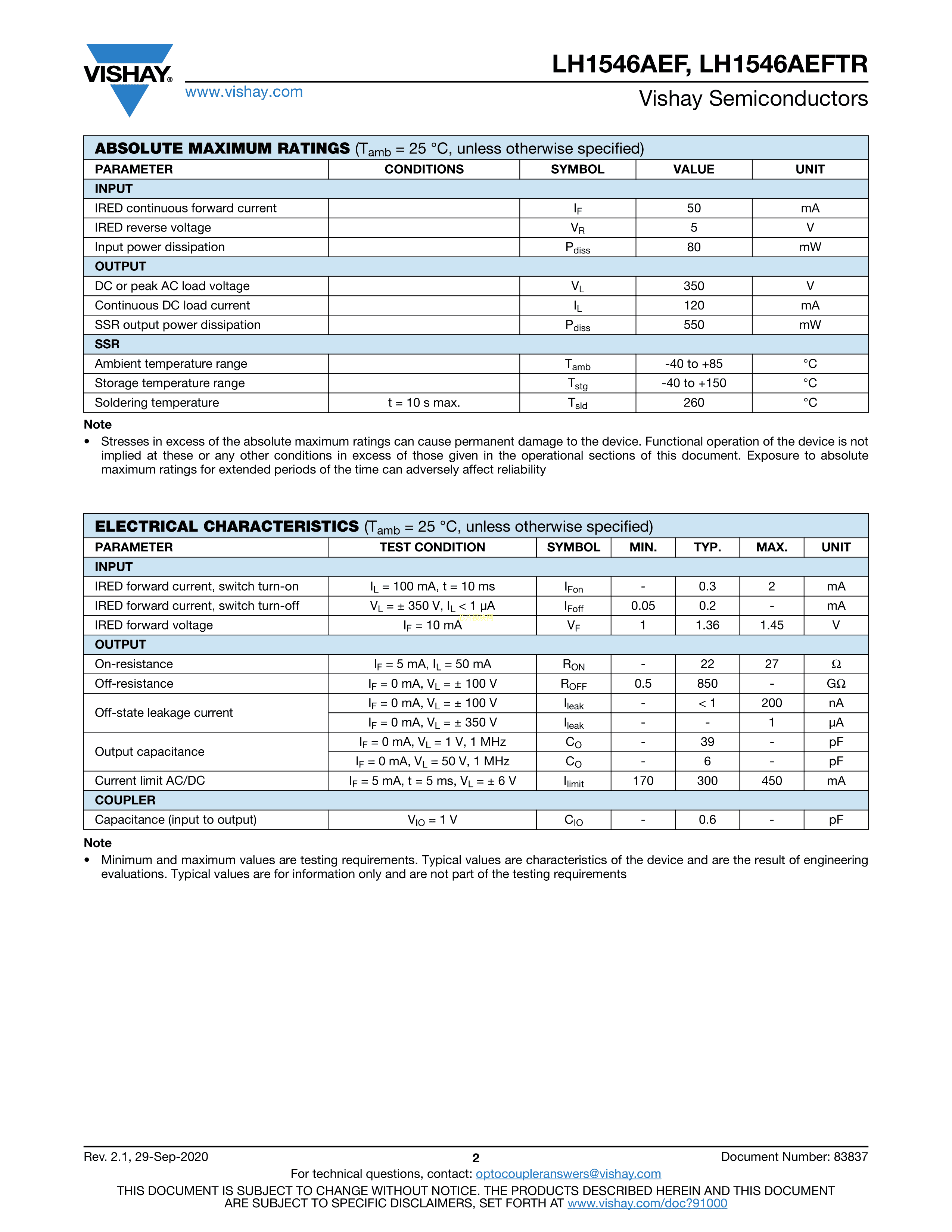 LH1546AEF-T0数据手册SOP-4封装VISHAY(威世)PDF规格书,中英文下载