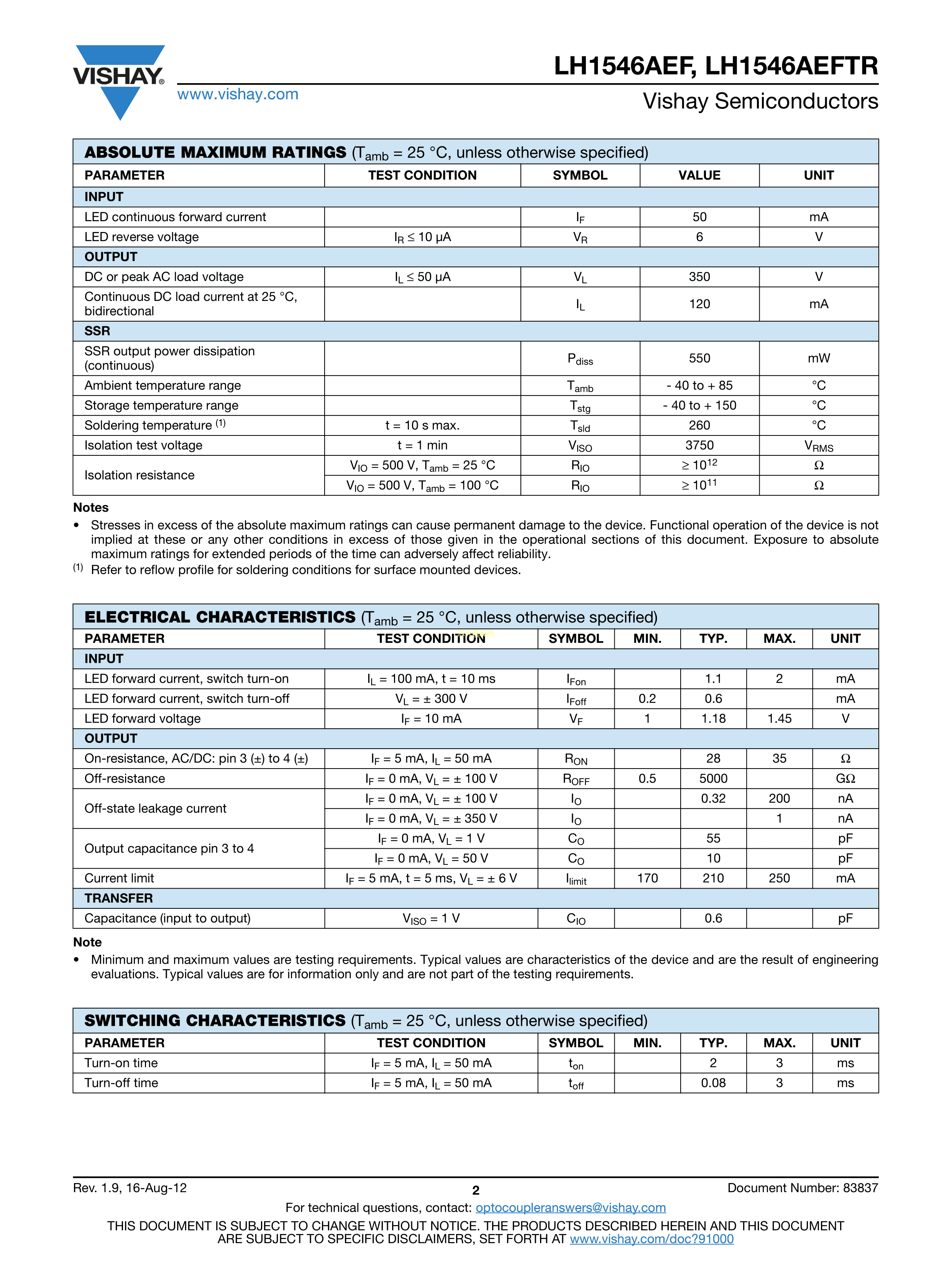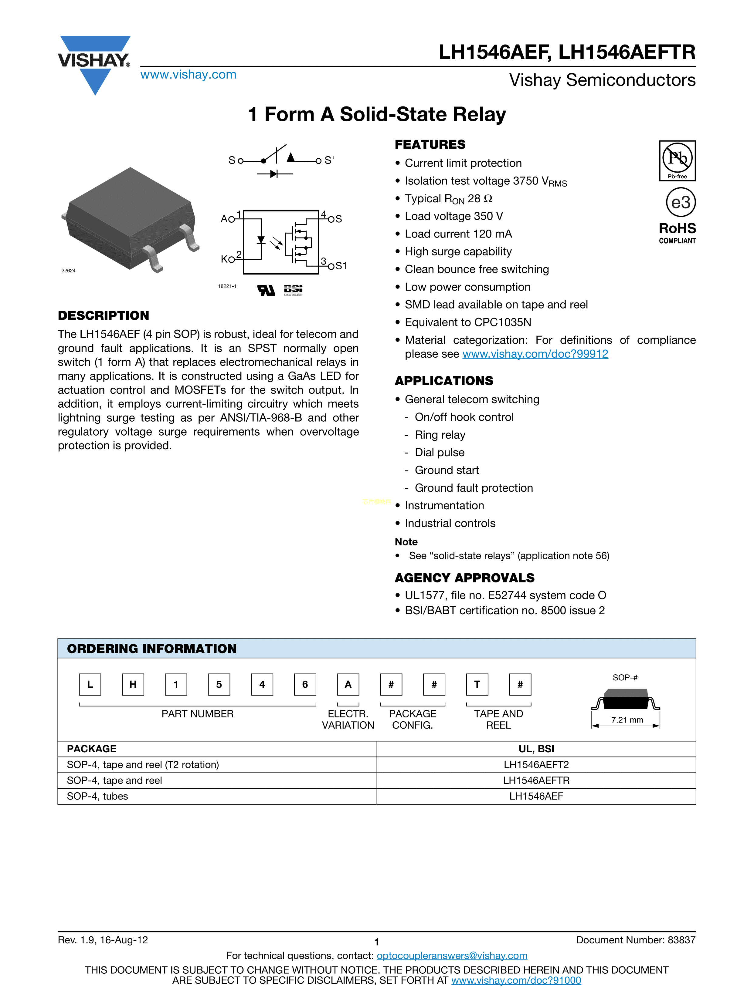 LH1546AEFTR数据手册SOP-4_2.54封装VISHAY(威世)PDF规格书,中英文下载