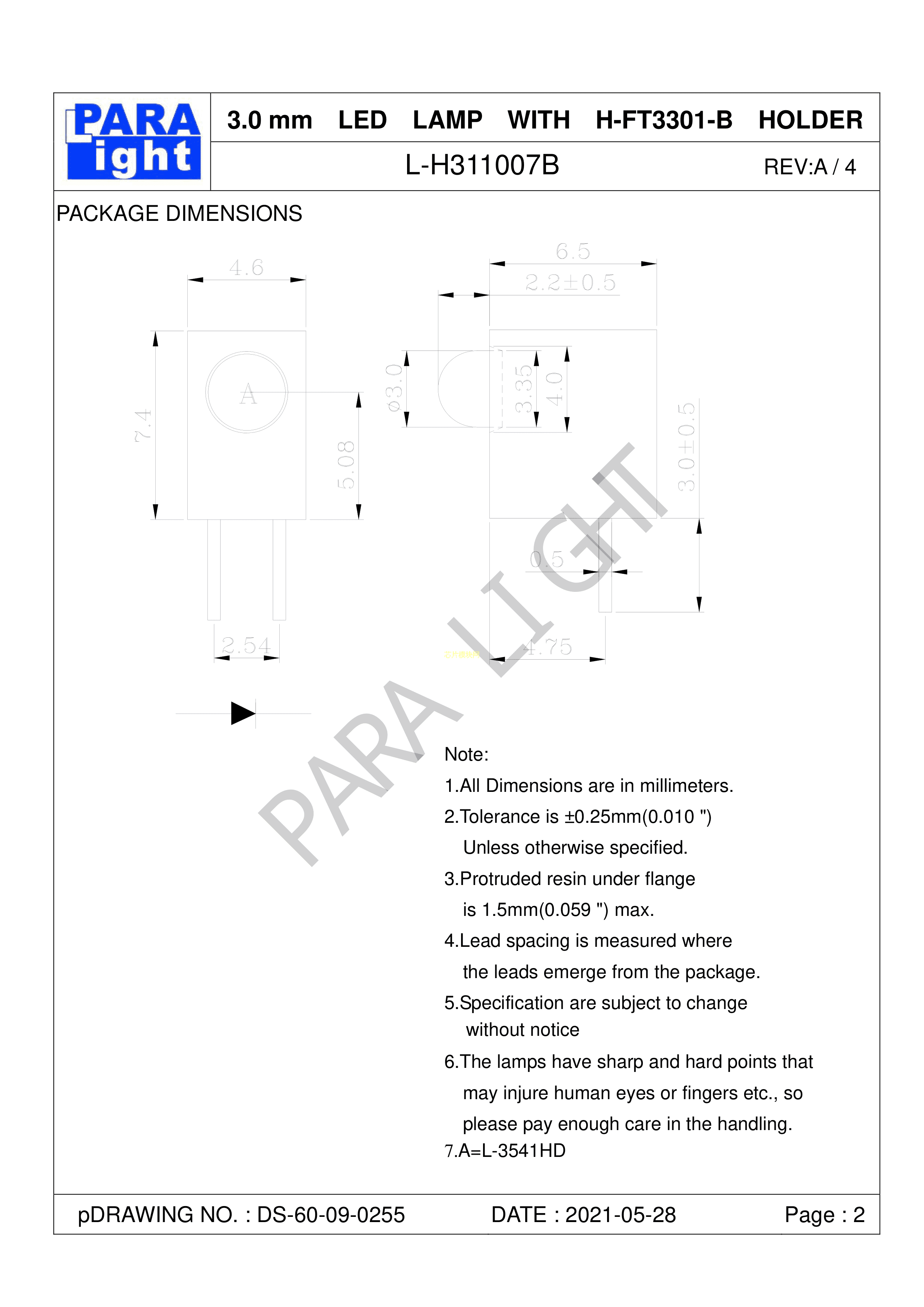 LH311007B数据手册插件封装PARALIGHT(台湾光鼎)PDF规格书,中英文下载