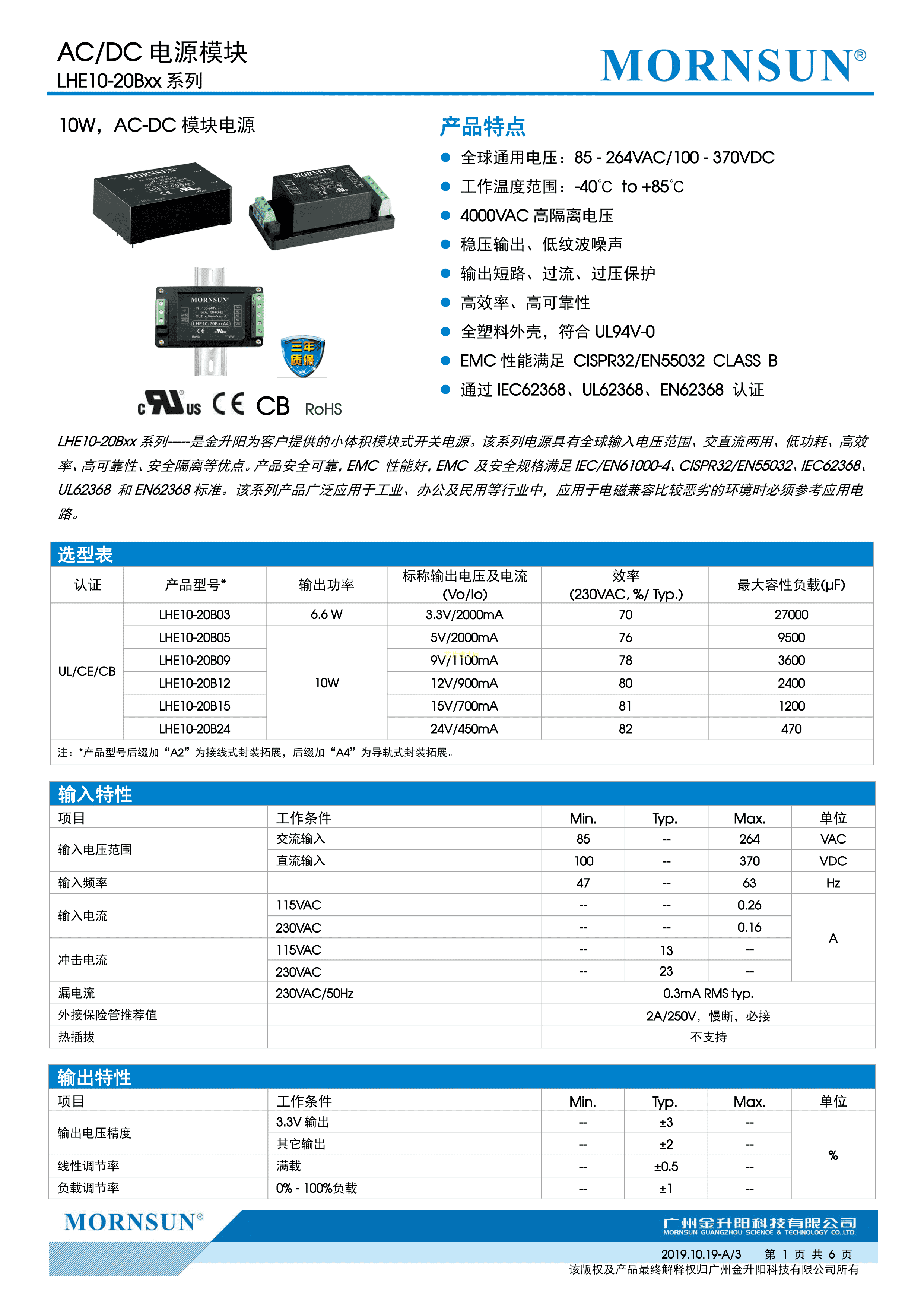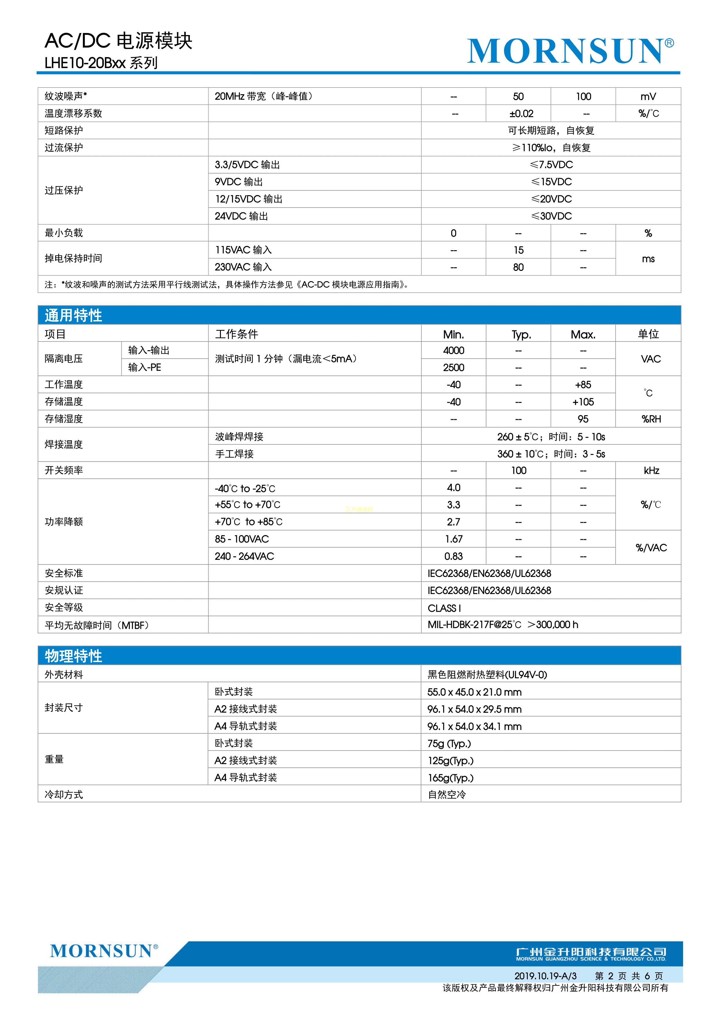LHE10-20B12数据手册插件封装MORNSUN(金升阳)PDF规格书,中英文下载