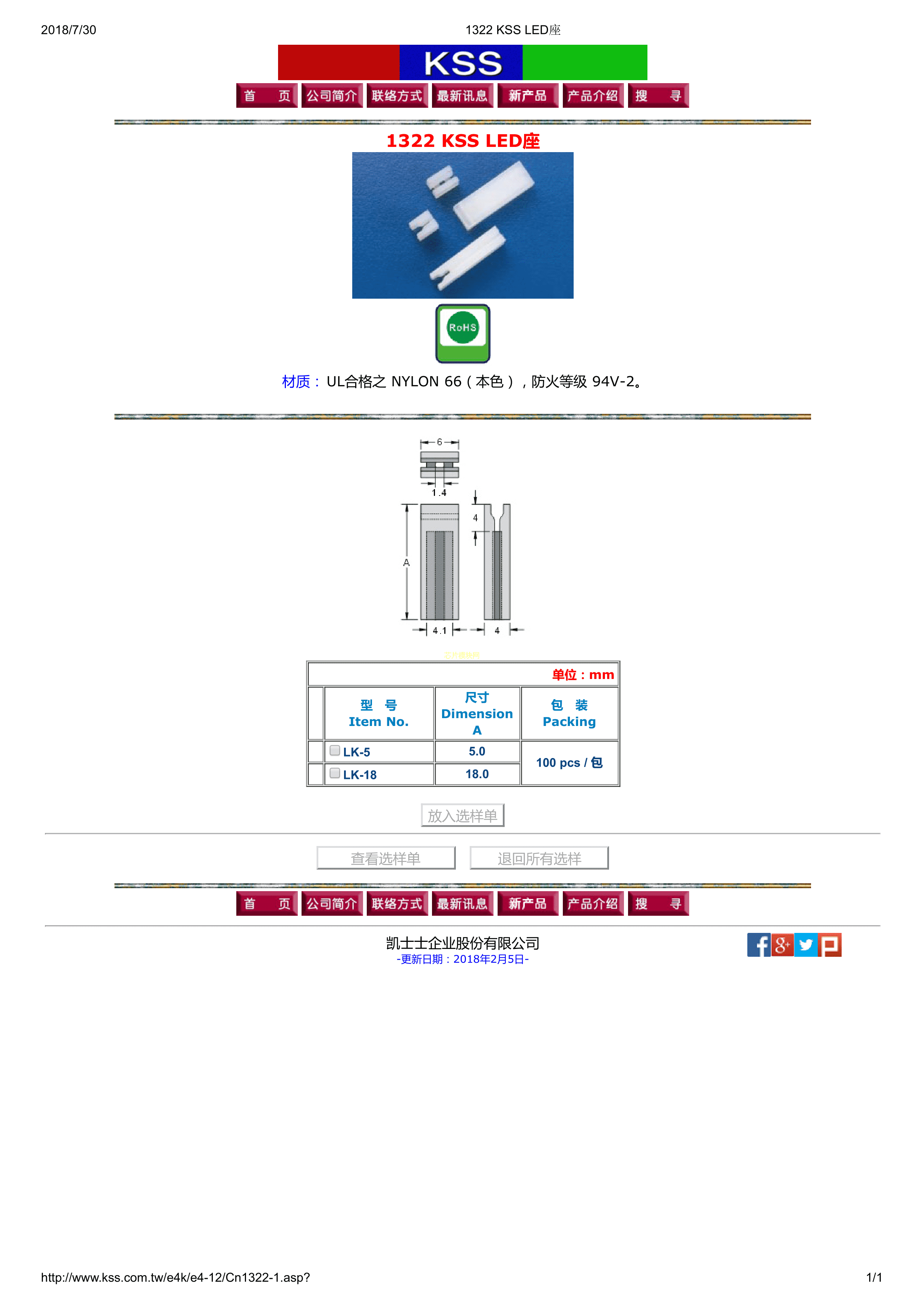 LK-18数据手册H18mm封装KSS(台湾凯士士)PDF规格书,中英文下载