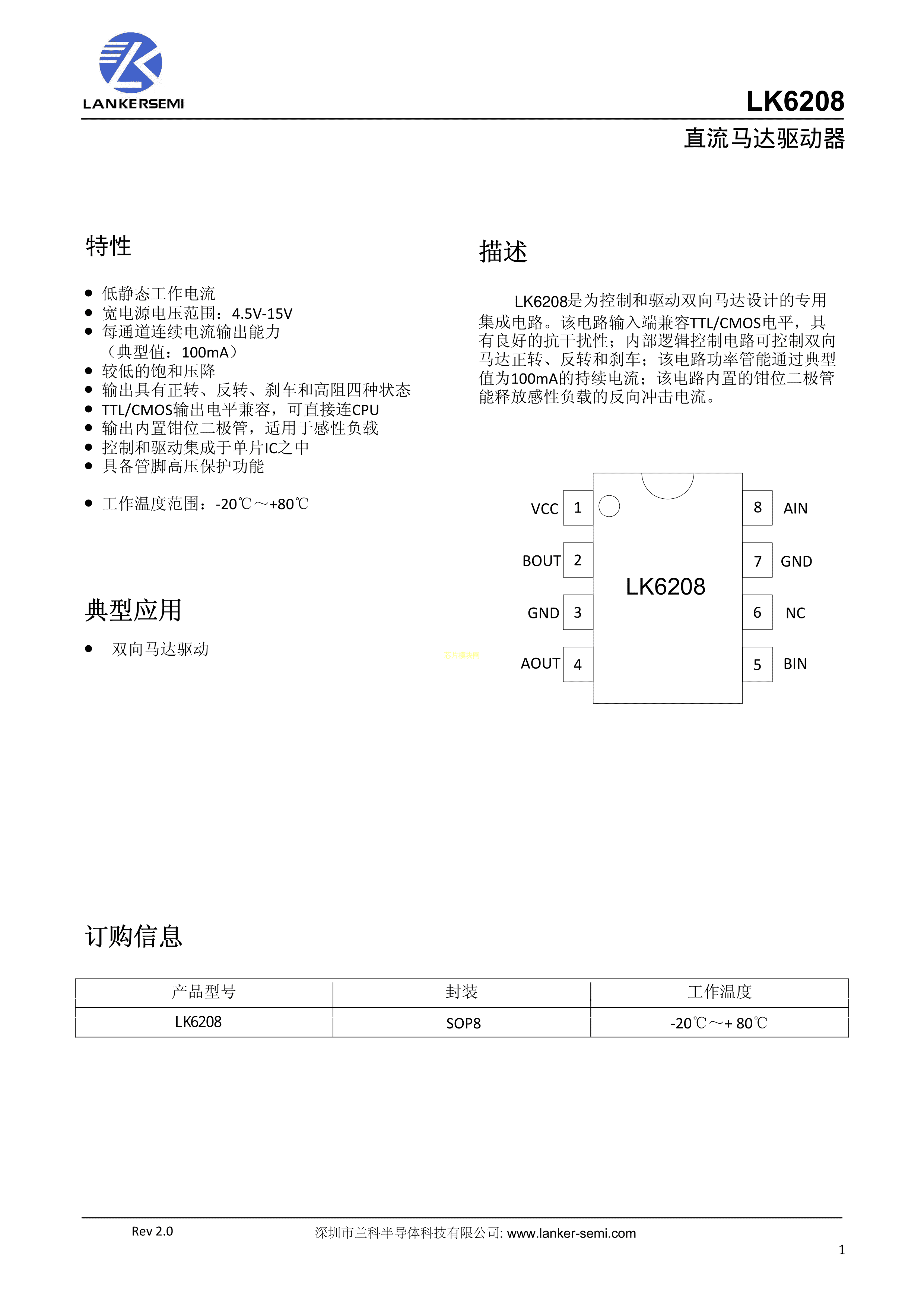 LK6208数据手册SOP8封装LANKE(兰科)PDF规格书,中英文下载