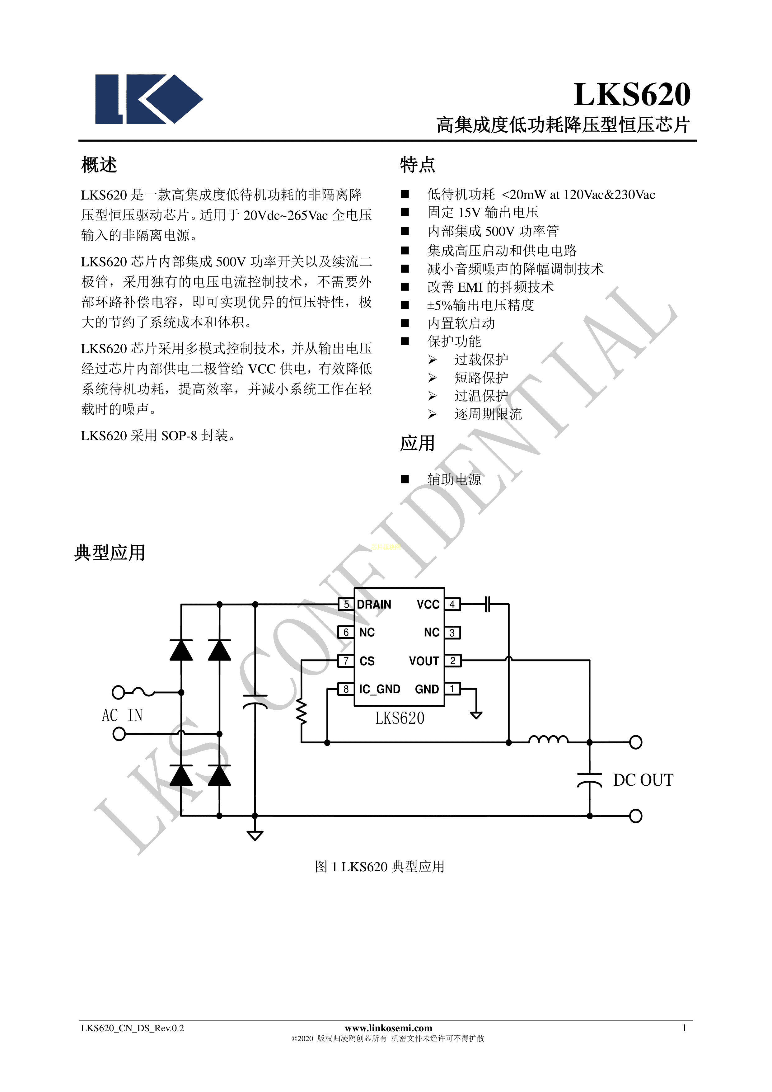 LKS620数据手册SOP-8封装LINKOSEMI(凌鸥创芯)PDF规格书,中英文下载