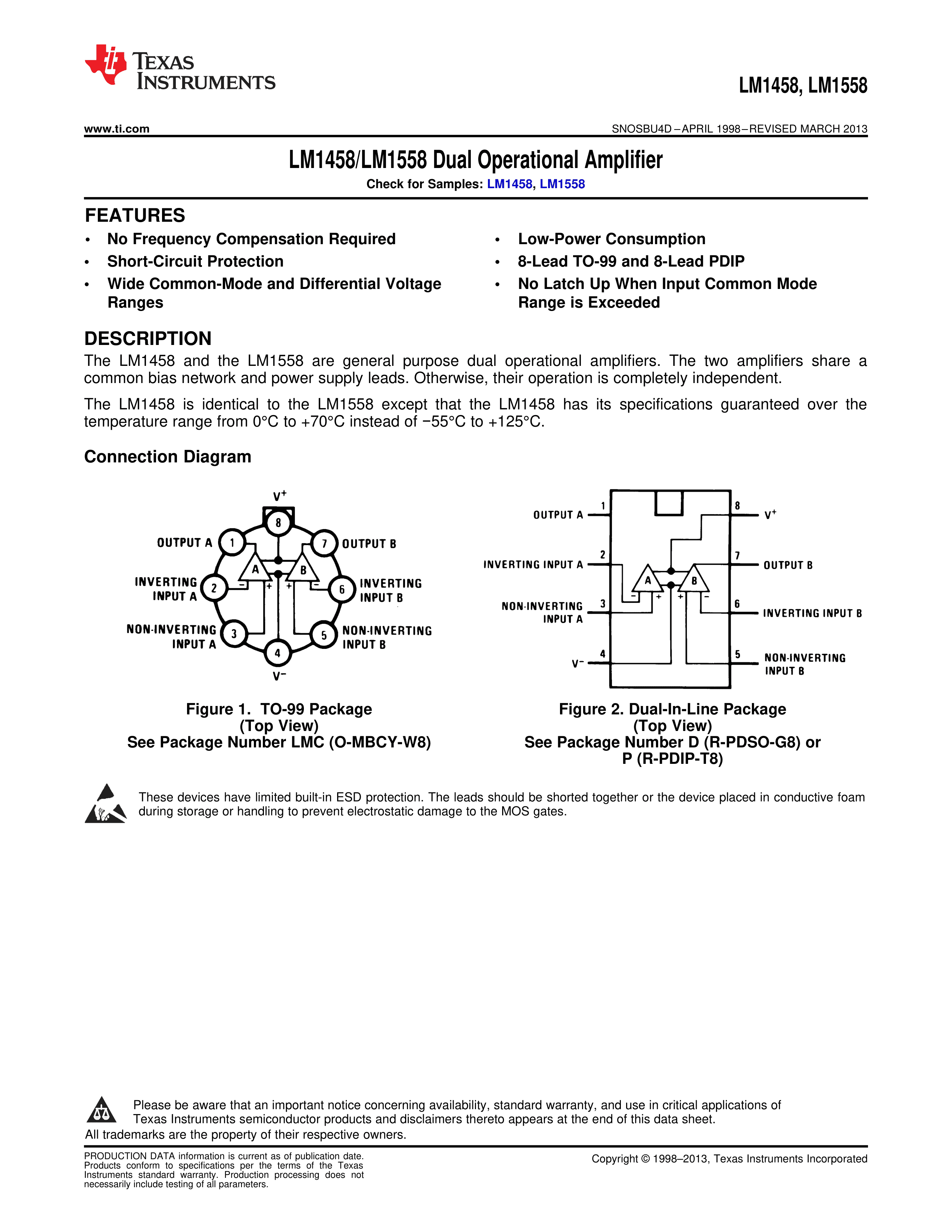 LM1458MX-NOPB数据手册SOIC-8_150mil封装TI(德州仪器)PDF规格书,中英文