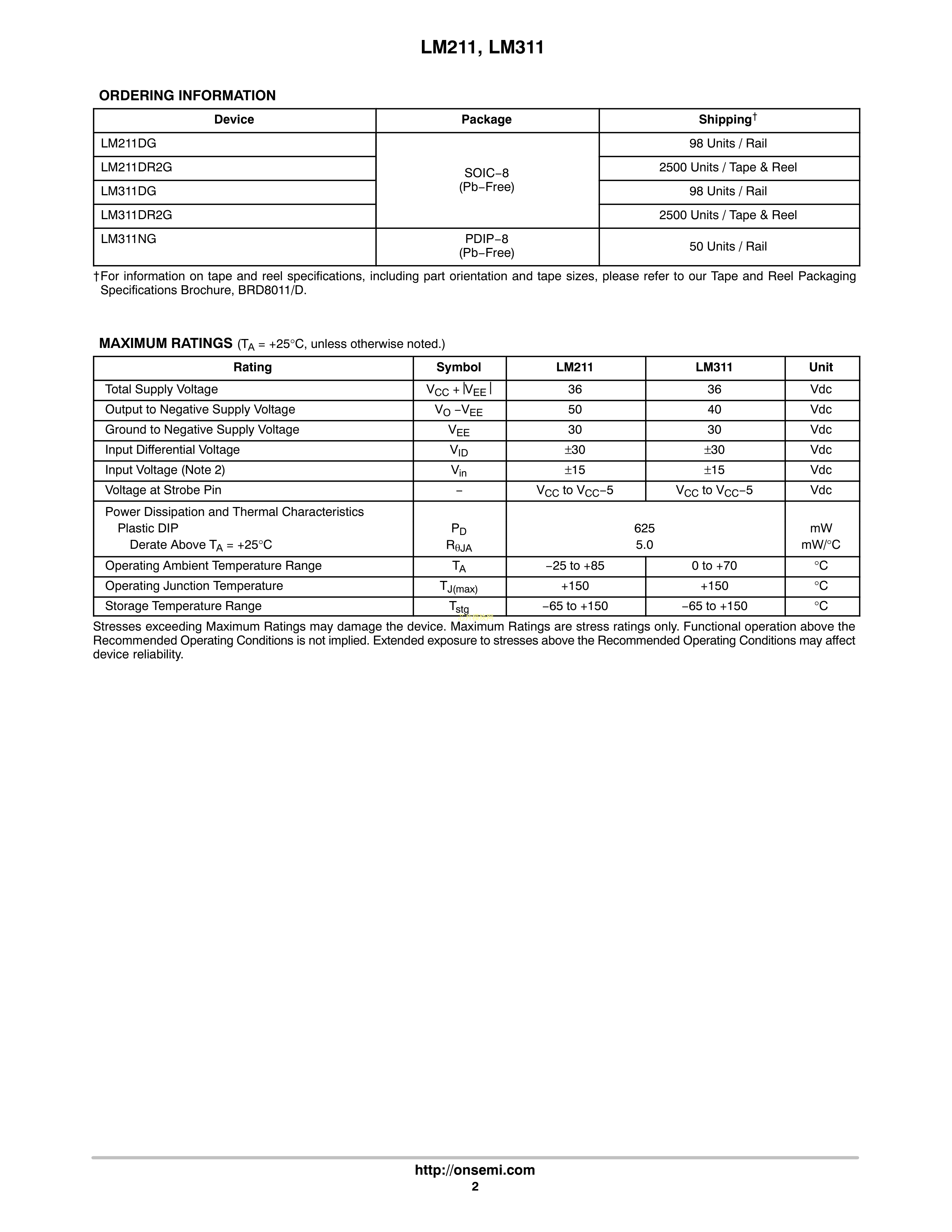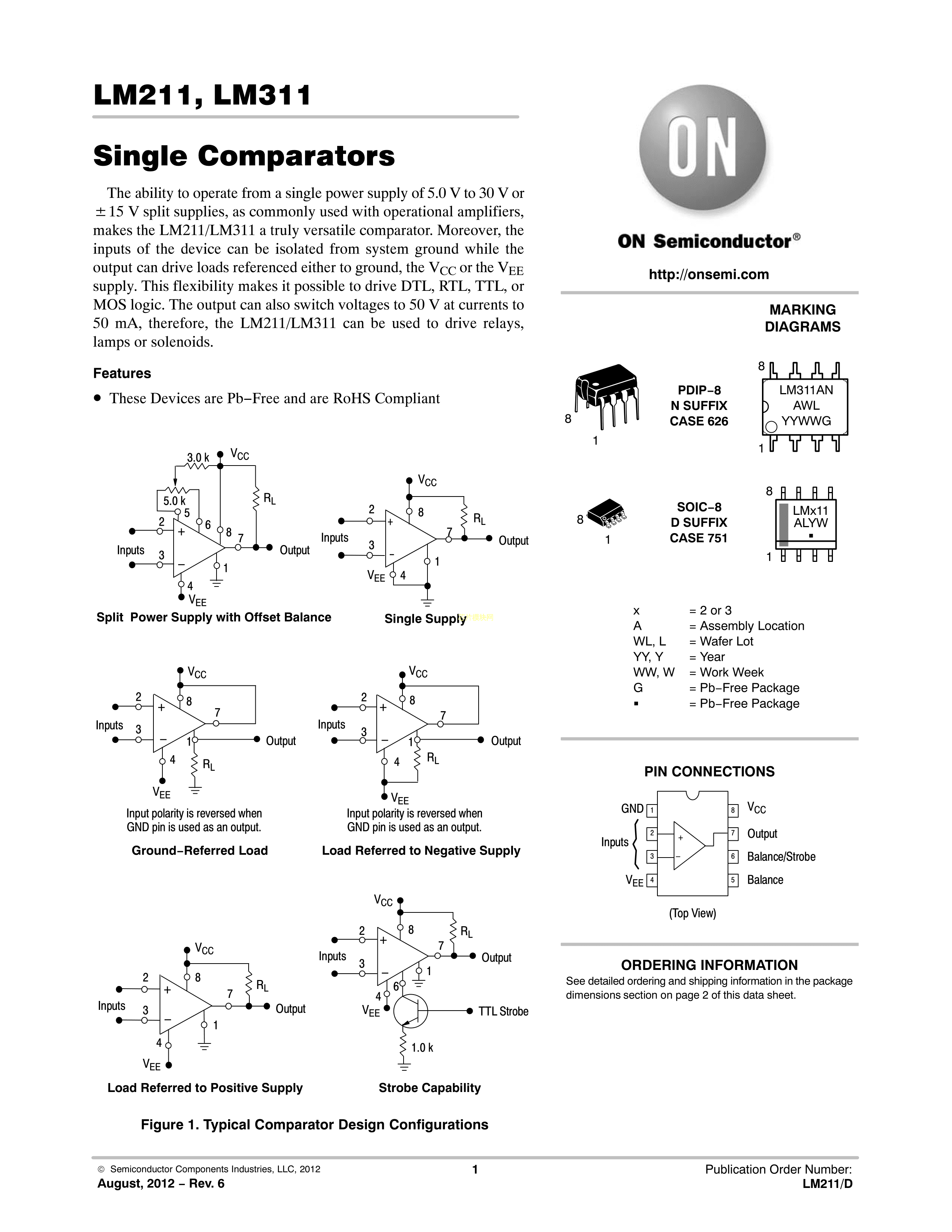 LM211DR2G数据手册SOIC-8_150mil封装onsemi(安森美)PDF规格书,中英文下
