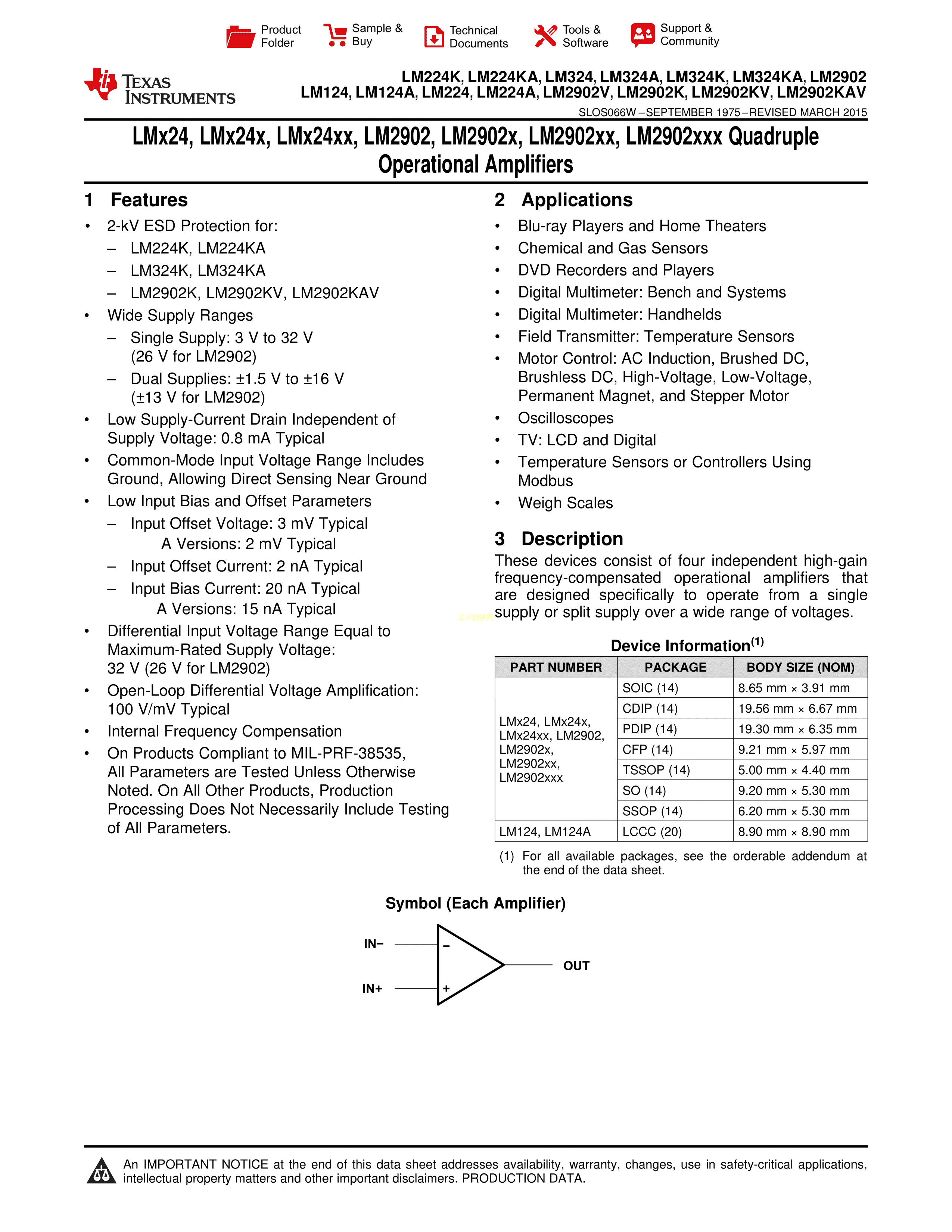 LM224ADR数据手册SOIC-14_150mil封装TI(德州仪器)PDF规格书,中英文下载