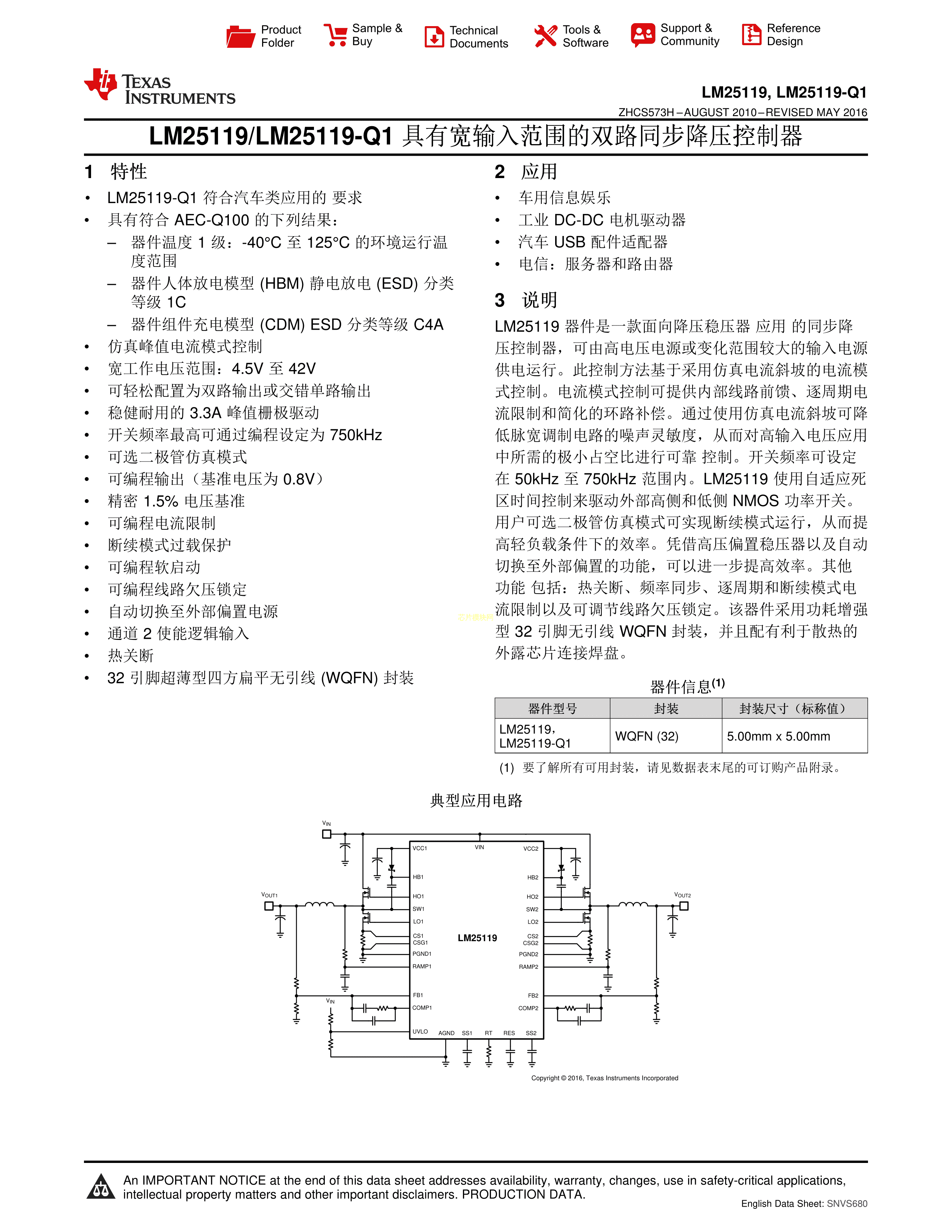 LM25119PSQE-NOPB数据手册WQFN-32封装TI(德州仪器)PDF规格书,中英文下载