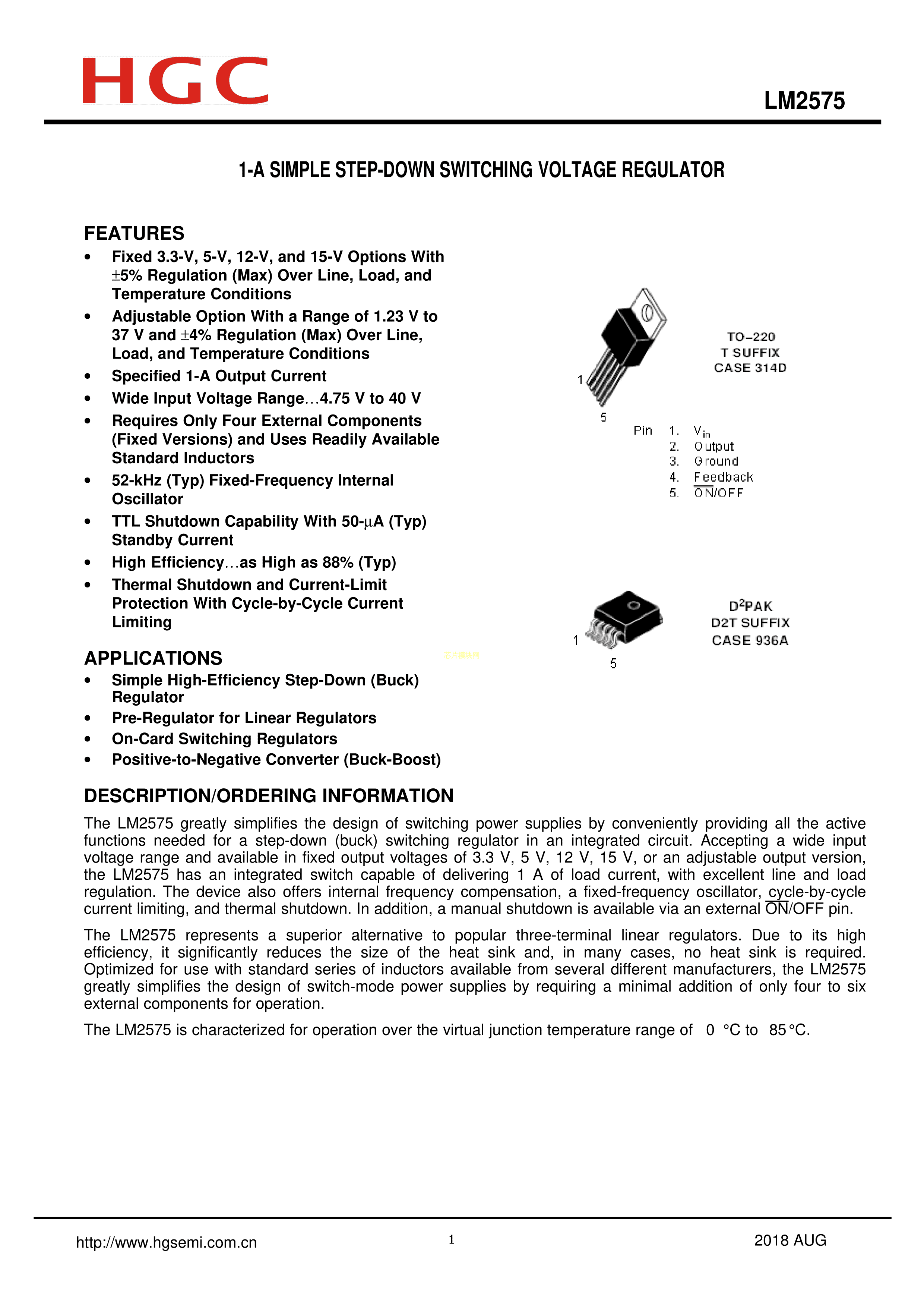 LM2575S-12-TR数据手册TO-263-5L封装HGC(华冠)PDF规格书,中英文下载