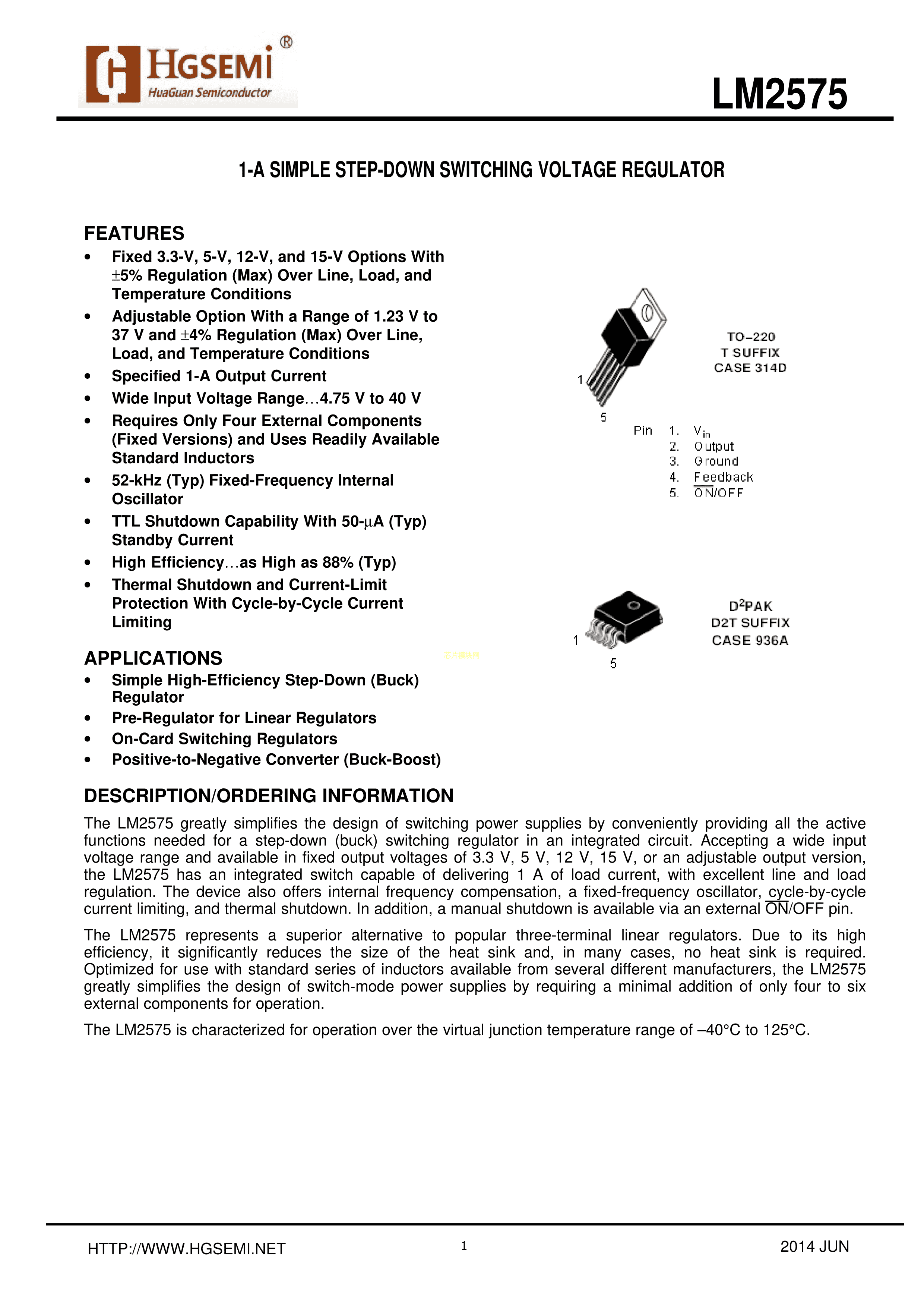 LM2575S-5.0-TR数据手册TO-263-5L封装HGSEMI(华冠)PDF规格书,中英文下