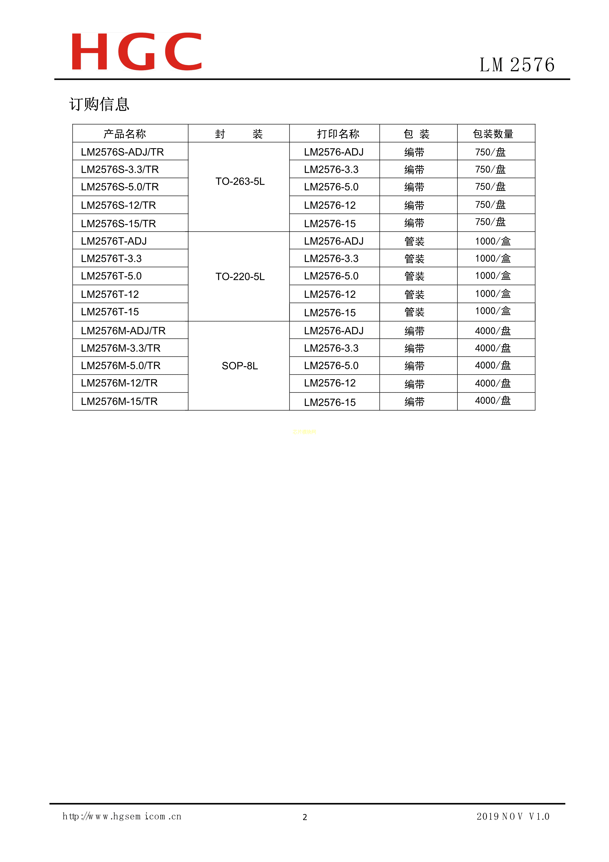 LM2576S-3.3-TR数据手册TO-263封装HGC(华冠)PDF规格书,中英文下载
