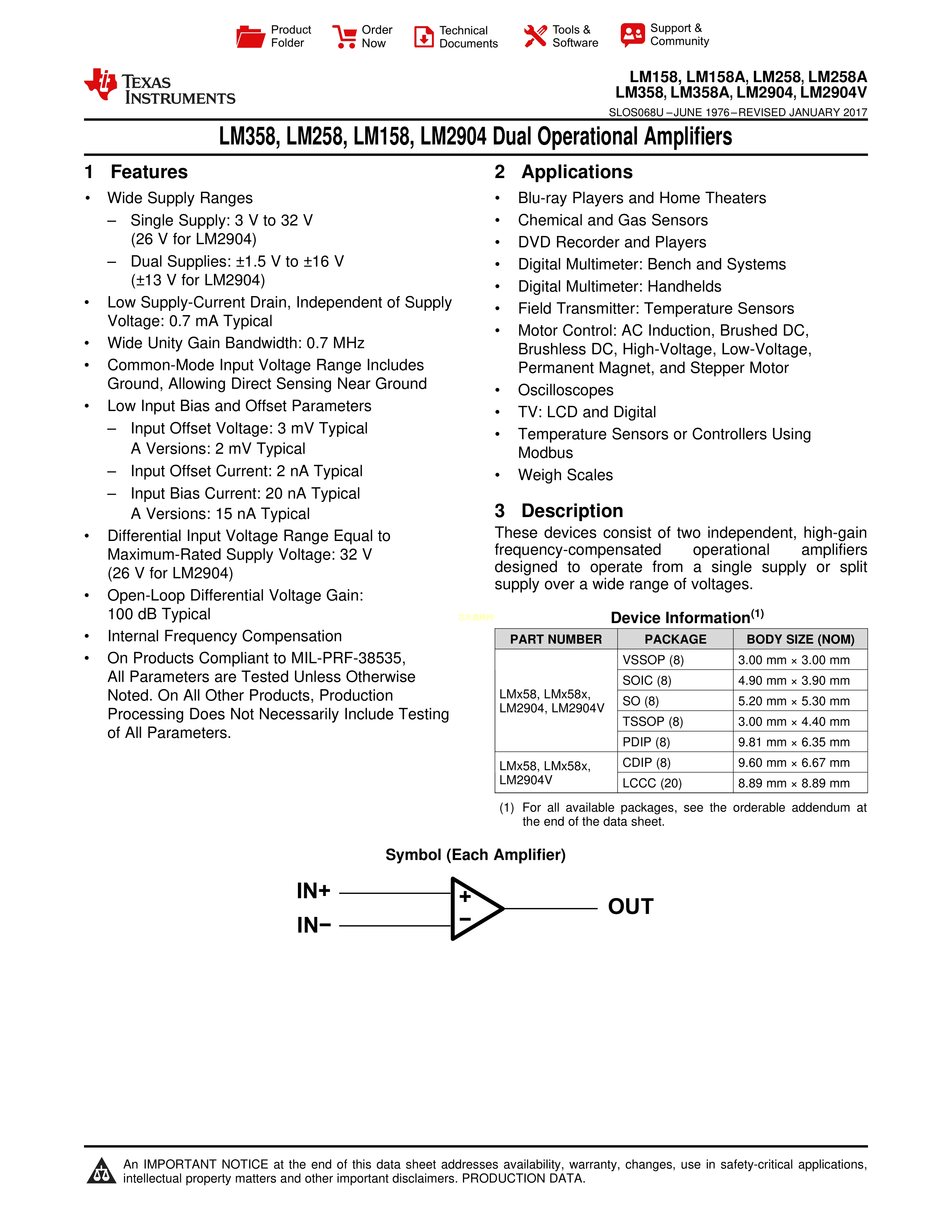 LM258ADGKR数据手册VSSOP-8(3x3x0.65)封装TI(德州仪器)PDF规格书,中英